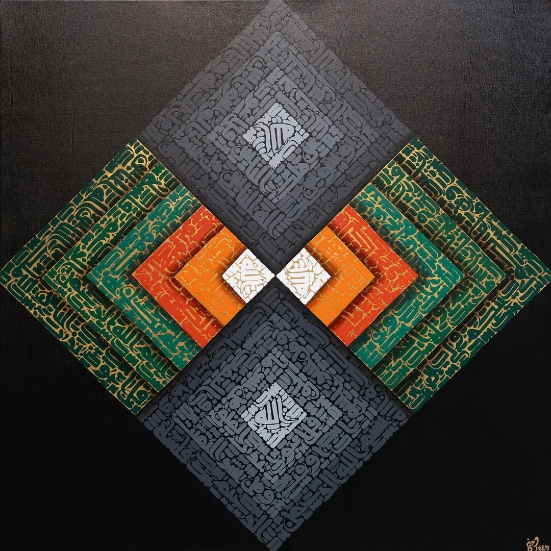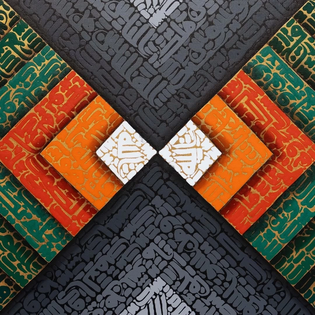 عوذ (Taking Refuge)! ✍? Our specially designed unique piece on which we wrote the Surahs Kafirun, Felak, Nas and Ihlas! ? 90x90 cm ?️