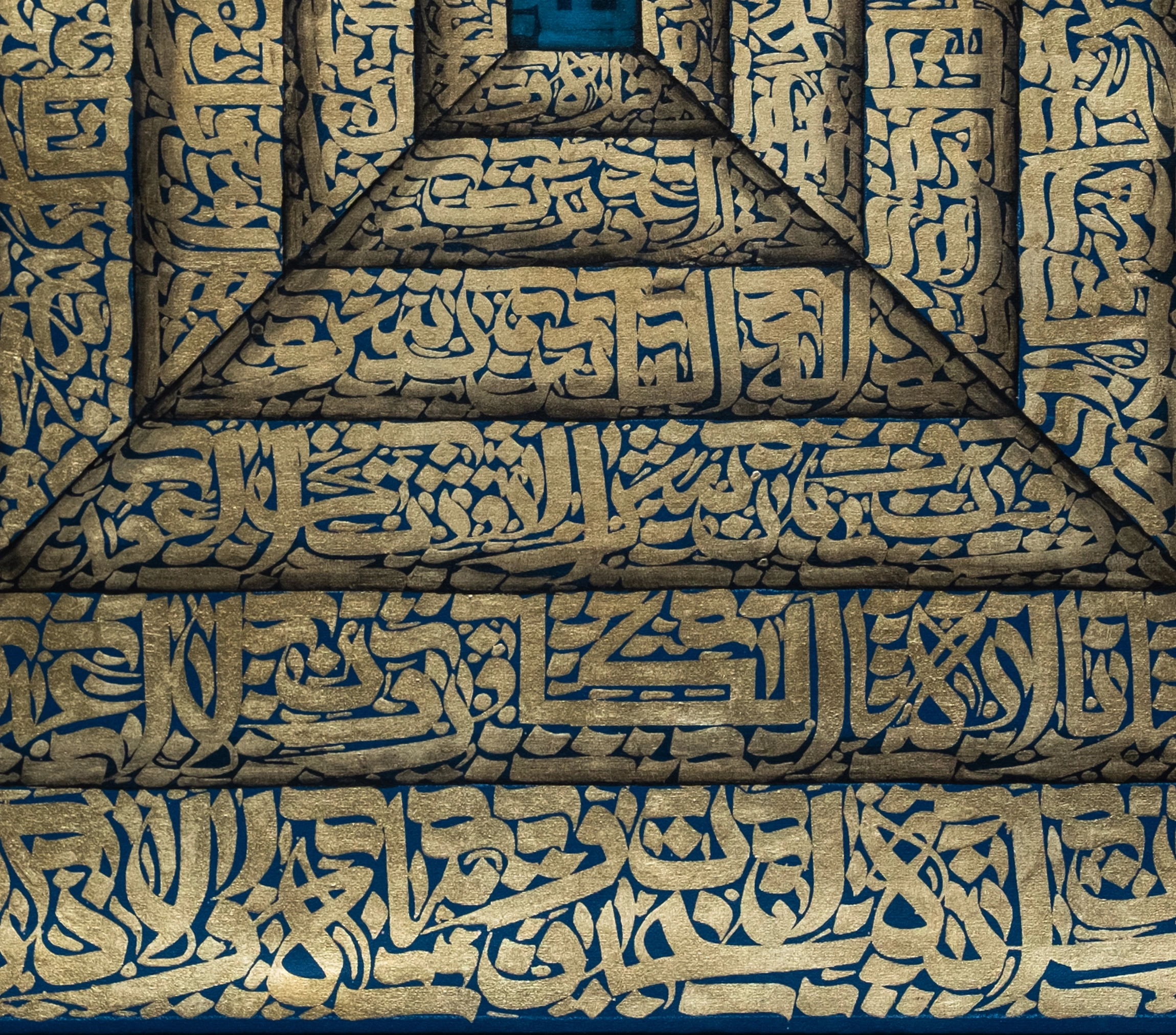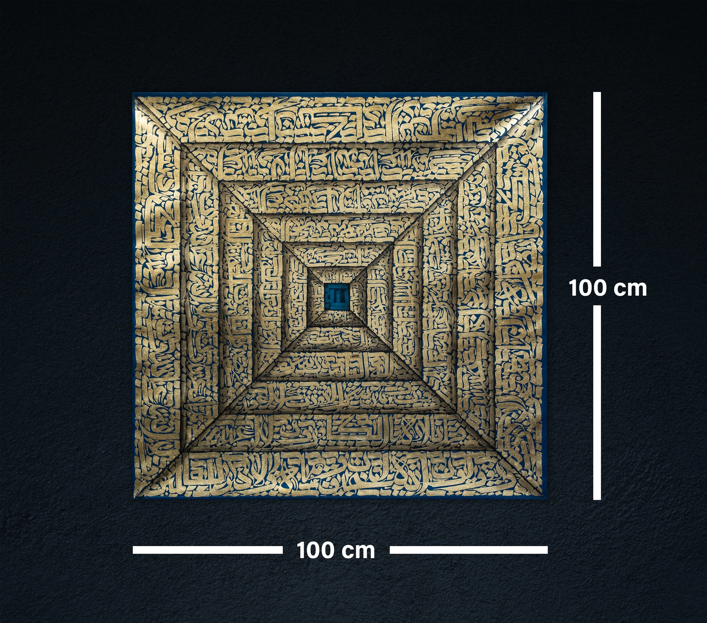 Üzerindeki koruyucu 4 Kul sureleri ve Nazar Ayeti'ni barındıran, 3 boyutlu geometrik tasarımıyla fark yaratan bu modern İslami hat tablo, evinize ışıltı ve incelik katarak ev ve ofis dekorasyonunuzun enfes bir parçası olacak.
