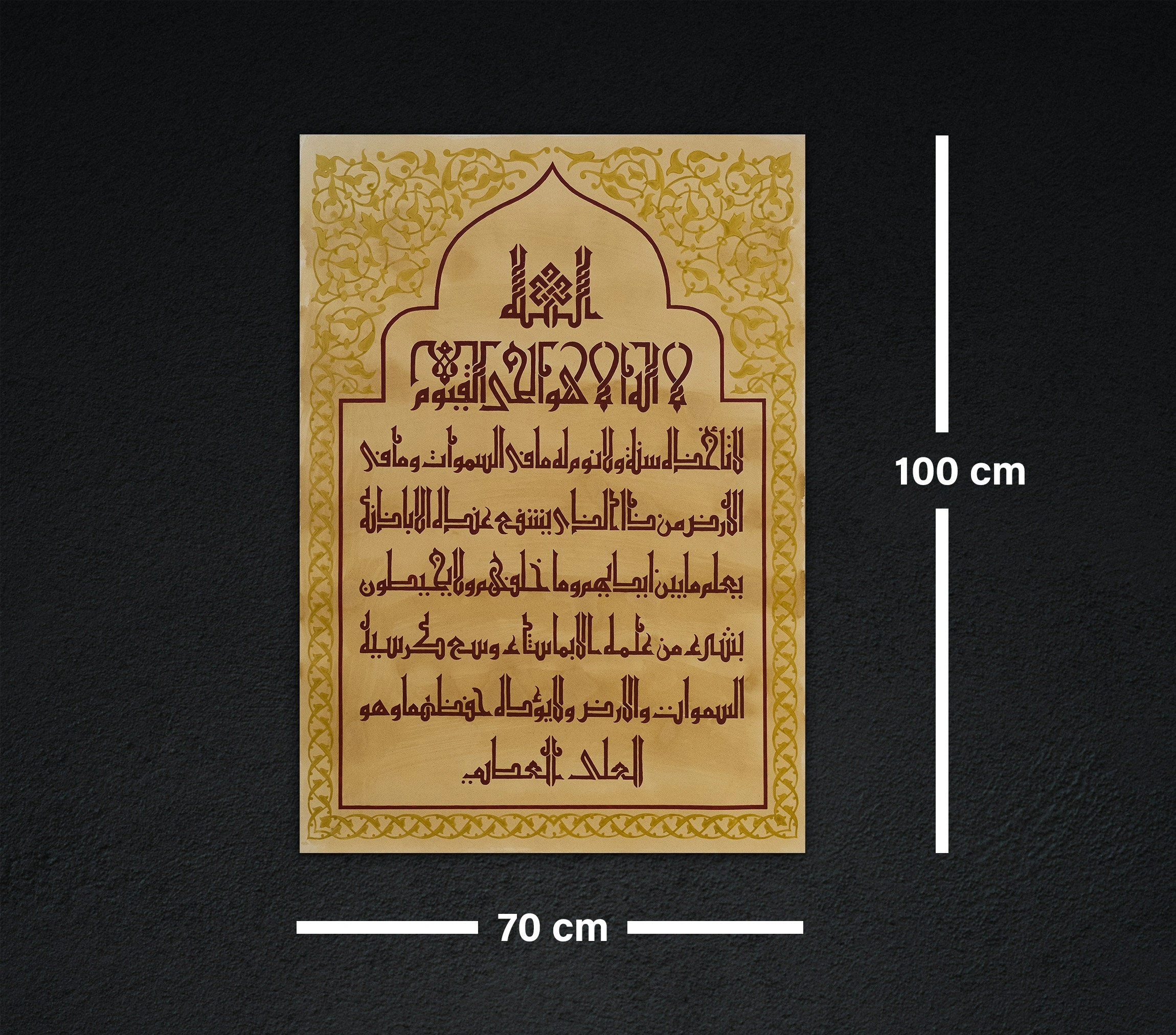 Ayetel Kürsi Eski Arapça Hat Kırmızı Duvar Dekoru 100x70 cm