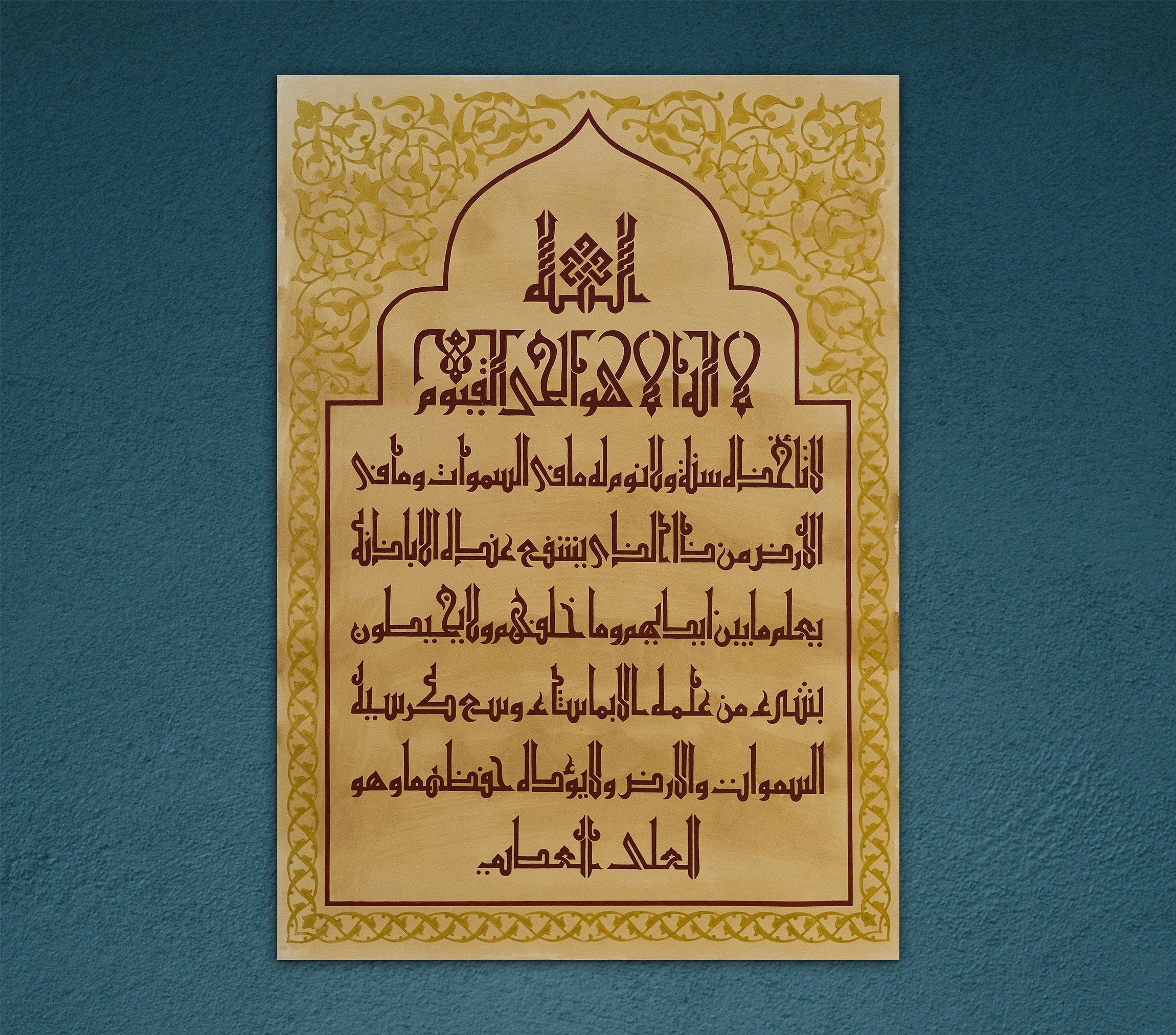 • Ayetel Kürsi Eski Arapça El Yazması İslami Hat Tablo Klasik Arapça Hat Sanatı