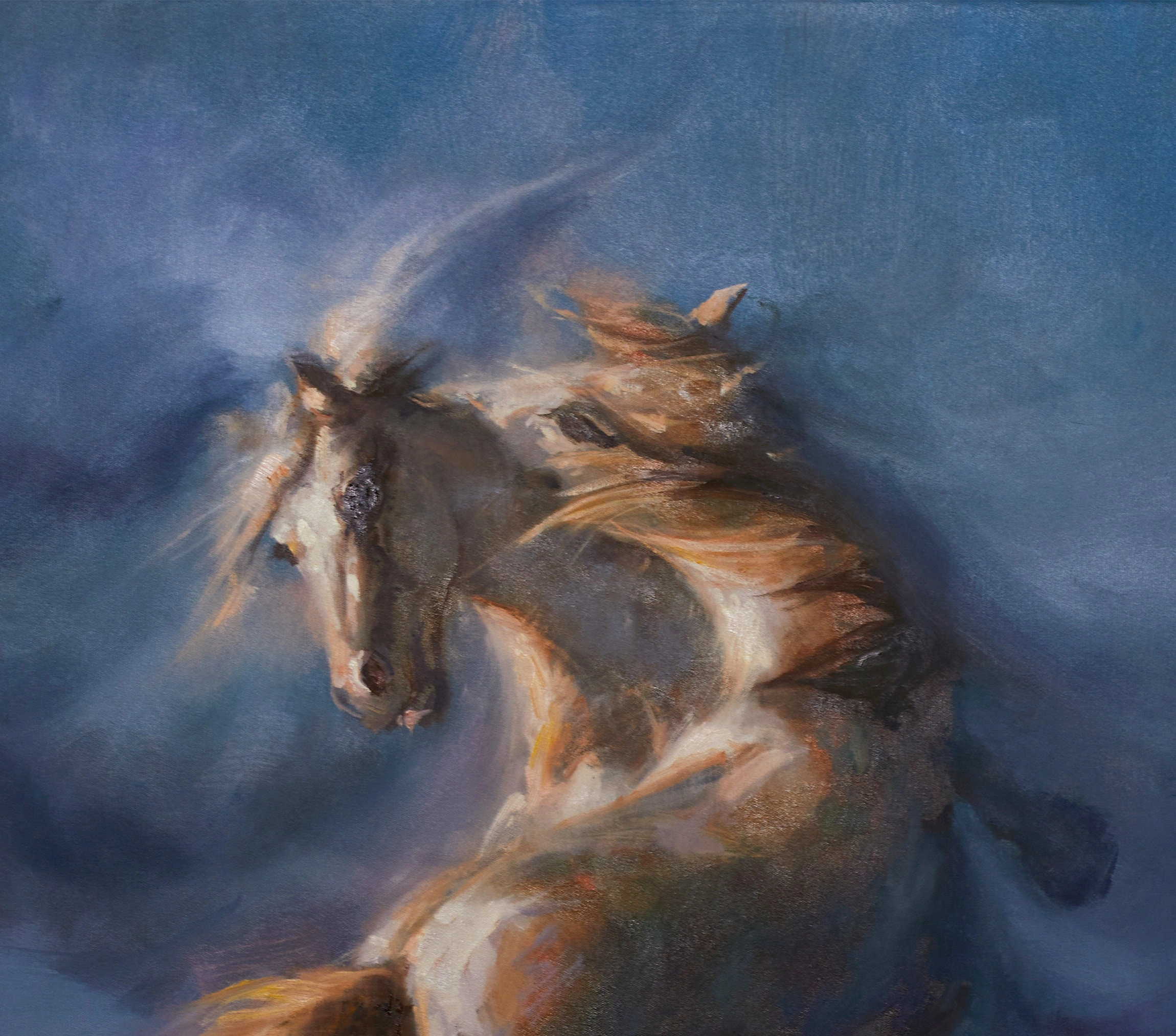 Beyaz Atlar Yağlıboya Kanvas Tablo 70x100cm