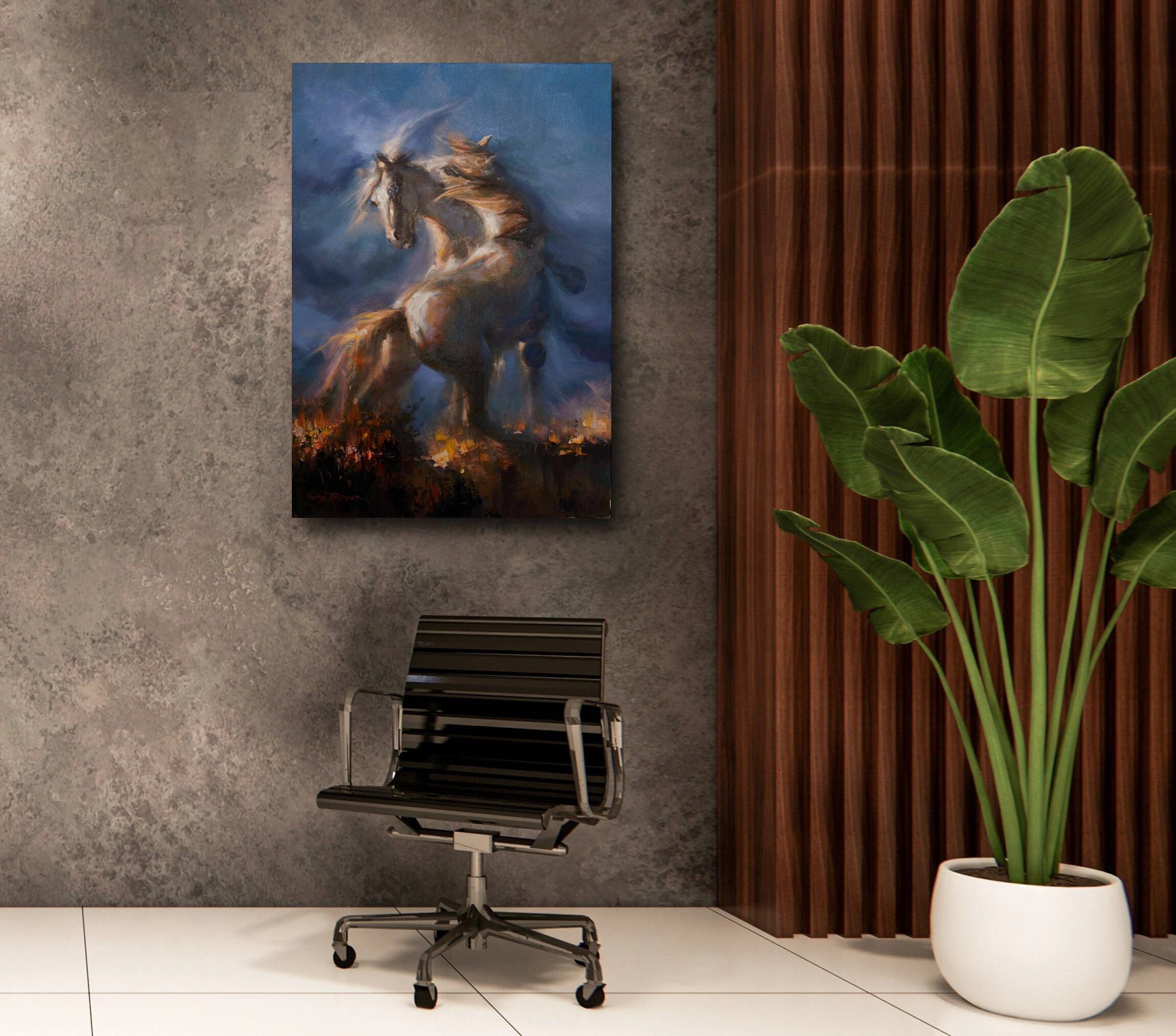 İki asil beyaz atın odak noktası olduğu bu çarpıcı tuval sanatıyla duvarlarınıza bir dokunuş katın. Sanat eseri, güç ve zarafet havasını somutlaştıran görkemli iki beyaz at figürünü yaşam alanınıza getiriyor. At tablosu, sizi doğaya yaklaştırırken, yetenekli işçilik eserin her detayında kendini gösteriyor. Hayvanseverlerin oldukça memnun olacağı bu duvar dekoru, her odaya şıklık havası getirecek. Beyaz renklerin güçlü mesajı misafirlerinin ilgisini çekerek onları büyülü bir dünyaya taşırken, siz de bu at tablosunun güzelliğini ortaya çıkaran incelikli bir zarafet hissini yaşayacaksınız. Her ambiyansa harika bir katkı yapacak yağlıboya at tablosu, her odaya cesur bir duruş katacak ve zamansız tasarımı, tüm dekorlar stilleriyle uyum sağlayacak. Eser, doğanın bize sunacağı çok şey olduğunu hatırlatıyor siz de bu eseri edinerek hikayenin bir parçası olun.