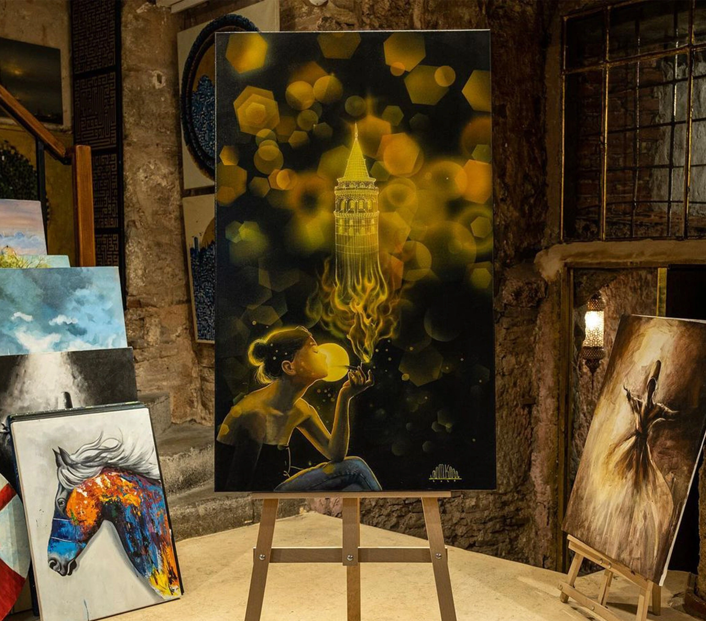 • Kaliteli tuval üzerine yağlı boya ve hava tabancası