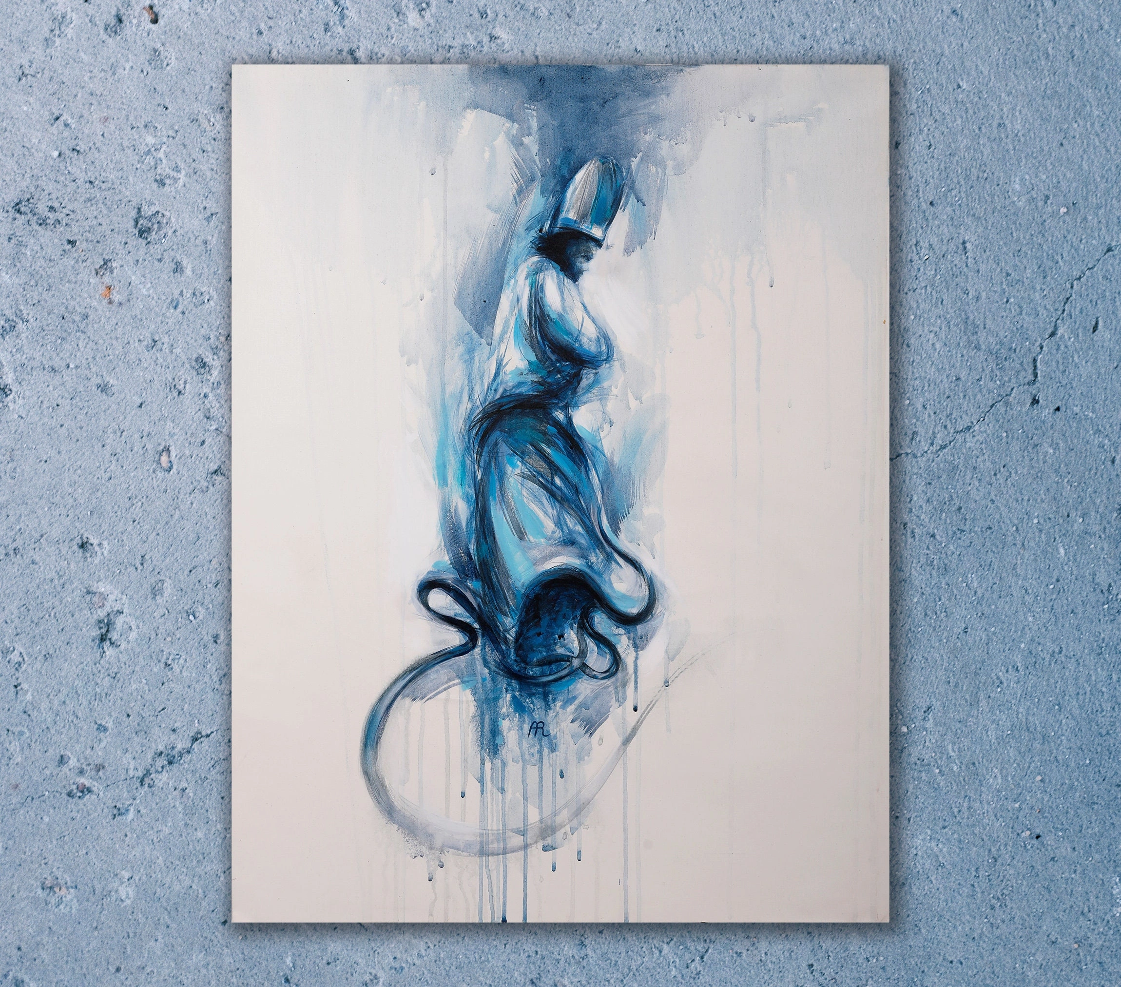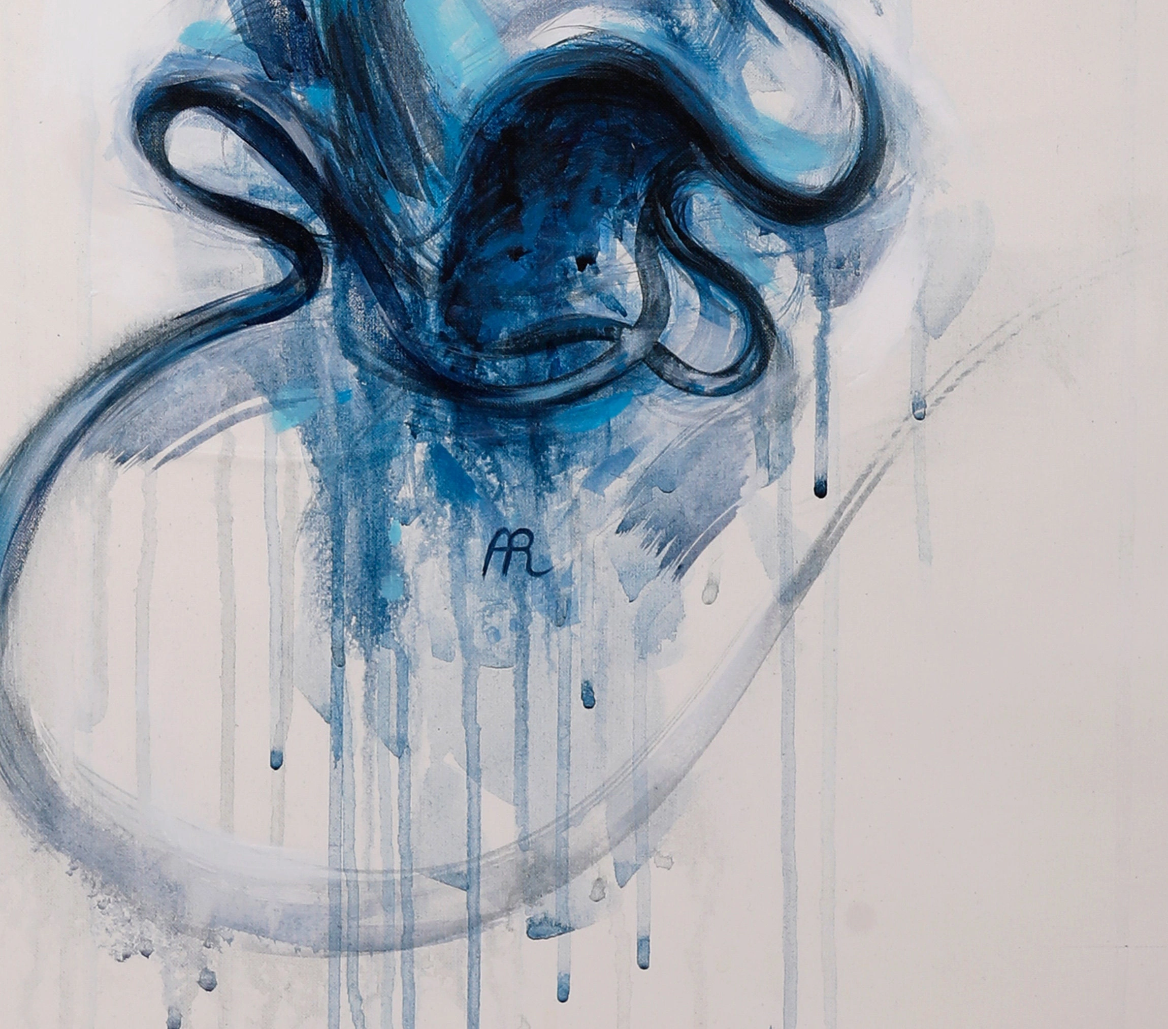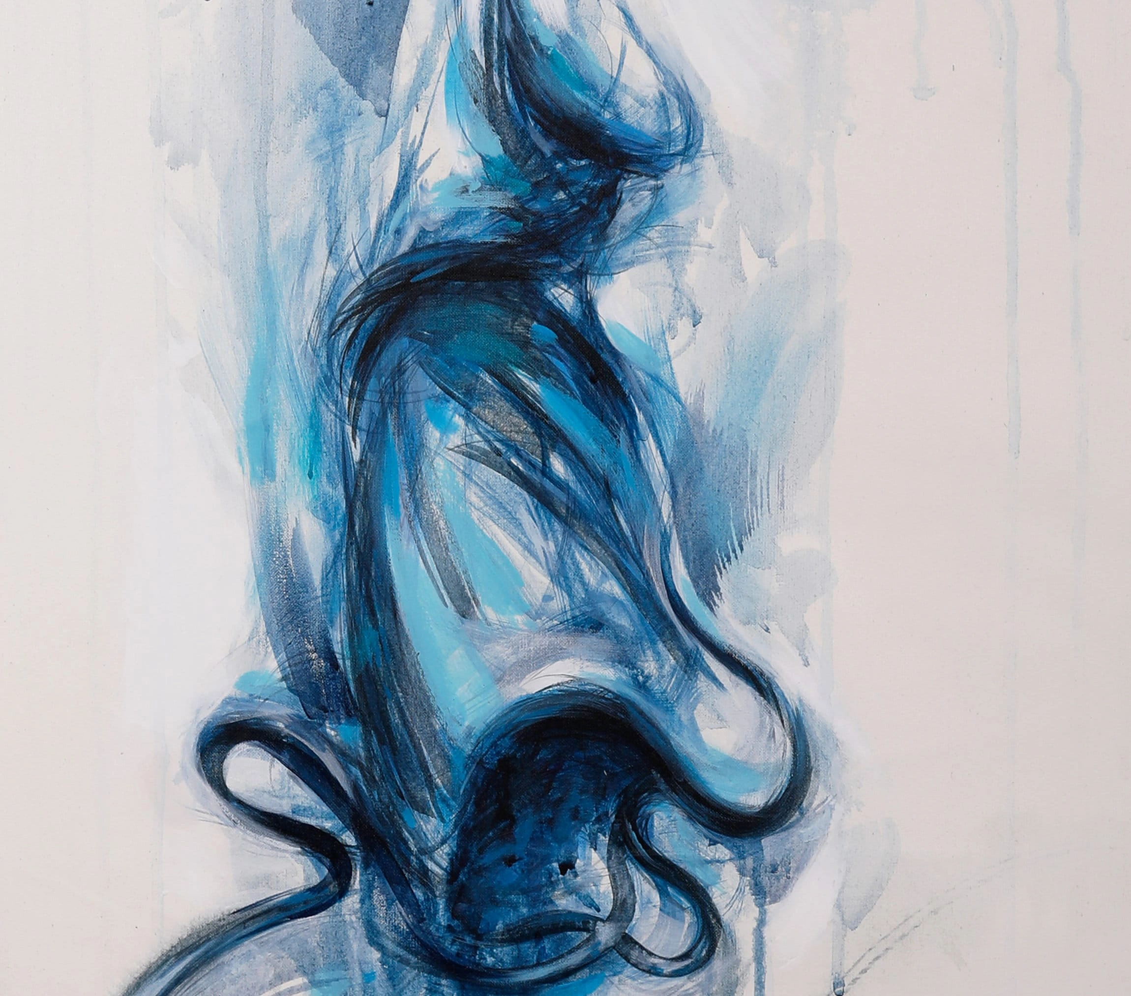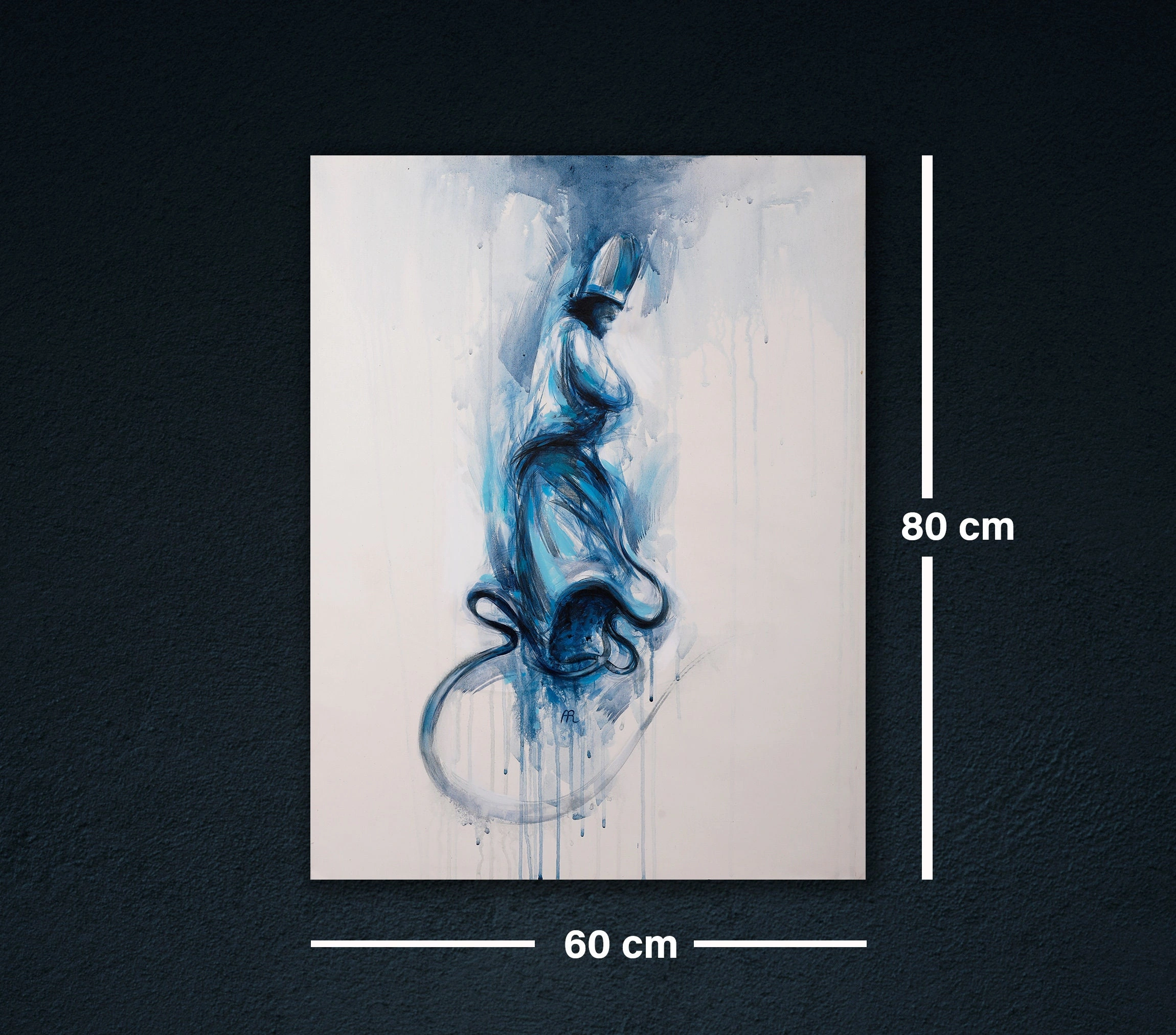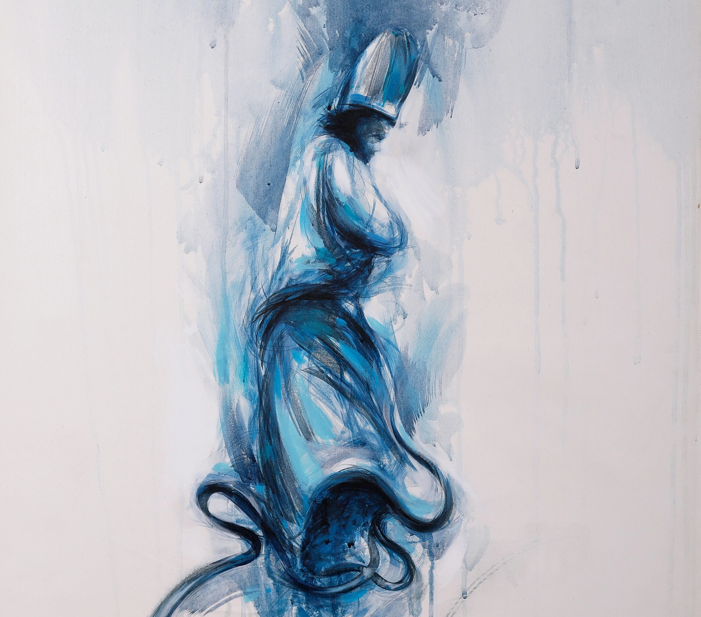 • Mavi Semazen Soyut İslami Kanvas Tablo Beyaz Tuval Üzeri Akrilik ve Yağlı Boya Dumanlı Mevlana Derviş Figürlü Duvar Dekoru