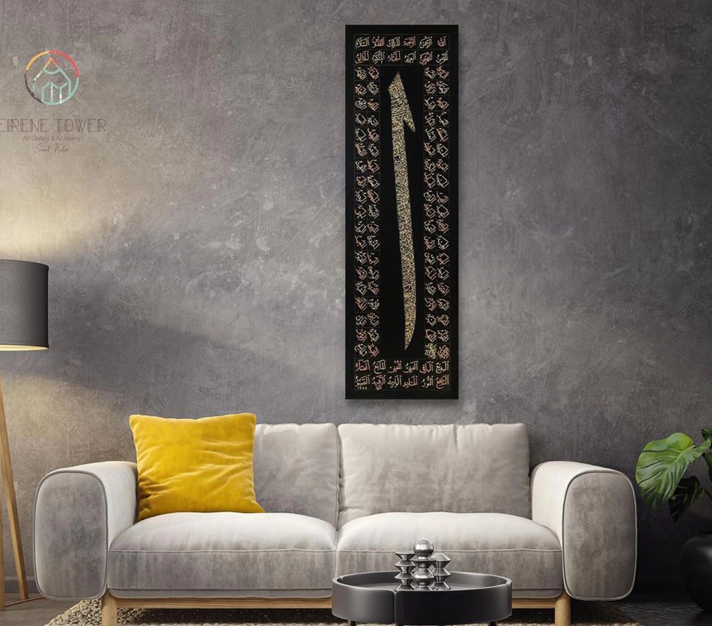Elif Ayetel Kürsi İslami duvar dekoru oldukça büyük boyutlu olup, kadim İslam sanatı kültüründen ilham almıştır ve yaşam alanınıza benzersiz bir ifade katacaktır. Basit desenlerdeki karmaşık ayrıntılardan büyüleyici siyah ve altın tonlarına kadar, bu Arapça hat eseri kesinlikle hayran kalacağınız göz alıcı bir görünüm yaratıyor. İnanılmaz Elif Vav kanvas eser, evinize ve oturma odalarınıza huzur ve dinginlik getirecek. Bu harika İslami sanatın tasarımı güzel tonlarla birleştiğinde, yaşam alanınıza davetkar, sakinleştirici bir atmosfer kazandıracak. Her odayı yükseltecek benzersiz ve ilham verici tasarımıyla, her türlü ev dekorasyonu stili için mükemmel bir tamamlayıcı olacaktır.