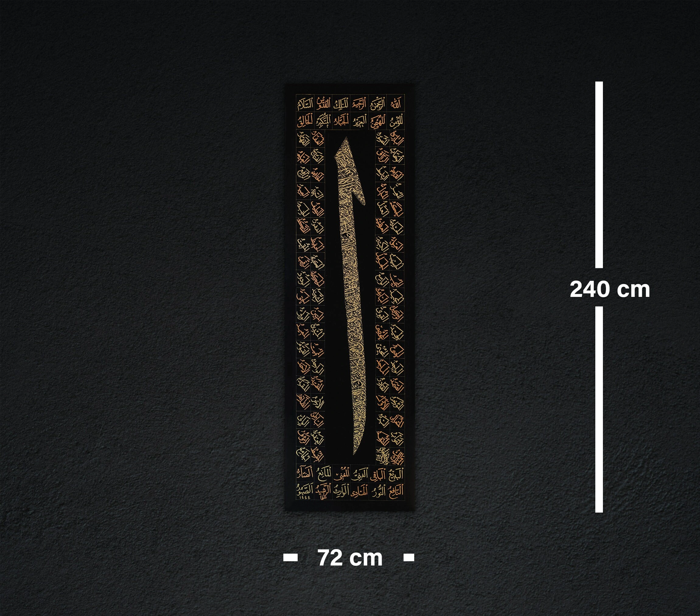 Elif Ayetel Kürsi İslami Kaligrafi Büyük Kanvas Tablo 72x240cm