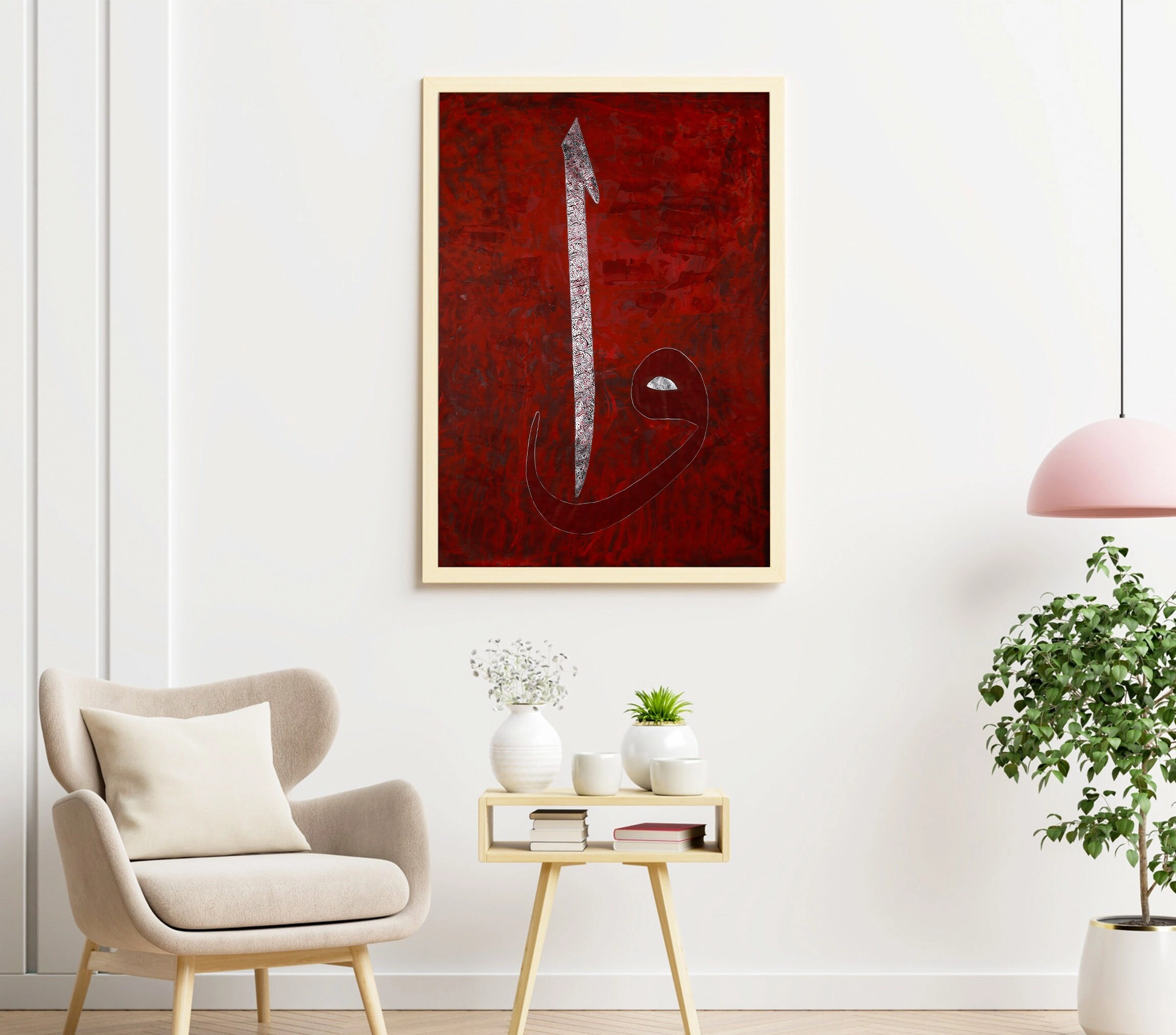 Kırmızı renkli soyut arka plan üzerine gümüş varaklı el yazması Elif Vav İslami hat tablosu, evinizin harika görünmesini sağlamak ve her duvara zarif bir hava katmak için özenle üretilmiştir. Bu zarif sanat eseri, hassasiyetle ve ayrıntılara gösterilen özenle tamamen el yapımıdır ve her duvara modern bir dokunuş katan en kaliteli sanat malzemeleriyle yapılmıştır. Bu kırmızı tabloda gümüş varakla işlenen Elif içine yazılı Ayetel Kürsi ve tasarıma eşlik eden Vav, renklerin canlılığı, duvarlarınıza hayat verecek ve her odayı daha güzel ve çekici hale getirecek. Elif Vav duvar dekoru, kadim İslam sanatı kültüründen ilham almıştır ve yaşam alanınıza benzersiz bir ifade katacaktır. Basit desenlerdeki karmaşık ayrıntılardan büyüleyici kırmızı ve gümüş tonlarına kadar, bu Arapça kaligrafi hat eseri kesinlikle hayran kalacağınız göz alıcı bir görünüm yaratıyor. İnanılmaz Elif Vav eseri evinize ve oturma odalarınıza huzur ve dinginlik getirecek. Bu İslami sanatın tasarımı, kırmızının güzel tonlarıyla birleştiğinde, yaşam alanınıza davetkar, sakinleştirici bir atmosfer kazandıracak. Her odayı yükseltecek benzersiz ve ilham verici tasarımıyla, her türlü modern ev dekorasyonu stiline mükemmel bir tamamlayıcı olacaktır.