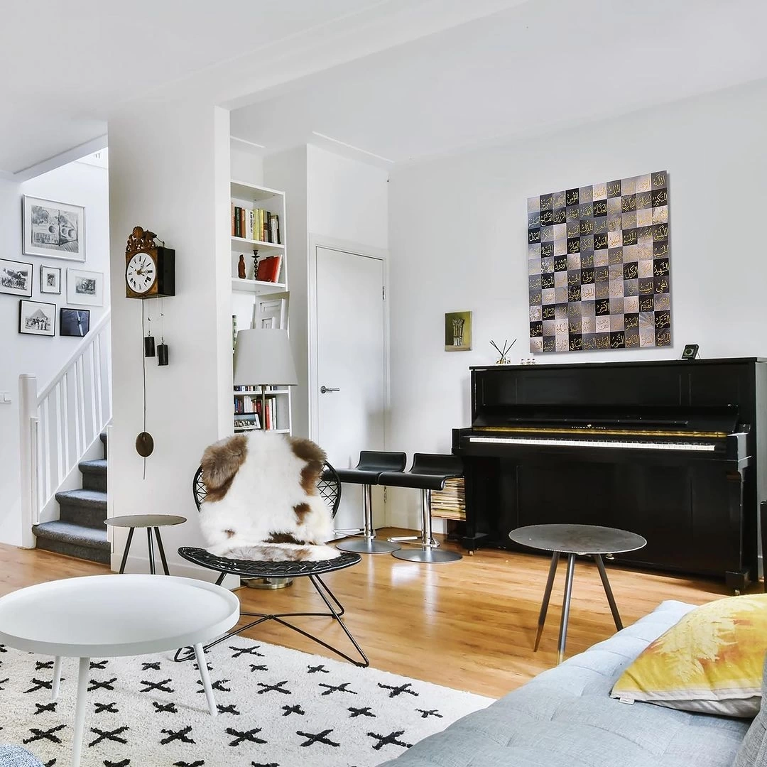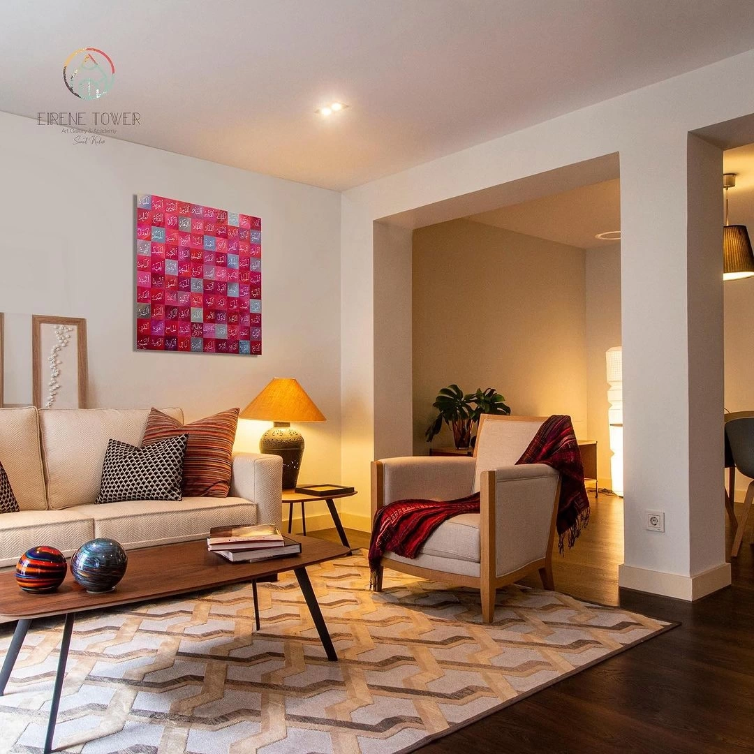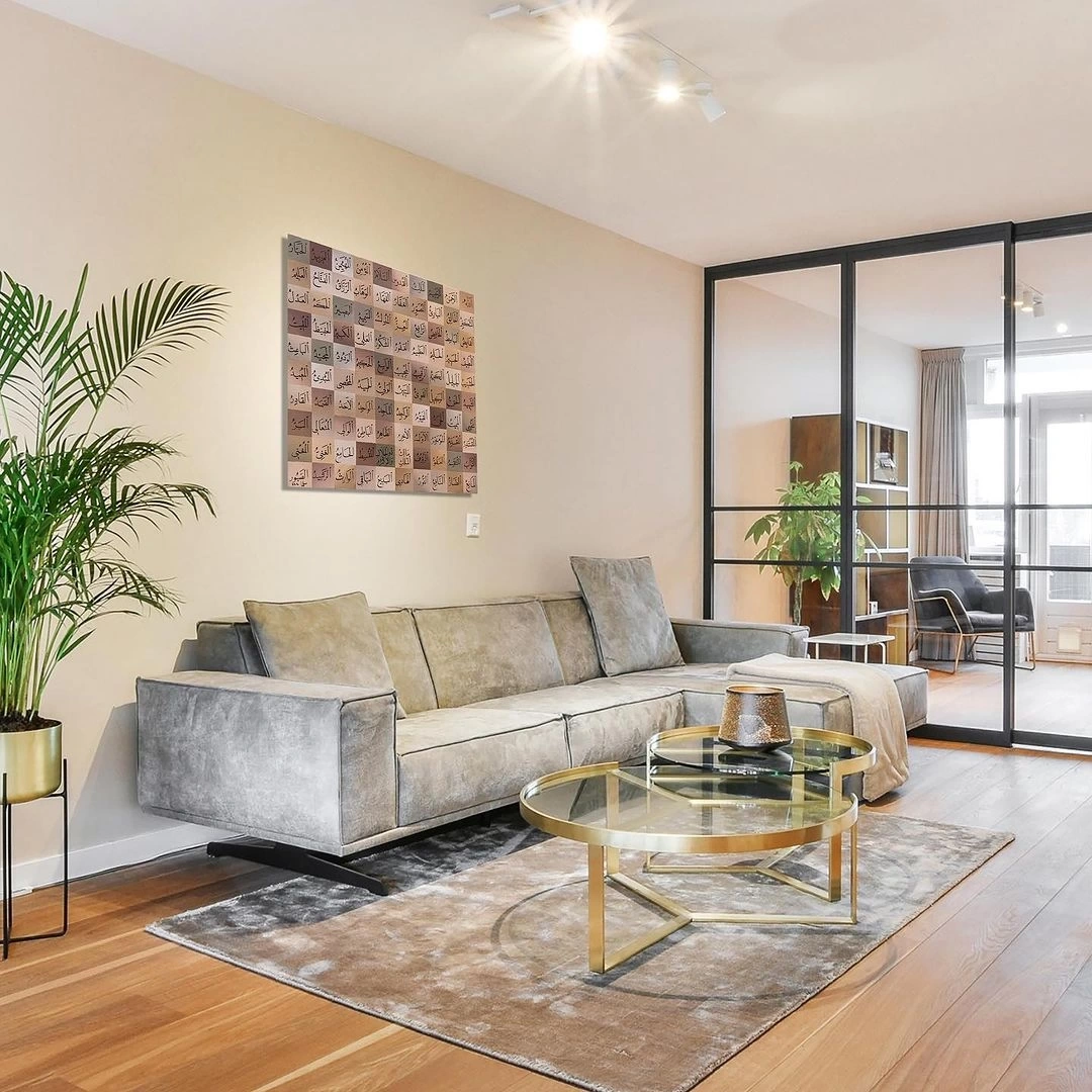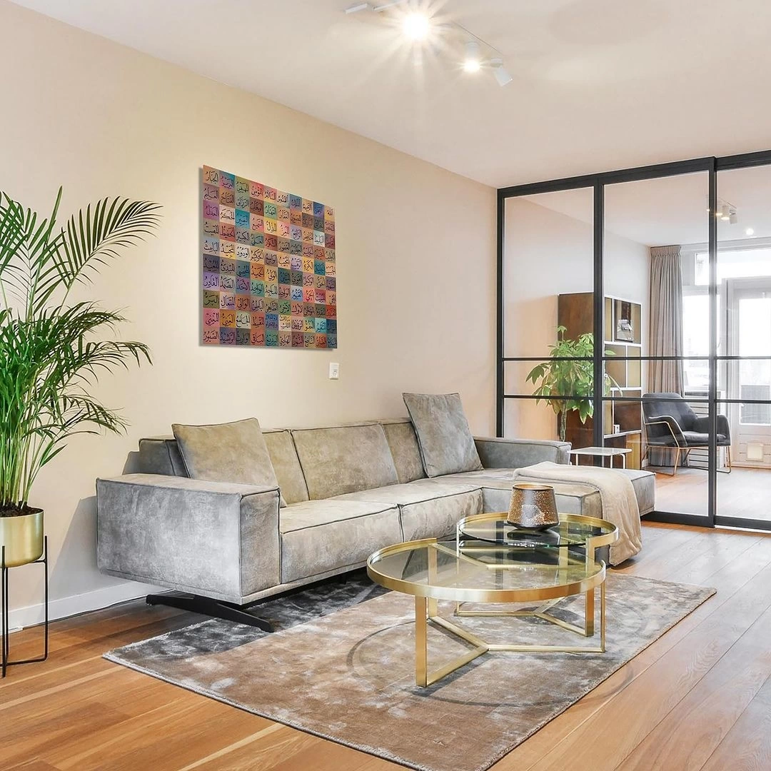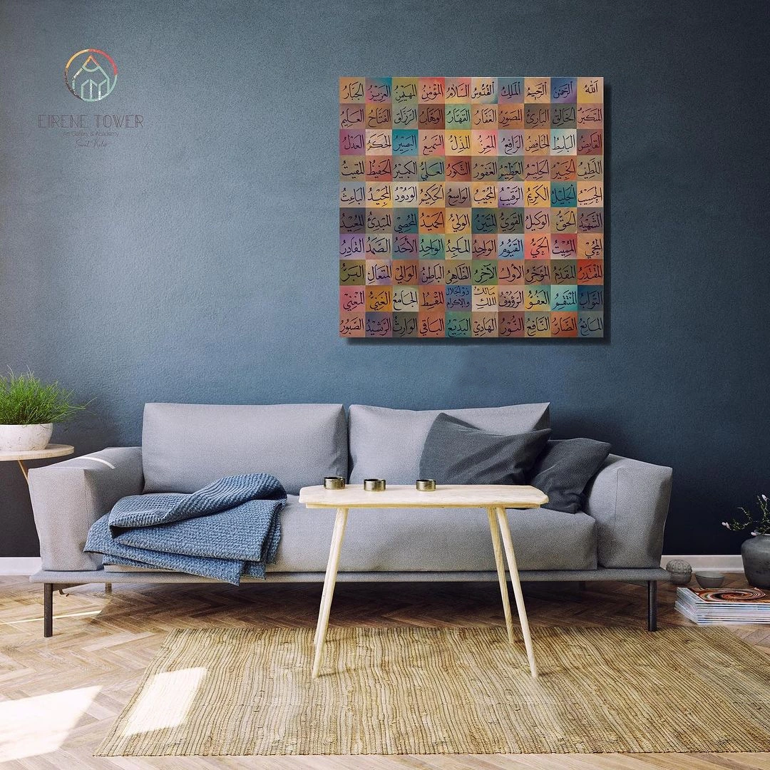 Esma ül Hüsna tablonun, yerleştirildiği her yerde bir konuşma konusu olacağından emin olabilirsiniz. İster oturma odanıza, ister salonunuza ya da ofisinize asın, bu çarpıcı eser, klas bir dokunuş ve pozitif enerji katacaktır. Bu güzel Asma Ül Hüsna renkli tuval sanatı ile klasik İslami dekoru hayatınıza getirin. Renkli ve güçlü sözlerle dolu bu eser, evinizde Allah'ın güzelliğini hatırlatacak.