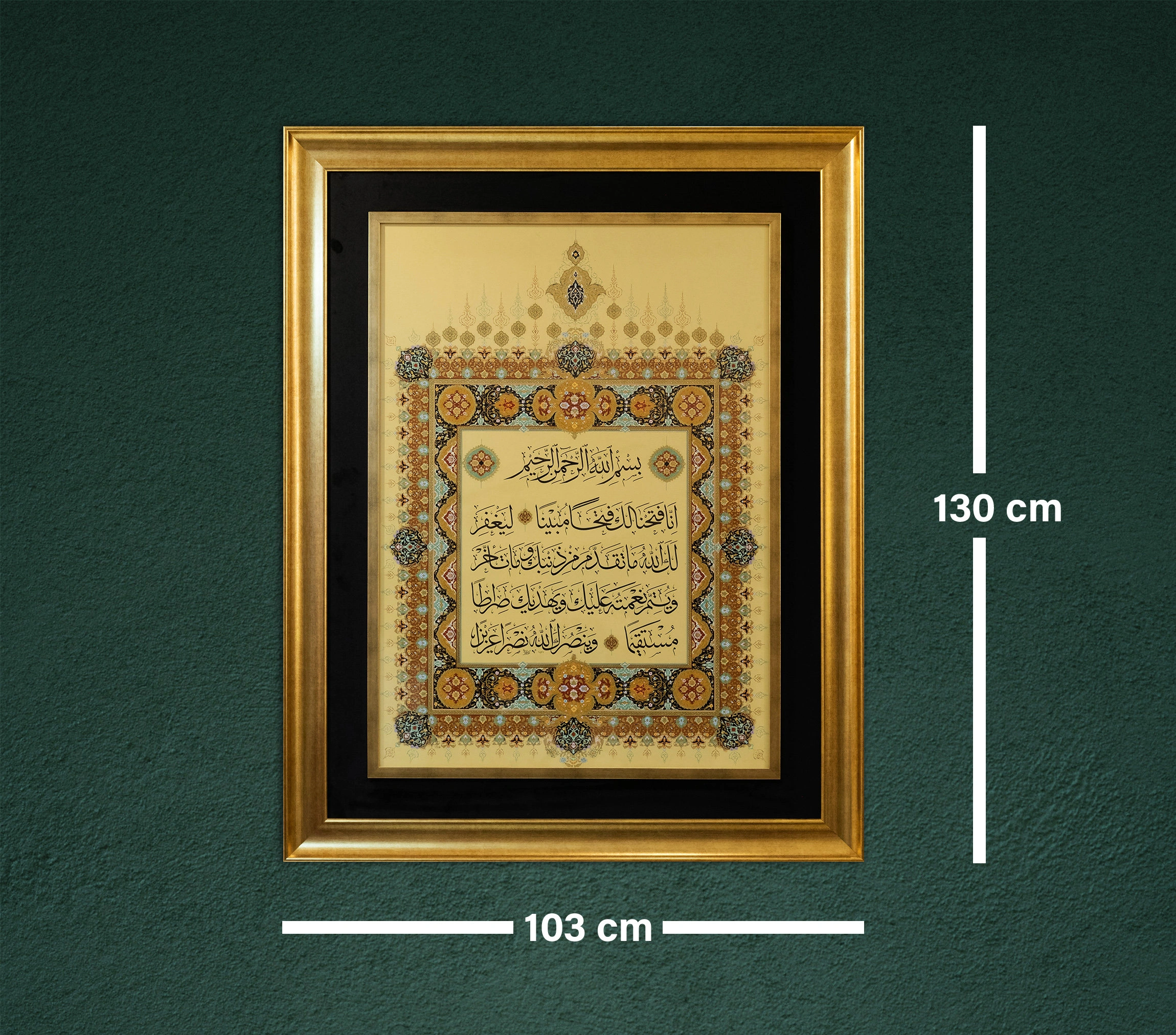Fetih Suresi Gerçek Altın Tezhipli Hat Tablo 103x130 cm