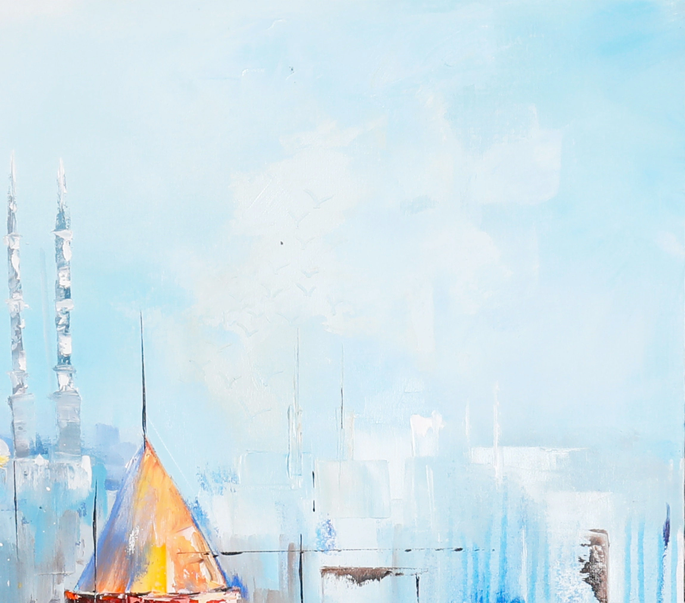 Mavi ve kırmızı tonların harika ahengiyle bambaşka bir yorum kazanan, İstanbul Tarihi Yarımada'nın bütün ihtişamı ve güzelliğiyle resmedildiği bu İstanbul Galata Kulesi manzaralı yağlı boya kanvas tablo her ambiyansa ve odaya renk katacak şık bir seçim. Yağlı boya İstanbul manzarası, şehri size getirecek. Şehrin güzel manzarasının, sıcak ve soğuk renklerin beraber kullanıldığı bir tonda tasvir edildiği bu yağlı boya tuval sanatı, İstanbul'un atmosferini ve enerjisini evinize taşıyan büyüleyici bir sanat eseridir. Yaşam alanınıza sıcaklık ve enerji katmak için benzersiz bir parça arıyorsanız, bu el yapımı manzara resmi mükemmel bir seçimdir. Çarpıcı işçiliği ve nefes kesen güzelliği ile koleksiyonunuza şık bir dokunuş katacak. Tarihi Yarımada manzarasıyla bu tablo, şehrin zengin tarihini seven ve takdir eden herkes için mükemmeldir. Bu esere sahip olarak şehrin kültürünü ve ruhunu kucaklayabilir, aynı zamanda arkadaşlarınıza ve ailenize İstanbul'u ne kadar sevdiğinizi gösterebilirsiniz.