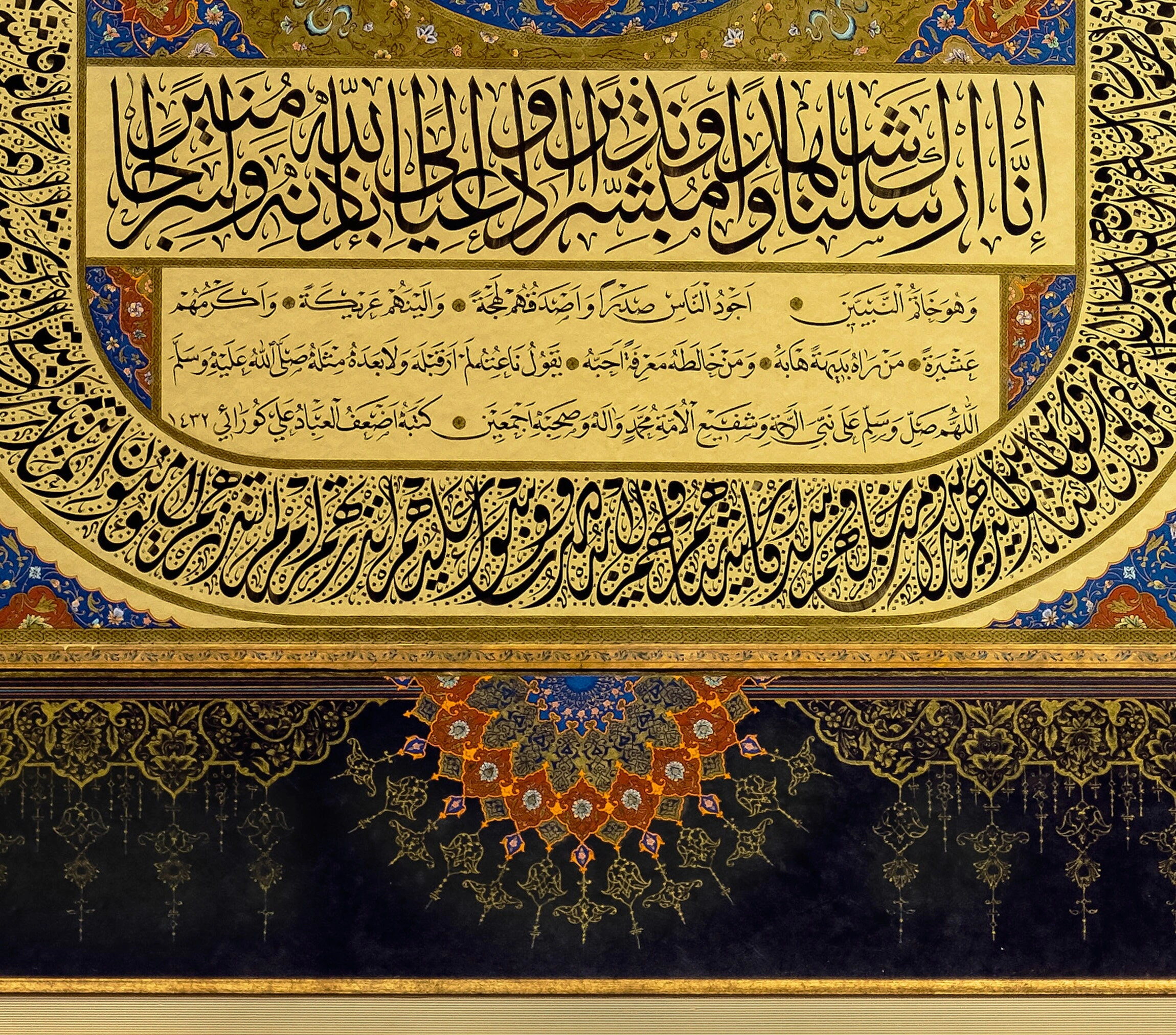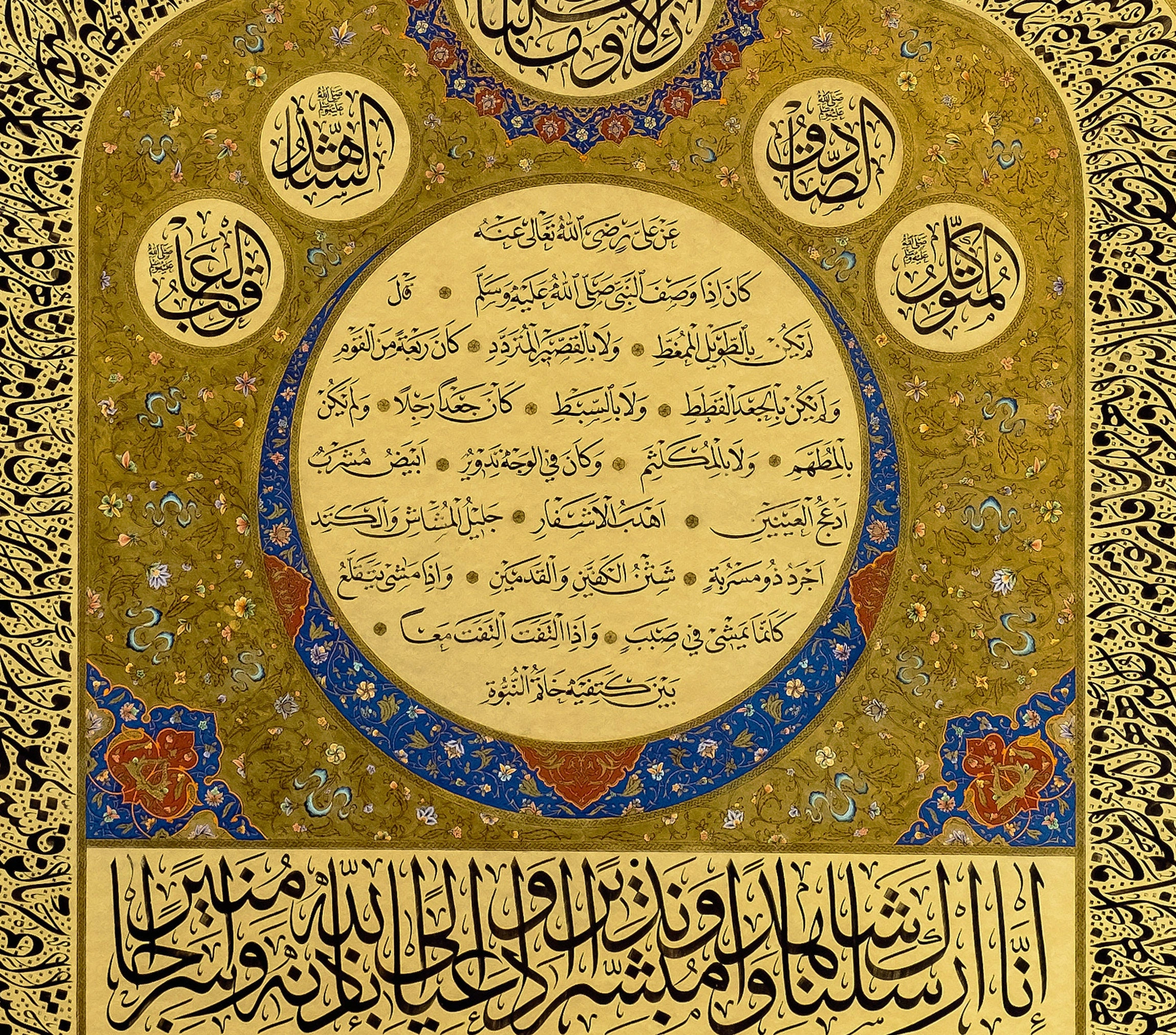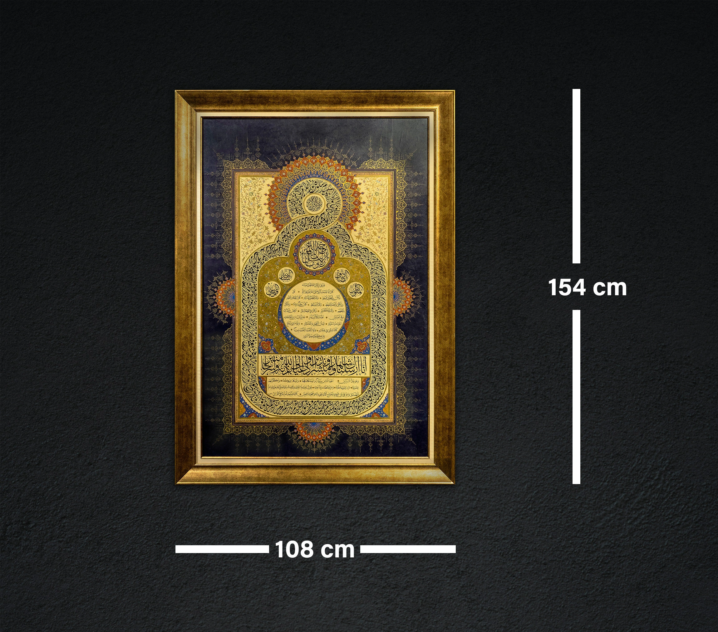 Hilye-i Şerif ve Yasin Suresi Tezhip Süslemeli Gerçek Altın İslami Hat Tablo 108x154 cm