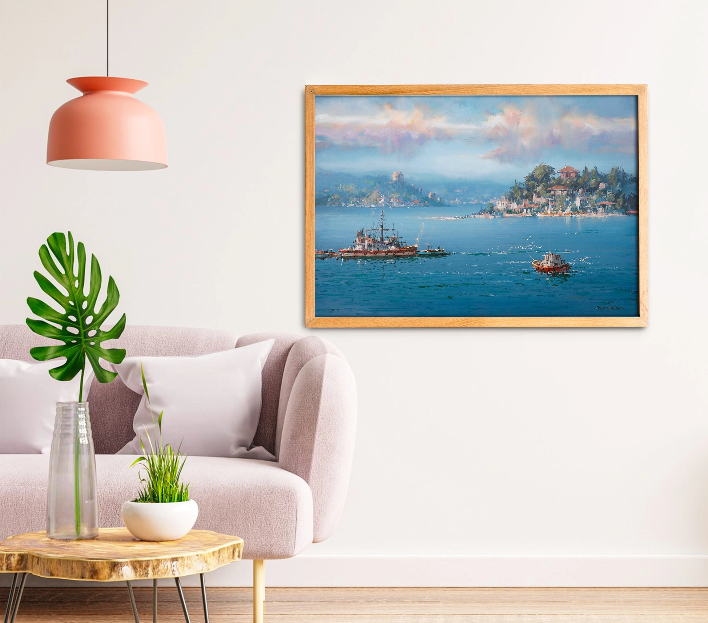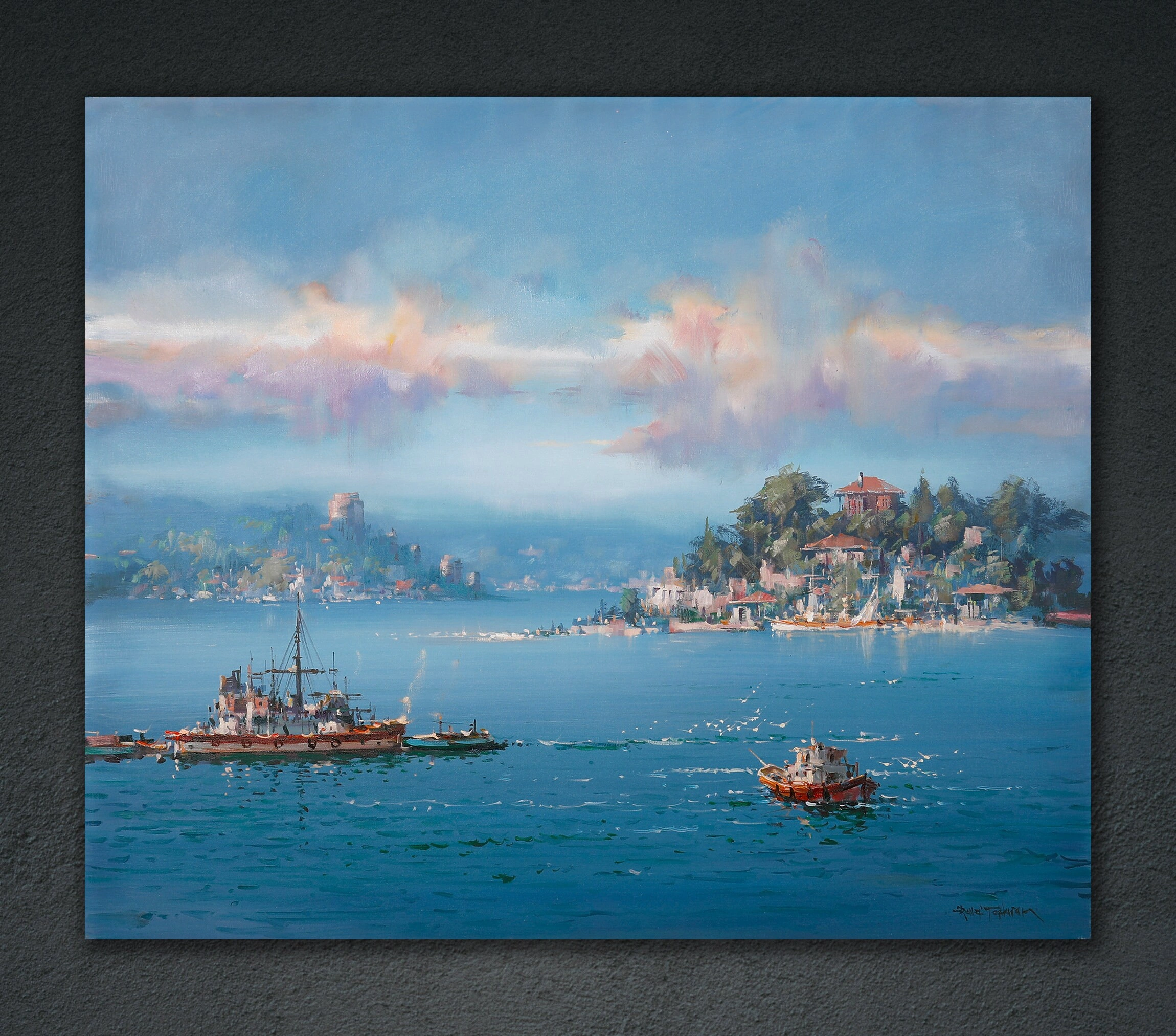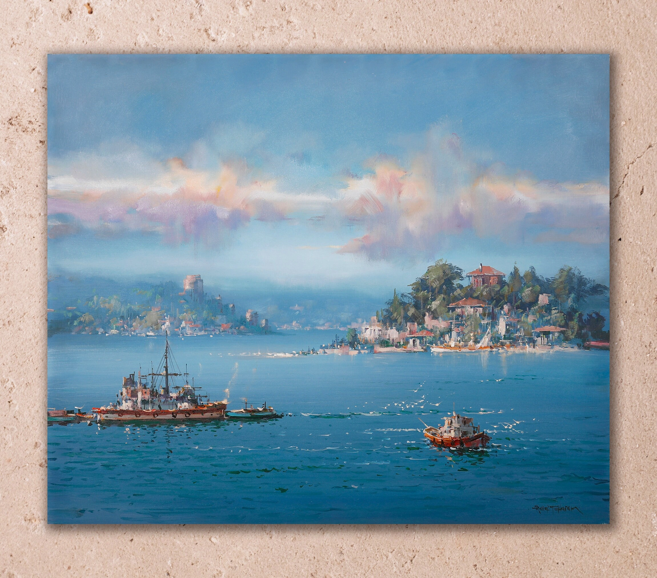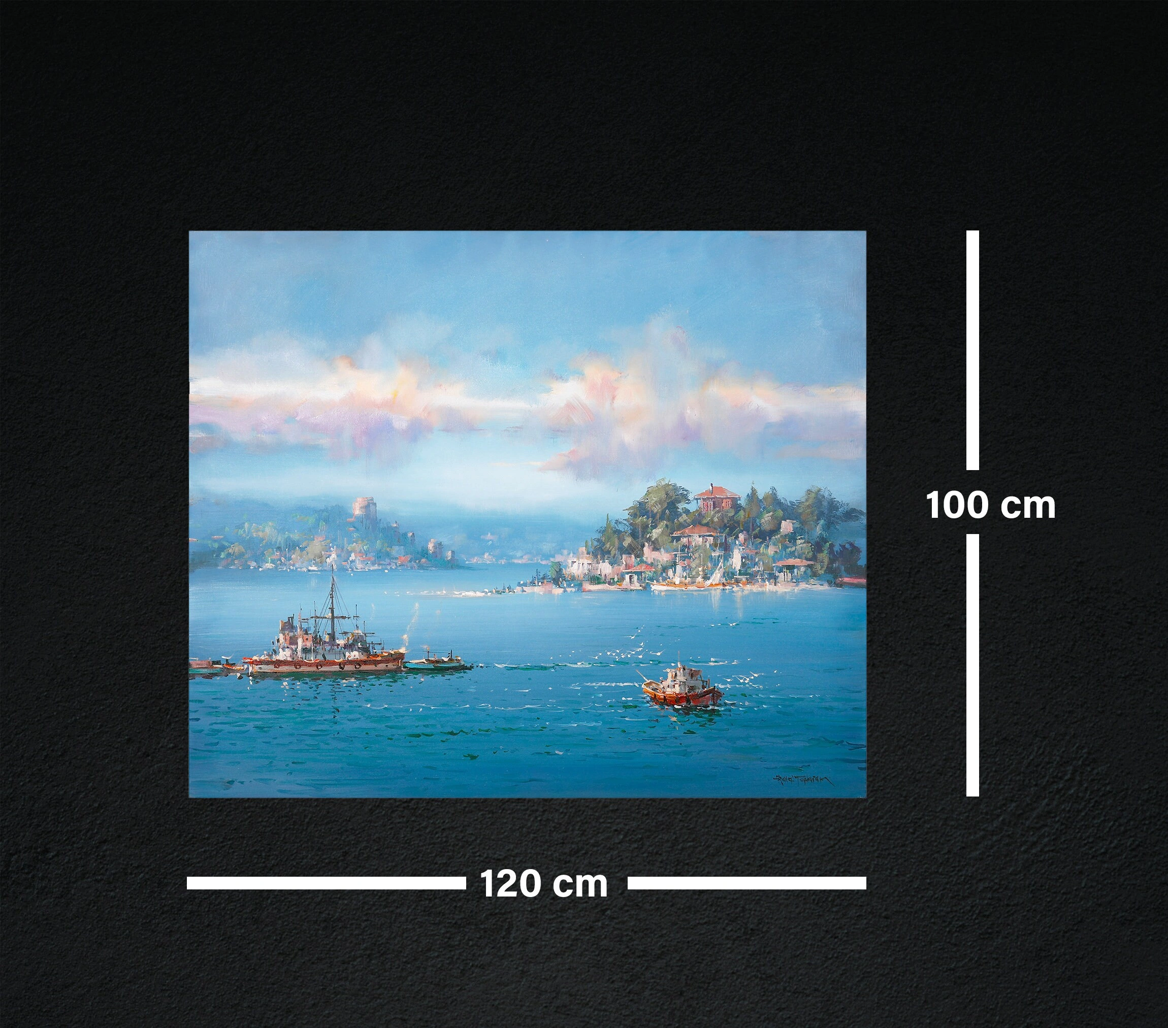 • İstanbul Tarihi Yarımada Manzarası Tuval Üzeri Yağlıboya Kanvas Tablo İstanbul Tablo Anadolu Hisarı Rumeli Hisarı Manzarası Büyük Yağlıboya Tablo