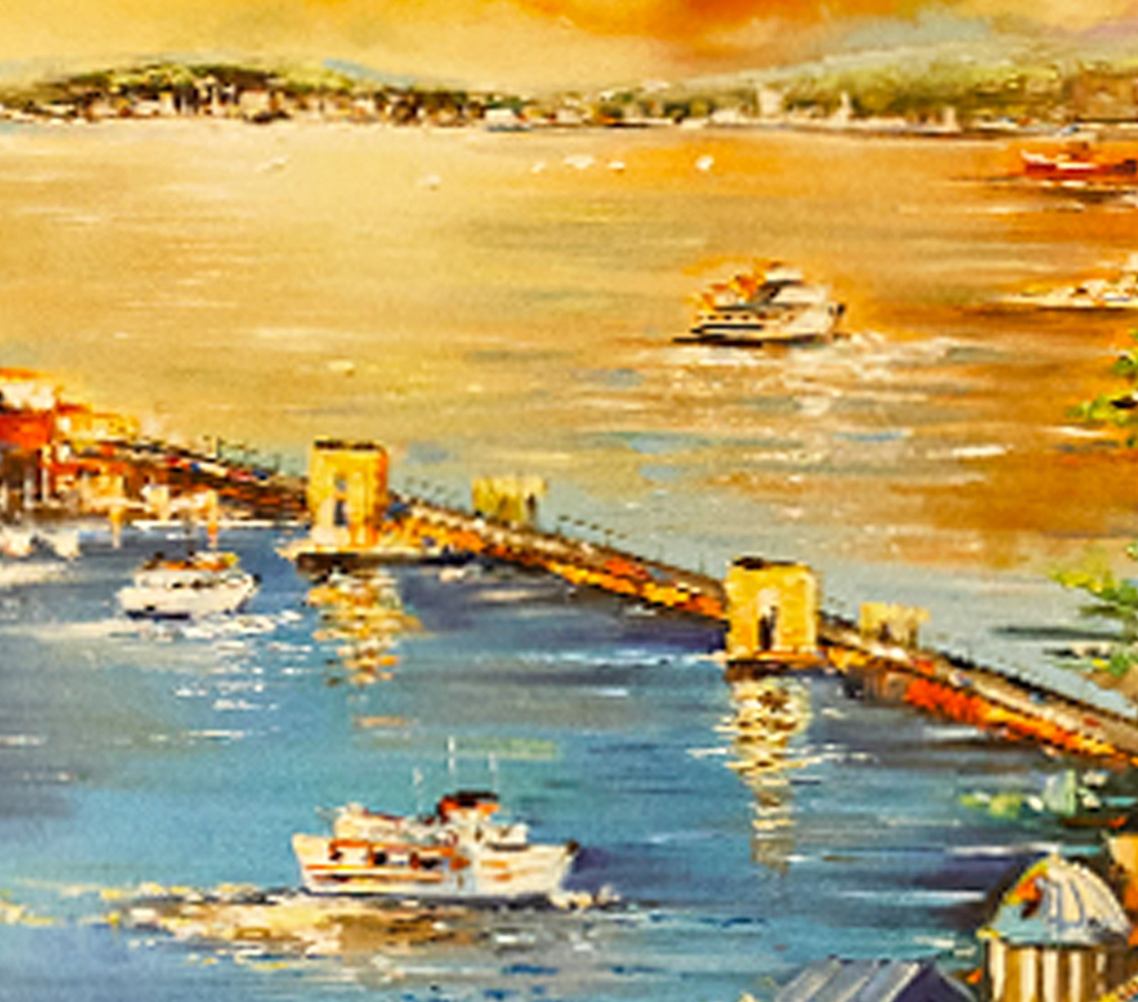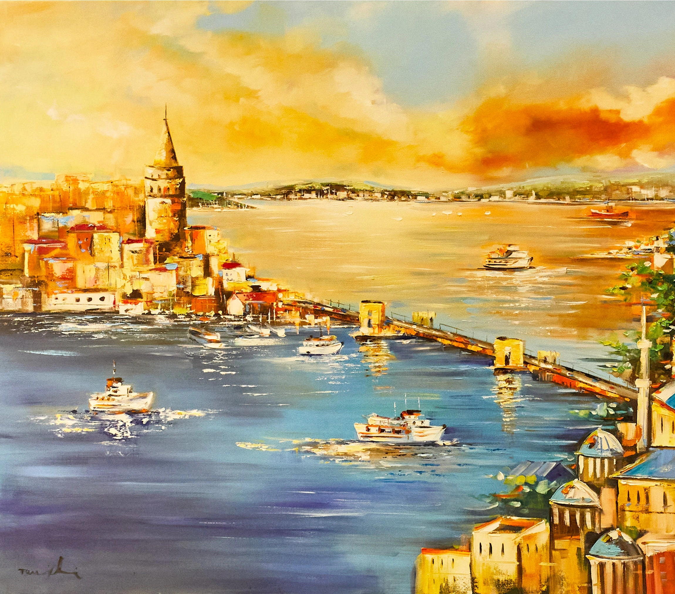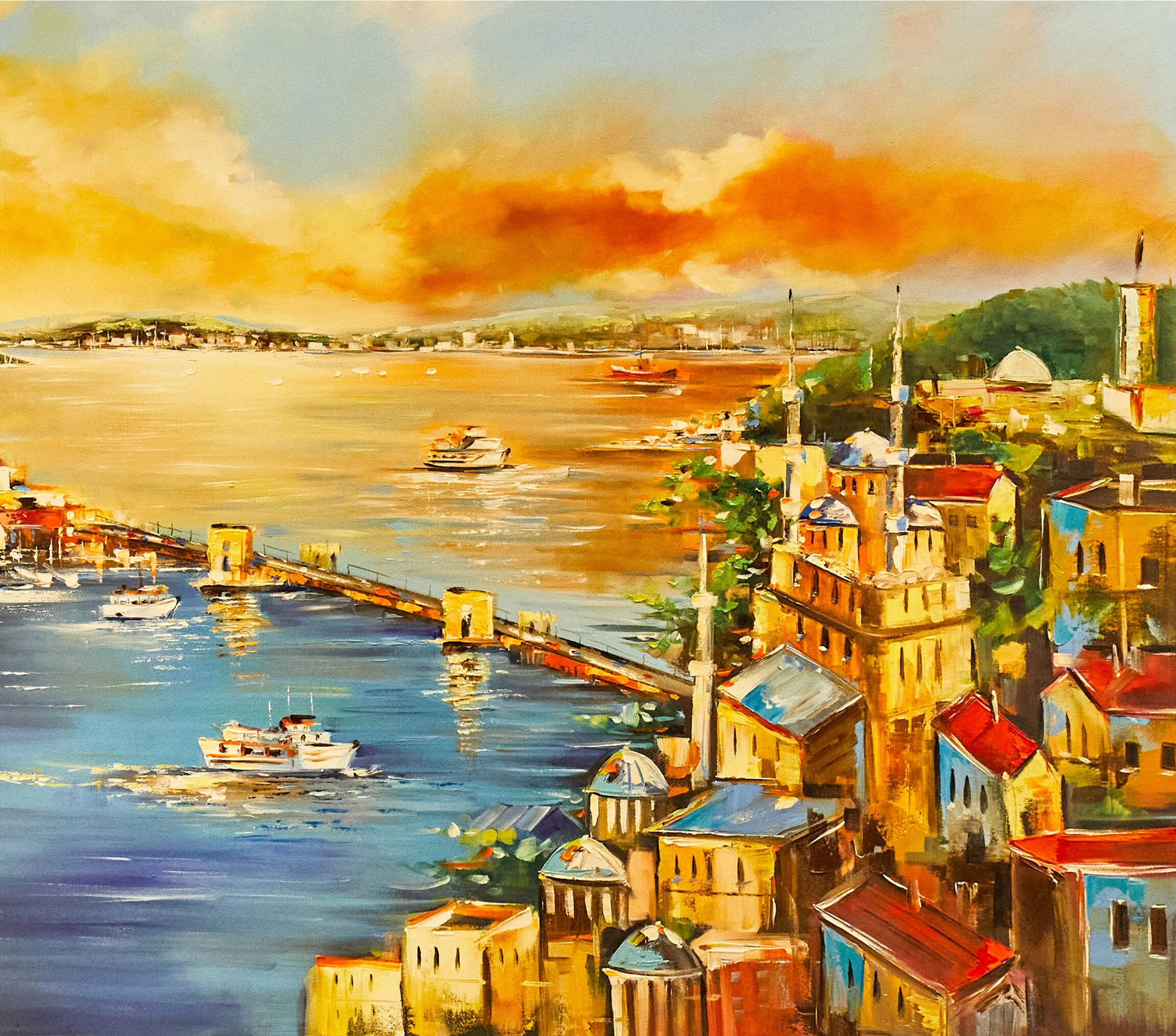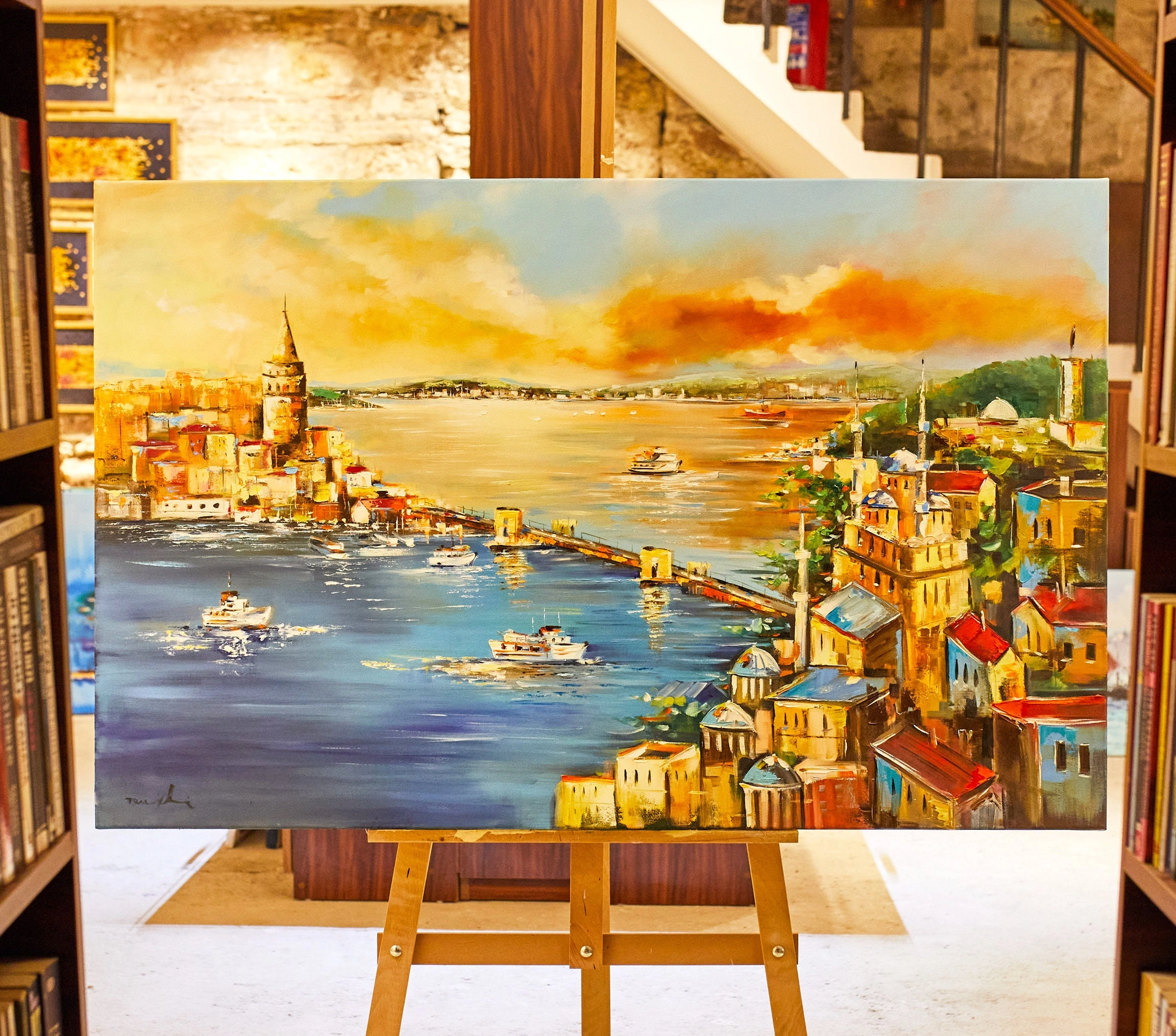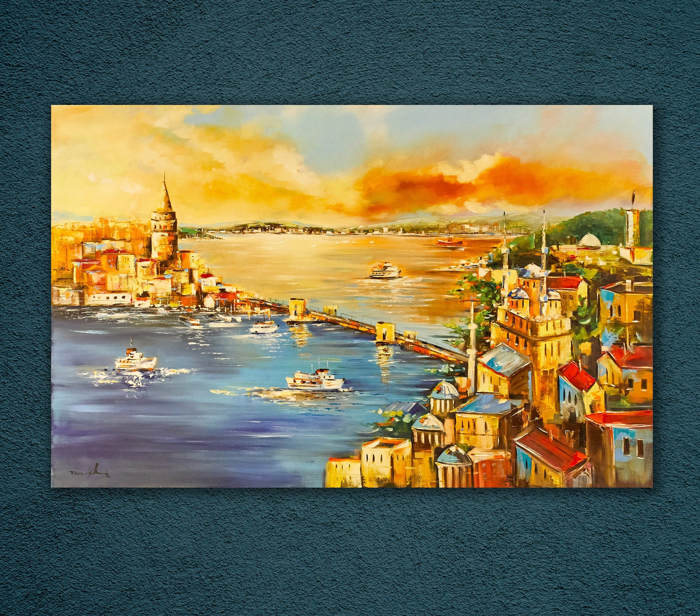 • İstanbul Tarihi Yarımada Manzarası Kanvas Tablo Tuval Üzeri Yağlı Boya İstanbul Galata Kulesi Resmi İstanbul Tuval Eser