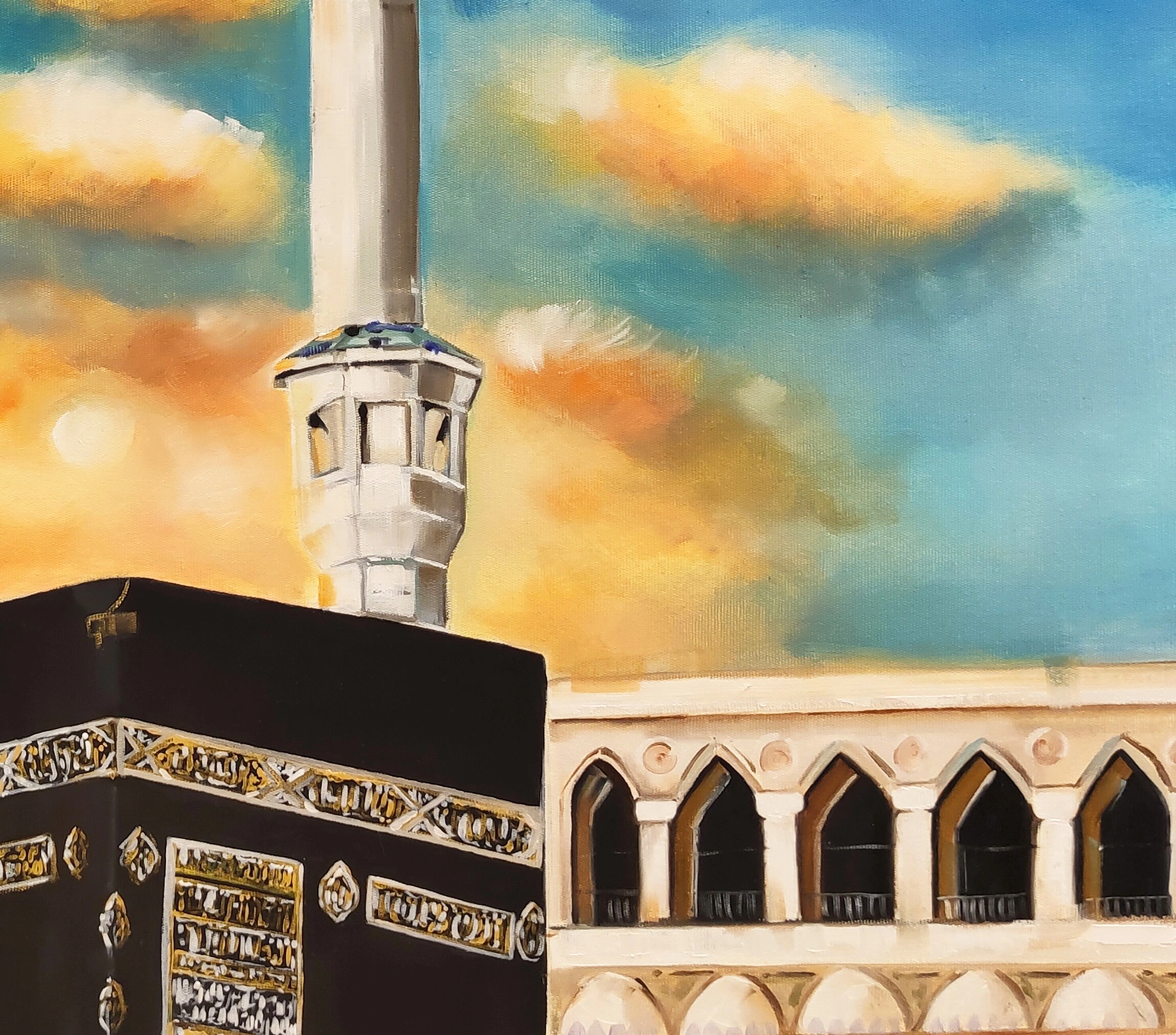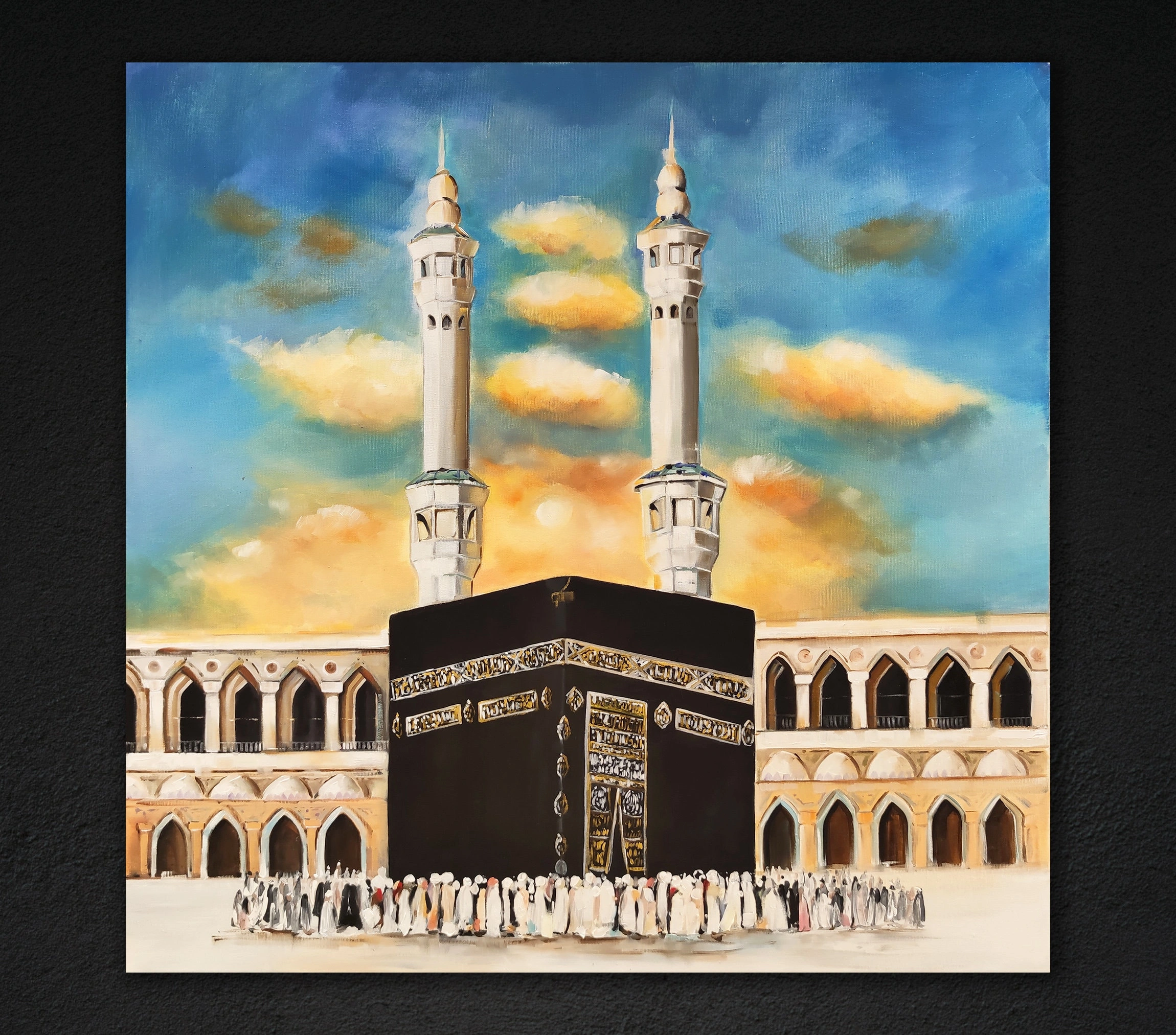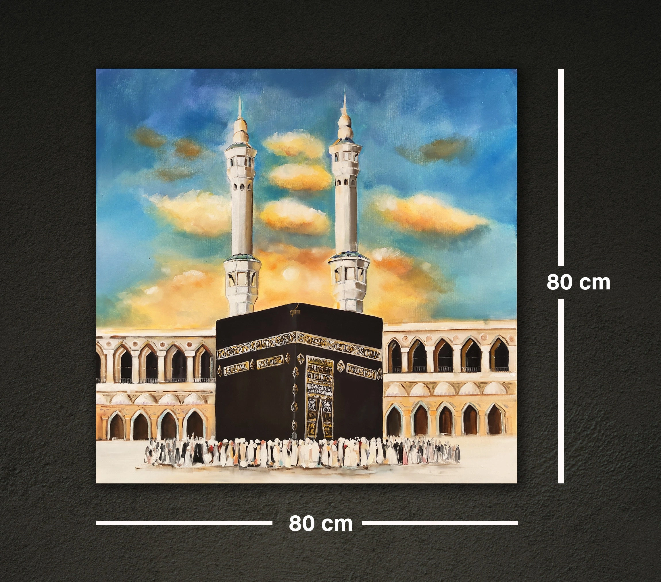 • Kabe Mescid El Aksa Yağlı Boya Tablo Tuvar Üzerine Kaber Manzarası Mekke Hac Resmi Hediyelik İslami Kanvas Duvar Dekoru
