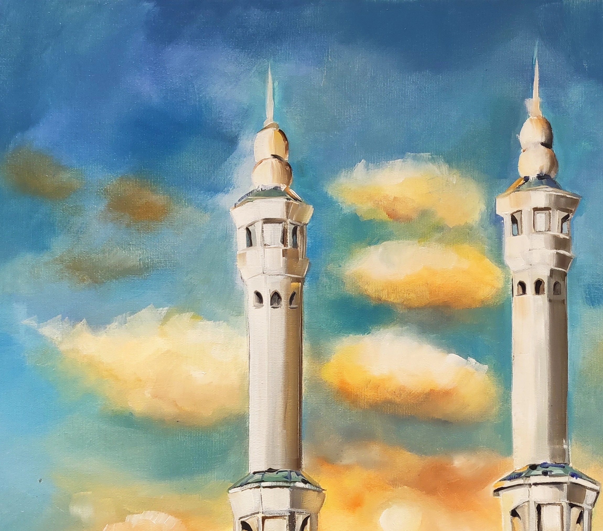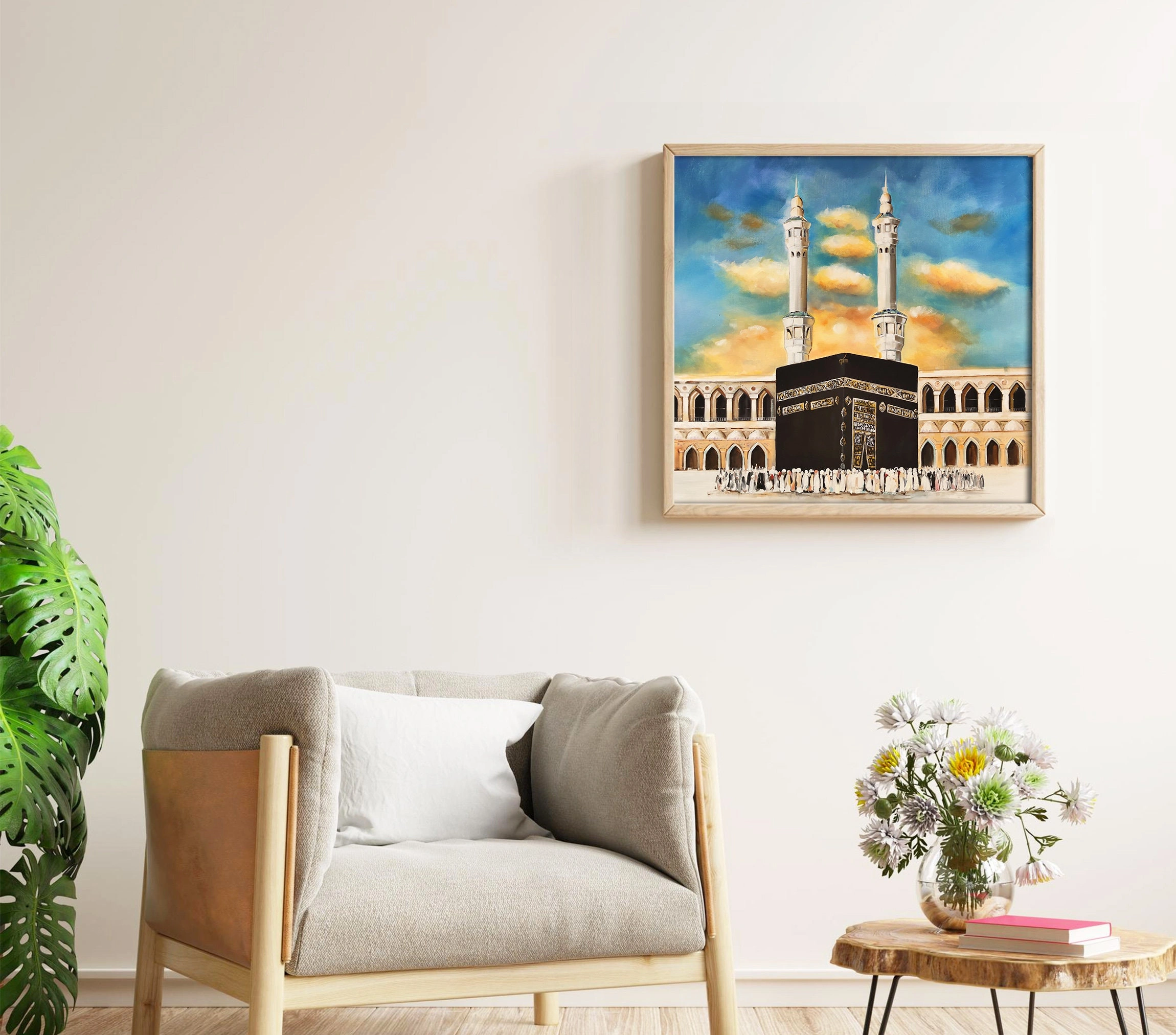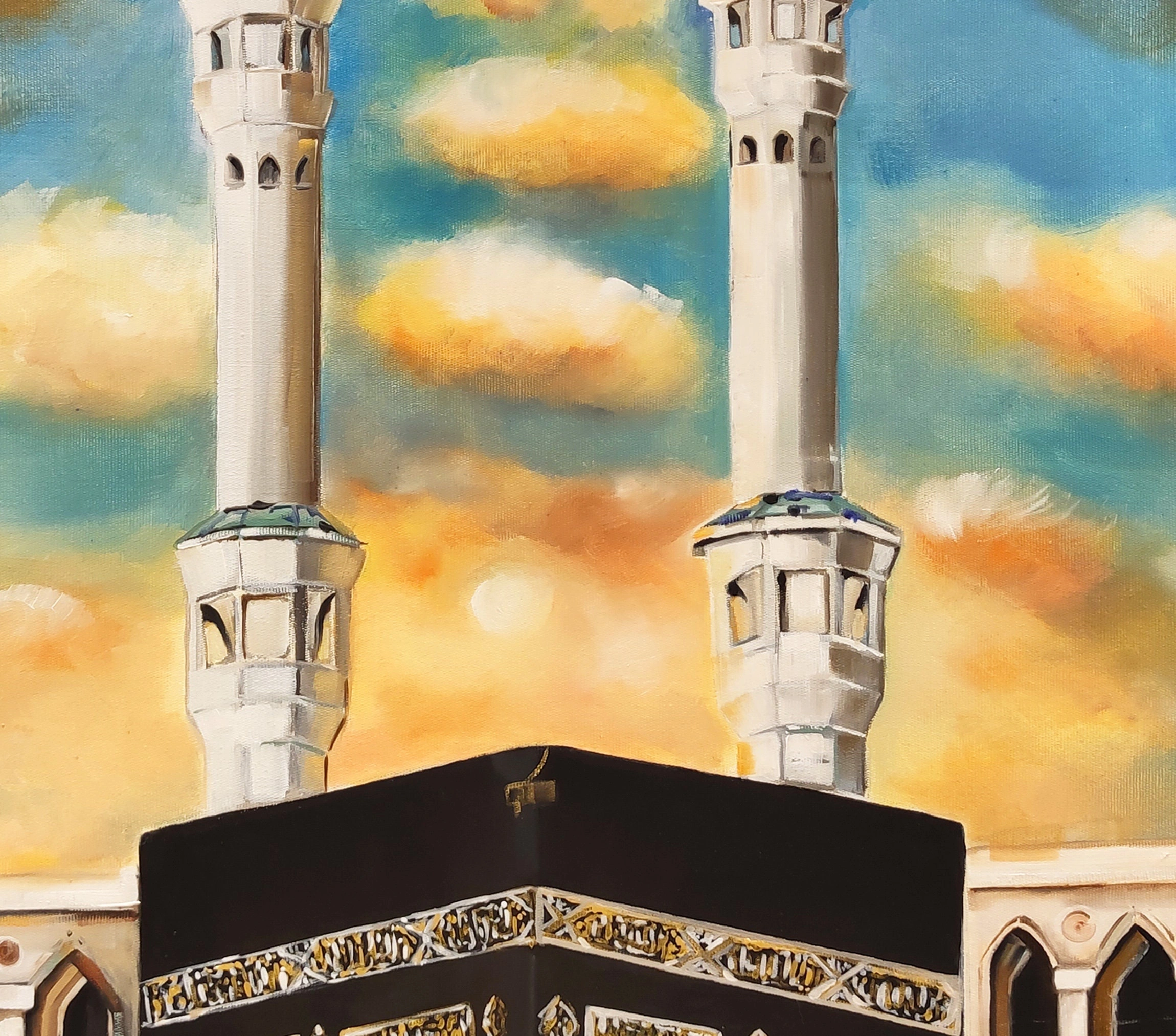 • Kabe Mescid El Aksa Yağlı Boya Tablo Tuvar Üzerine Kaber Manzarası Mekke Hac Resmi Hediyelik İslami Kanvas Duvar Dekoru