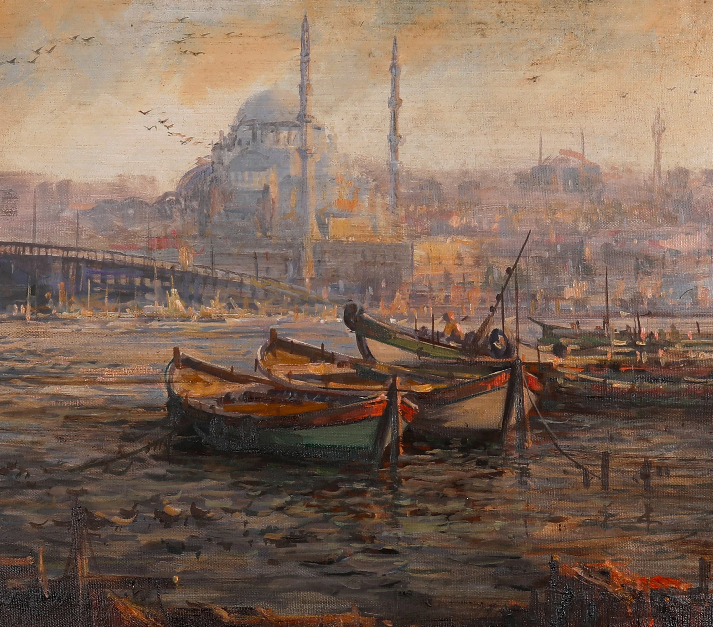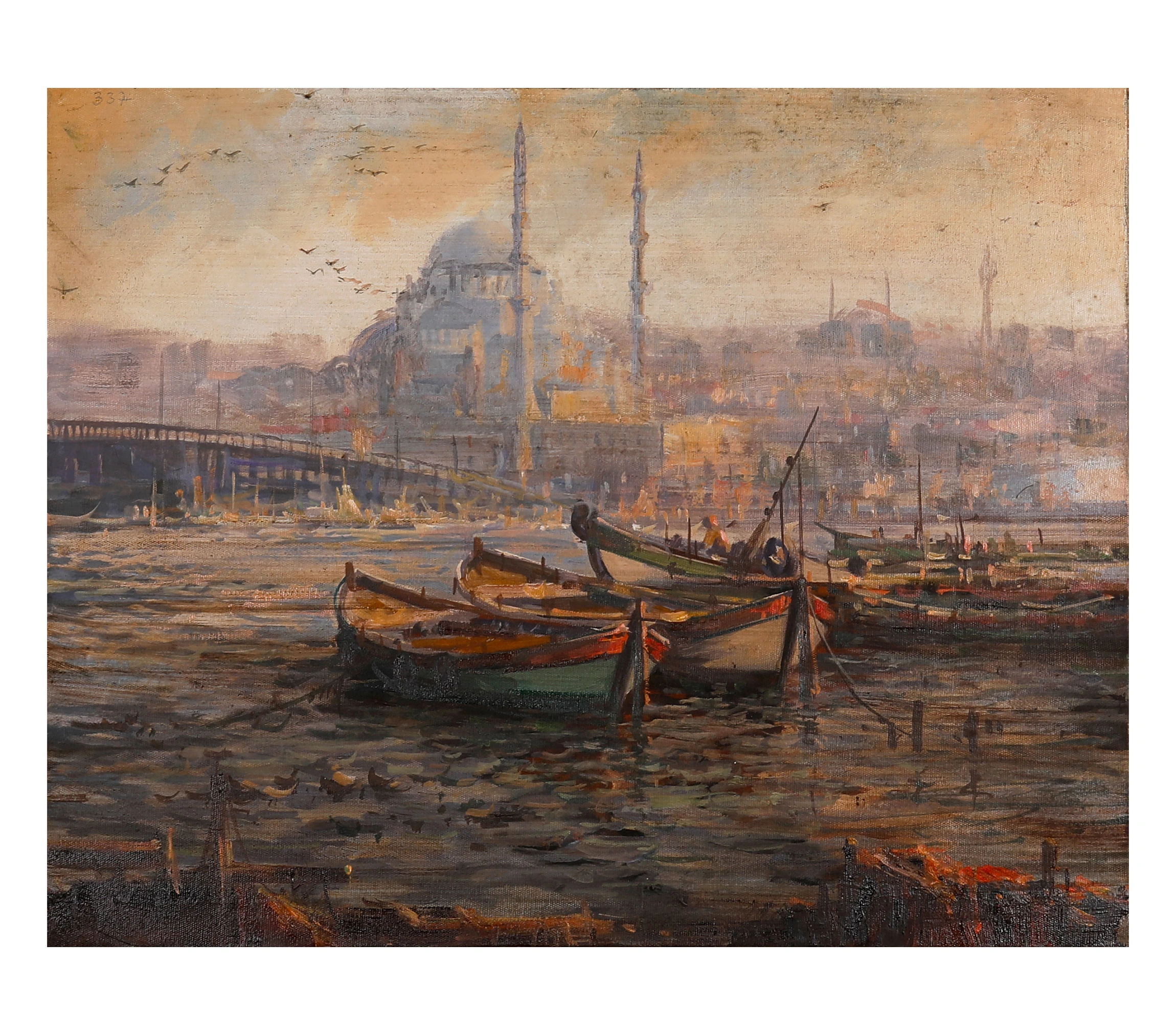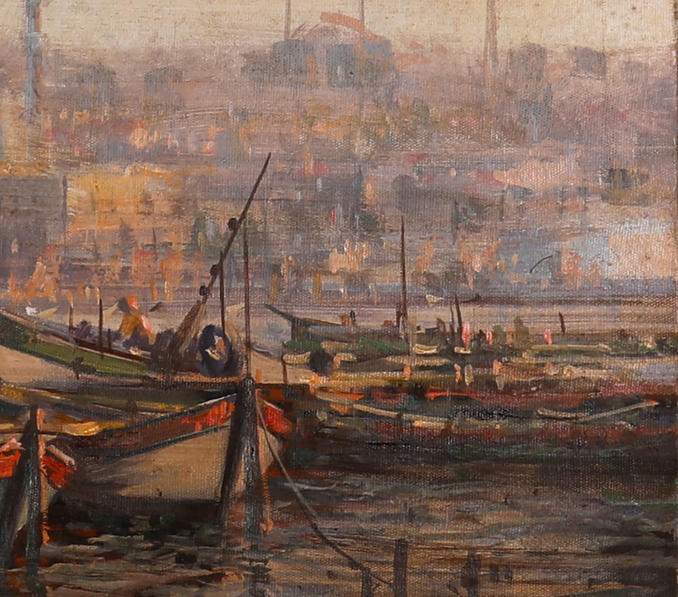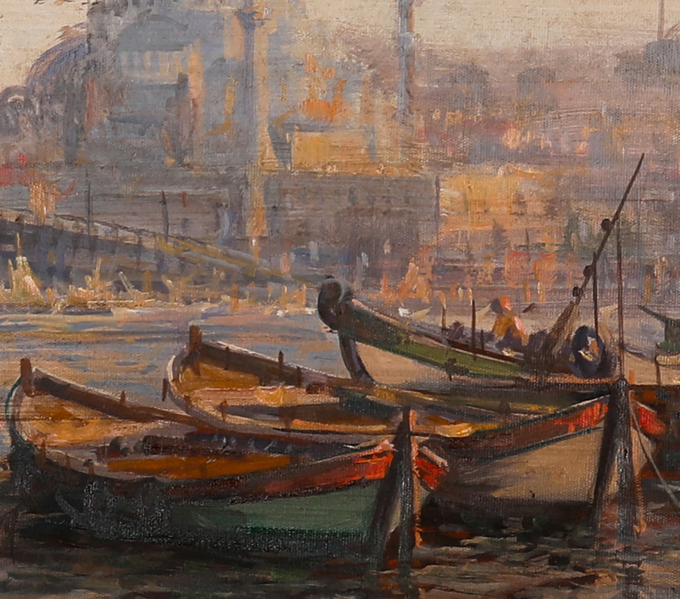 • İstanbul Boğazı'nda Kayıklar Kanvas Tablo Tuval Üzeri Yağlıboya İstanbul Balıkçı Tekneleri Tablo İstanbul Boğaziçi Resmi Hediyelik Ev Eşyası