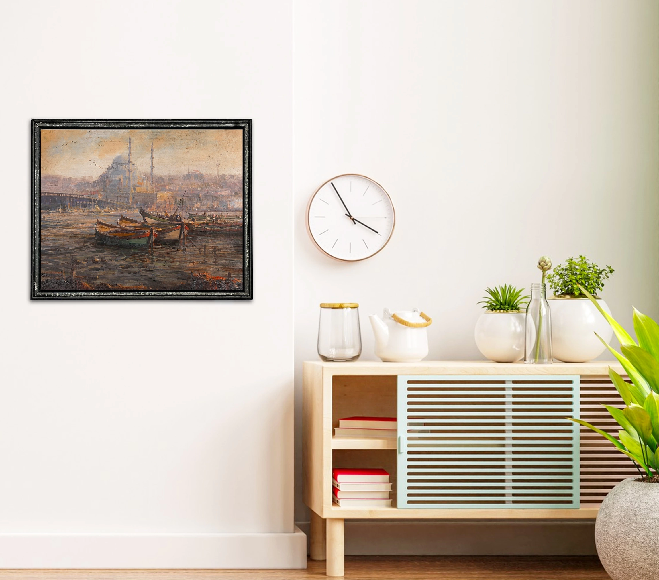 Gece gündüz hareketli kentin güzel kıyı manzarası ve etkileyici renk seçimi, İstanbul'un büyüsünü yakalayan diğer unsurlarla tamamlanıyor. Bu muhteşem İstanbul manzaralı kayıklar tablosu ile İstanbul'un güzelliğini yaşarken şehrin bir parçasını da yaşam alanlarınıza getirmenin keyfini yaşayın. İster anlamlı bir ev hediyesi olarak, isterseniz kendi koleksiyonunuz için çarpıcı bir sanat eseri arıyor olun, bu İstanbul tablosunun sizi etkileyeceğinden emin olabilirsiniz.