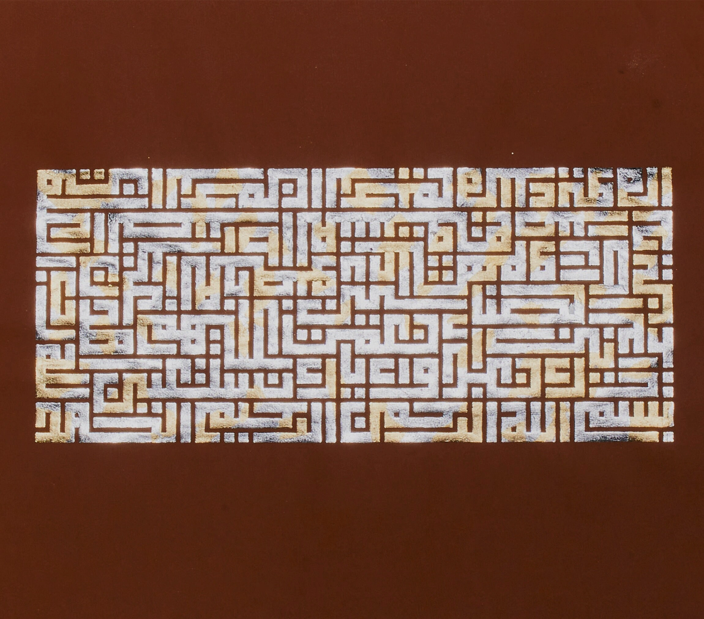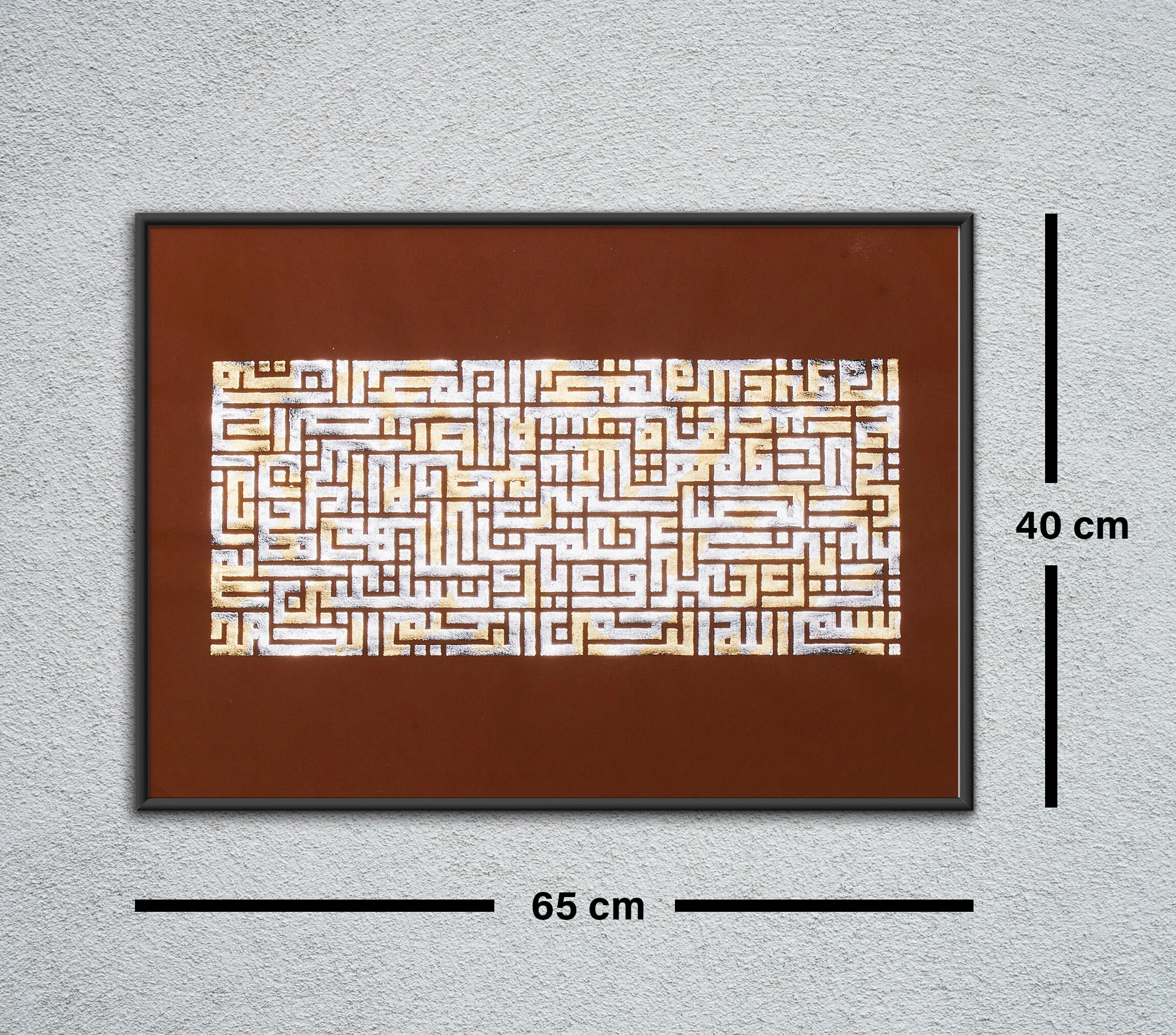 Kufi Fatiha Suresi Modern Kaligrafi Kırmızı Tablo 40x65 cm
