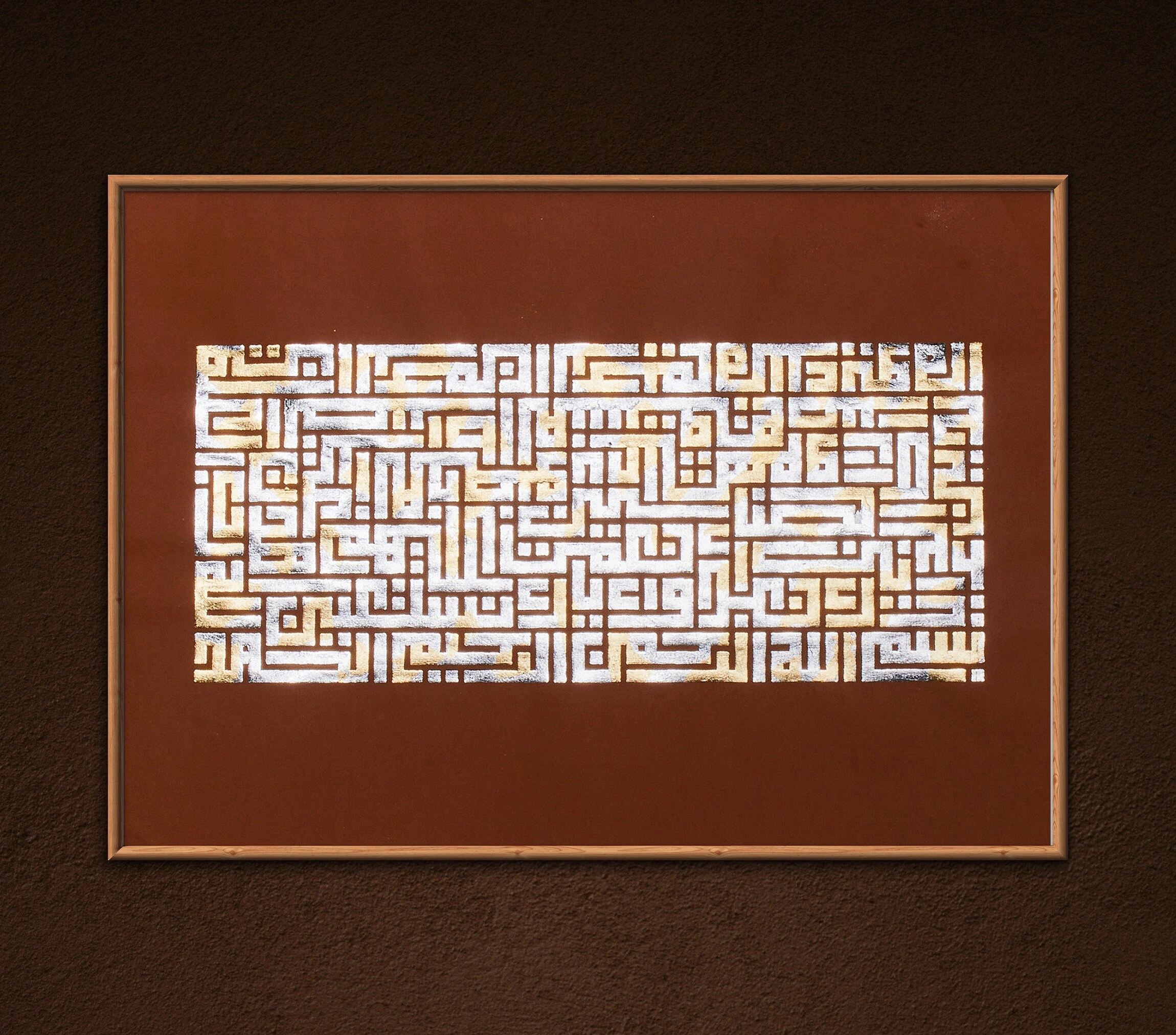 Kufi yazım stiliyle kırmızı renkte doğal kağıt üzerine el yazması Fatiha Suresi, misafirlerinizi hayran bırakacak zarif bir duvar dekorudur. Tasarımıyla dikkat çeken ve Fatiha Suresi'nin mesajını öne çıkaran, ince işçilik ürünü kufi İslami hat sanatı altın varaklı detaylarıyla, canlı renkleri ve dokusuyla eşsiz bir görünüme sahiptir. Her harfin adeta başlı başına bir sanat eseri olduğu bu sofistike kufi hat eseri, zamansız ve mekansız bu İlahi sözün güzelliğini hatırlatıyor. Sevgiyle hazırlanmış bu İslami hat el yazması detaylara gösterilen öneme ve el yapımı kağıdından, kırmızı ve altının uyumuna kadar her unsur, etkileyici bir İslami sanat yaratmak için özenle tasarlanmıştır. Bu çekici İslami hat el yazması, evinize ilahi bir huzur ve zarafet dokunuşu getirerek her odayı kutsal bir alana dönüştürme özelliğiyle, evinizin hayranlık uyandıran değerli bir parçası olacaktır.
