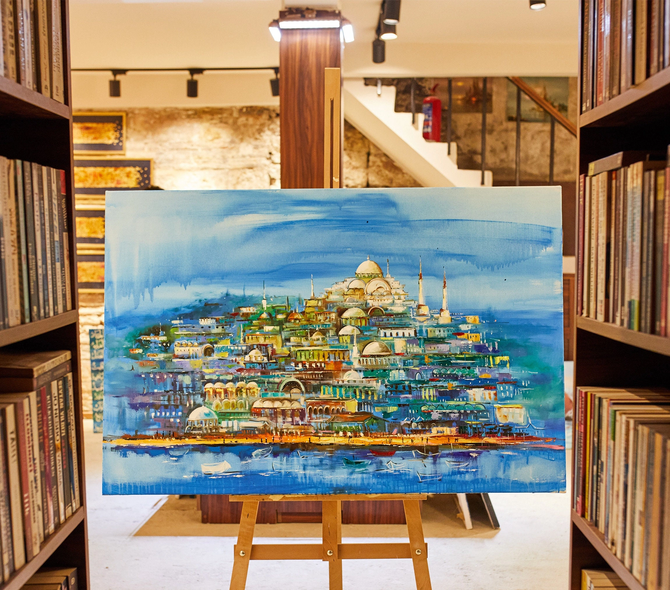 Mavi İstanbul kolajı yağlı boya tablo duvarlarınıza, mimarisiyle nefes kesen bu muhteşem şehrin güzelliğini getirecek. Türünün tek örneği olan İstanbul Tarihi Yarımada manzaralı tuval eser, ev dekorunuza güzel hisler ve inkar edilemez bir çekicilik getirmenin doğru yoludur. Bu eserde ağırlıklı kullanılan mavi renklerin izleyenleri sakinleştirici bir etkisi olacağı ve her alana rahatlatıcı bir atmosfer getireceği kesin. El yapımı orijinal tablo, İstanbul'un tarihi merkezinin zarif bir temsilidir. Dikkat çekici bu İstanbul şehir manzaralı eser, şehrin kültürüne saygı göstermenin harika bir yoludur. İster oturma odanızda, isterseniz mutfak duvarlarınızda ya da salonunuzda gururla sergilensin, odak noktası görkemli Tarihi Yarımada olan bu mavi İstanbul tablosu, hiç şüphesiz her odayı enerjiyle dolduracak.