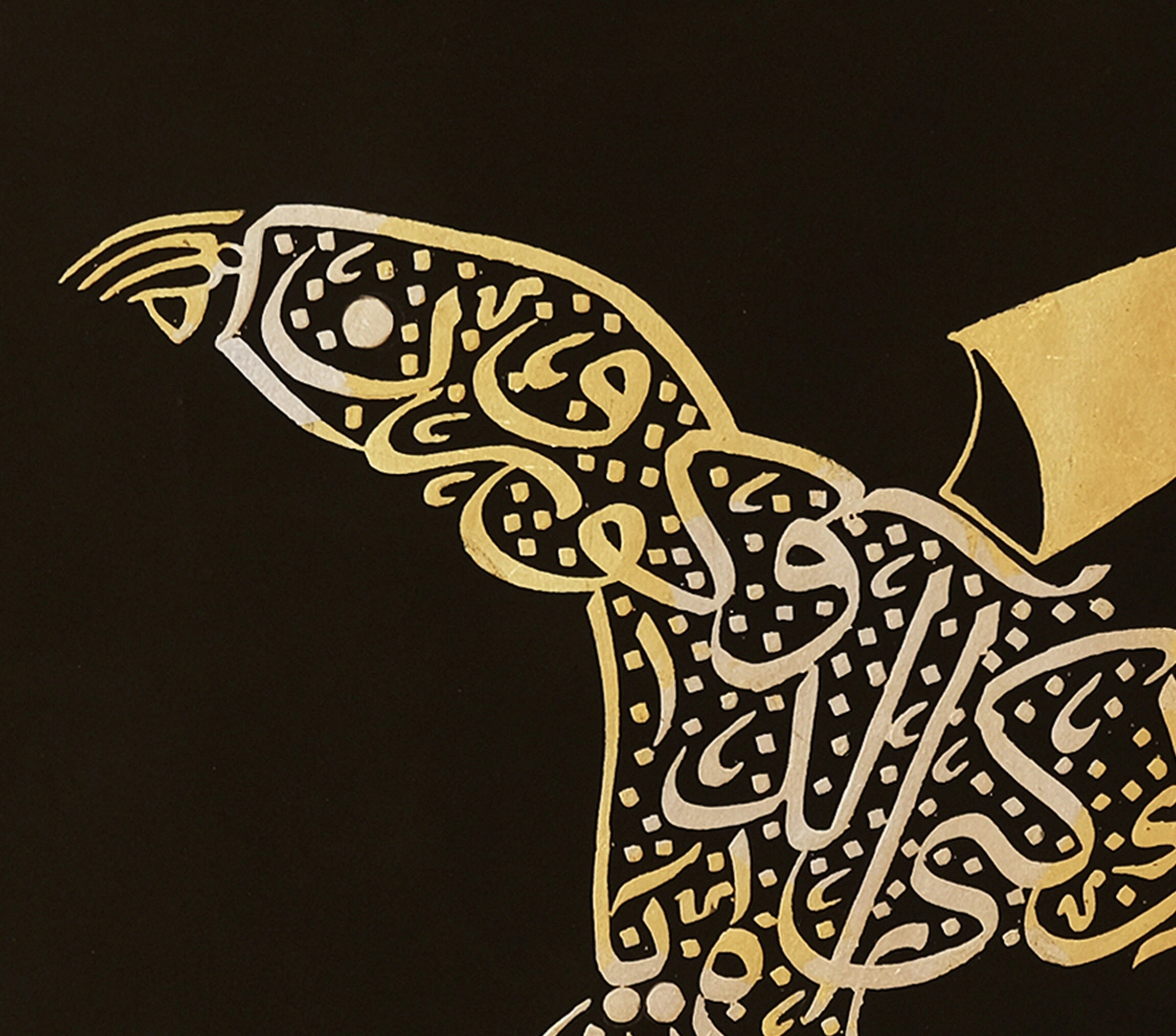• Aharlanmış doğal kağıt üzerine akrilik mürekkep ve altın varak