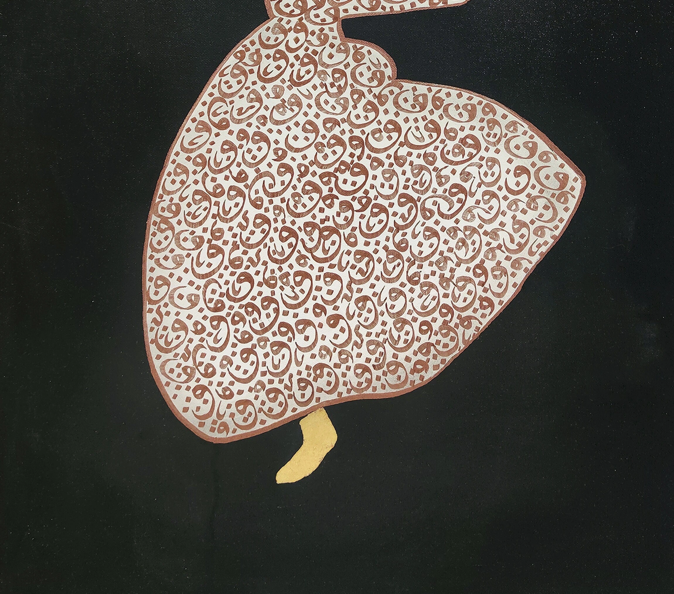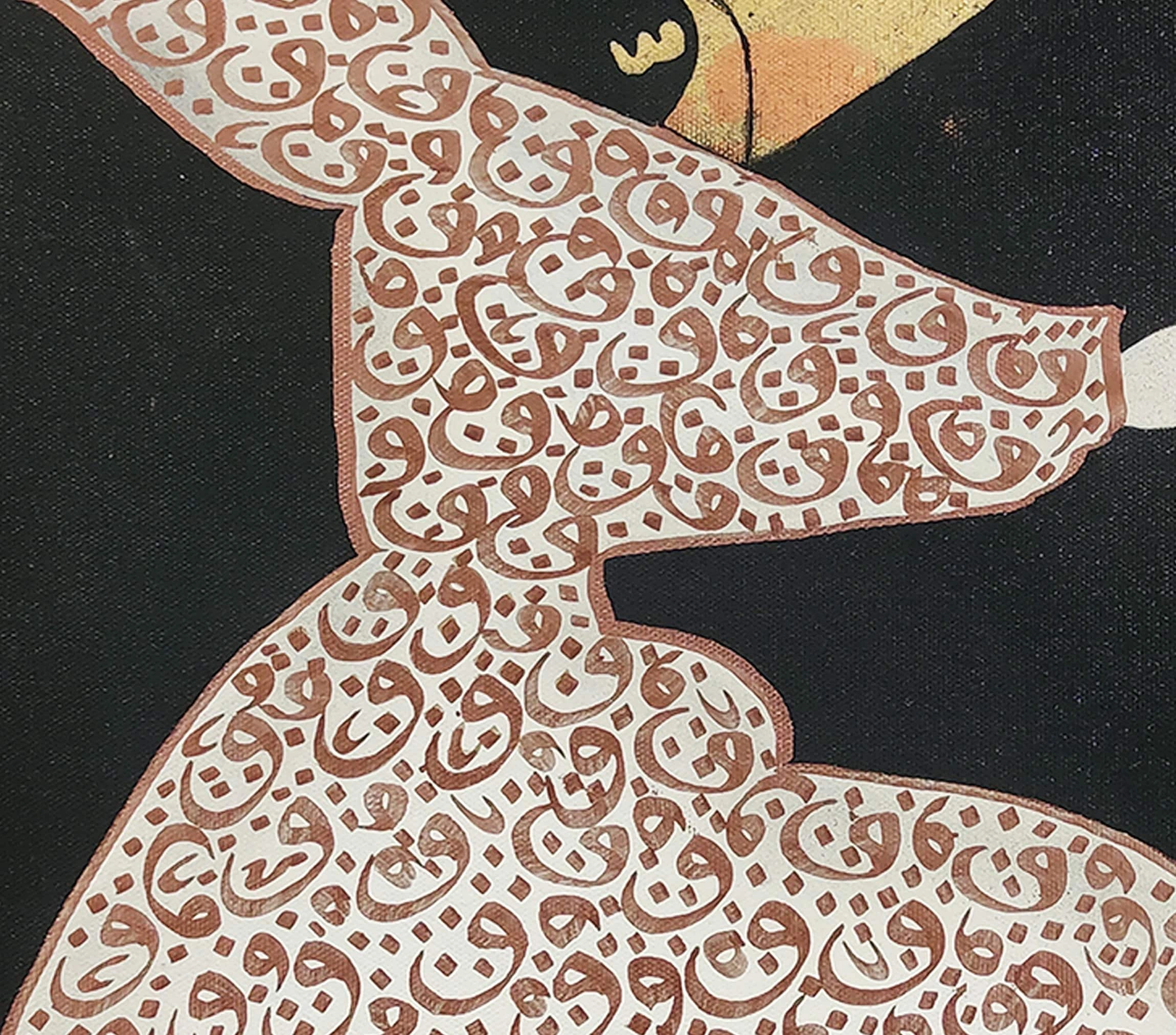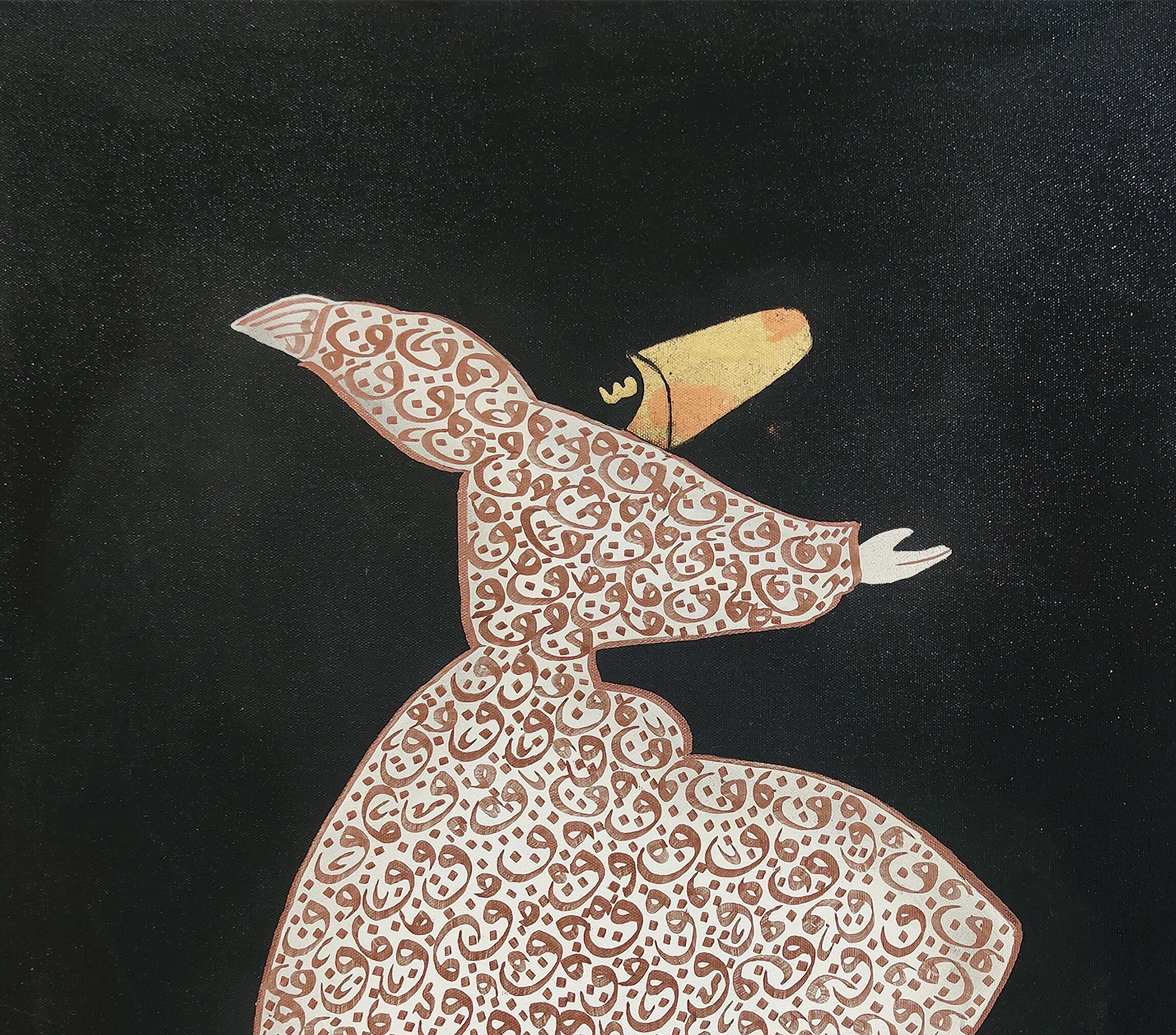 • Mevlana Semazen İslami Kaligrafi Tablo Doğal Kağıt Üzerine İs Mürekkebi ve Akrilik Arapça El Yazması İslami Hat Beyaz Kırmızı Derviş Duvar Dekoru