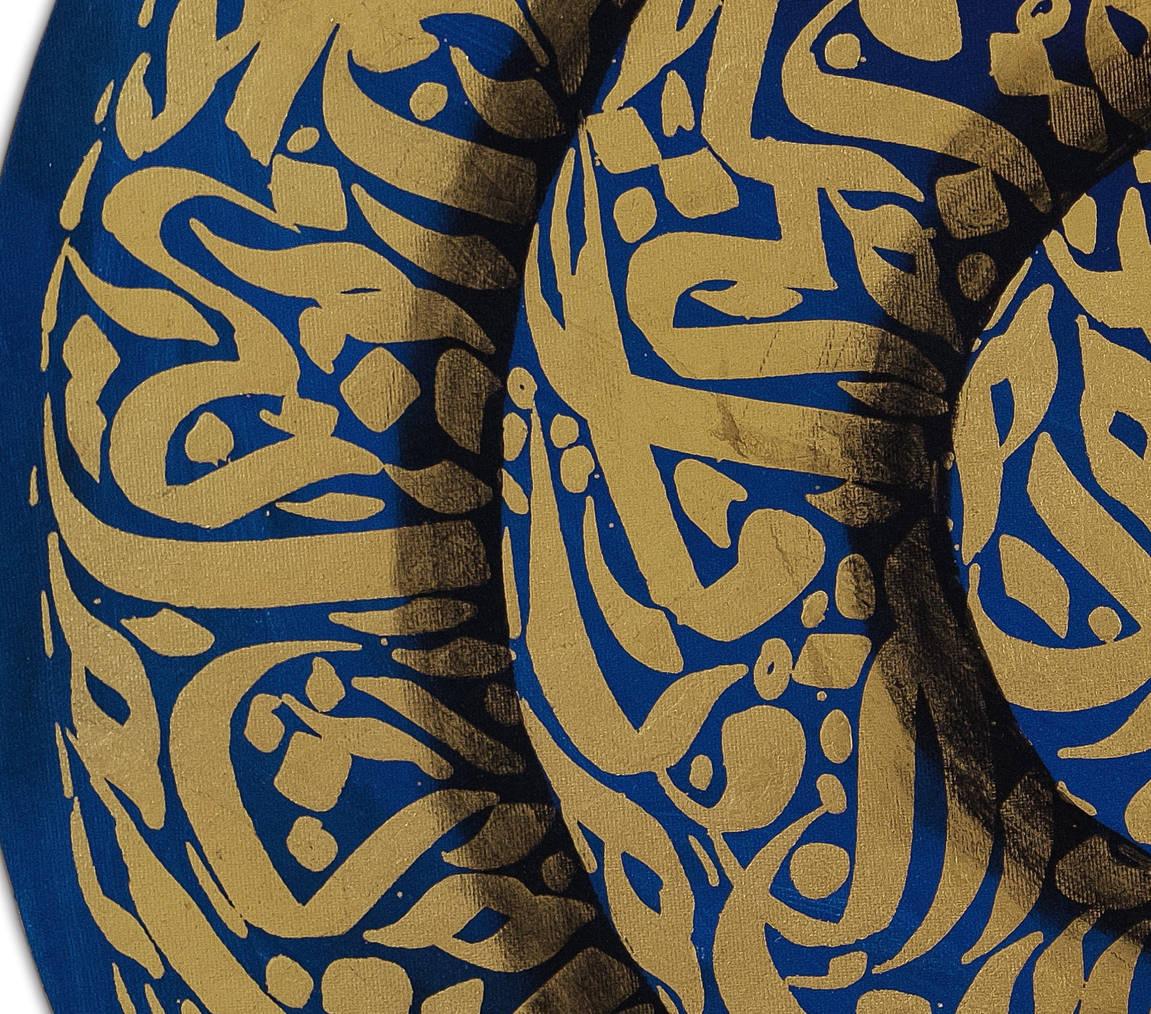 • Nazar Ayetii Mavi Kanvas Tablo Tuval Üzerine Altın Varaklı El Yazması Nazar Ayeti Modern Duvar Dekoru