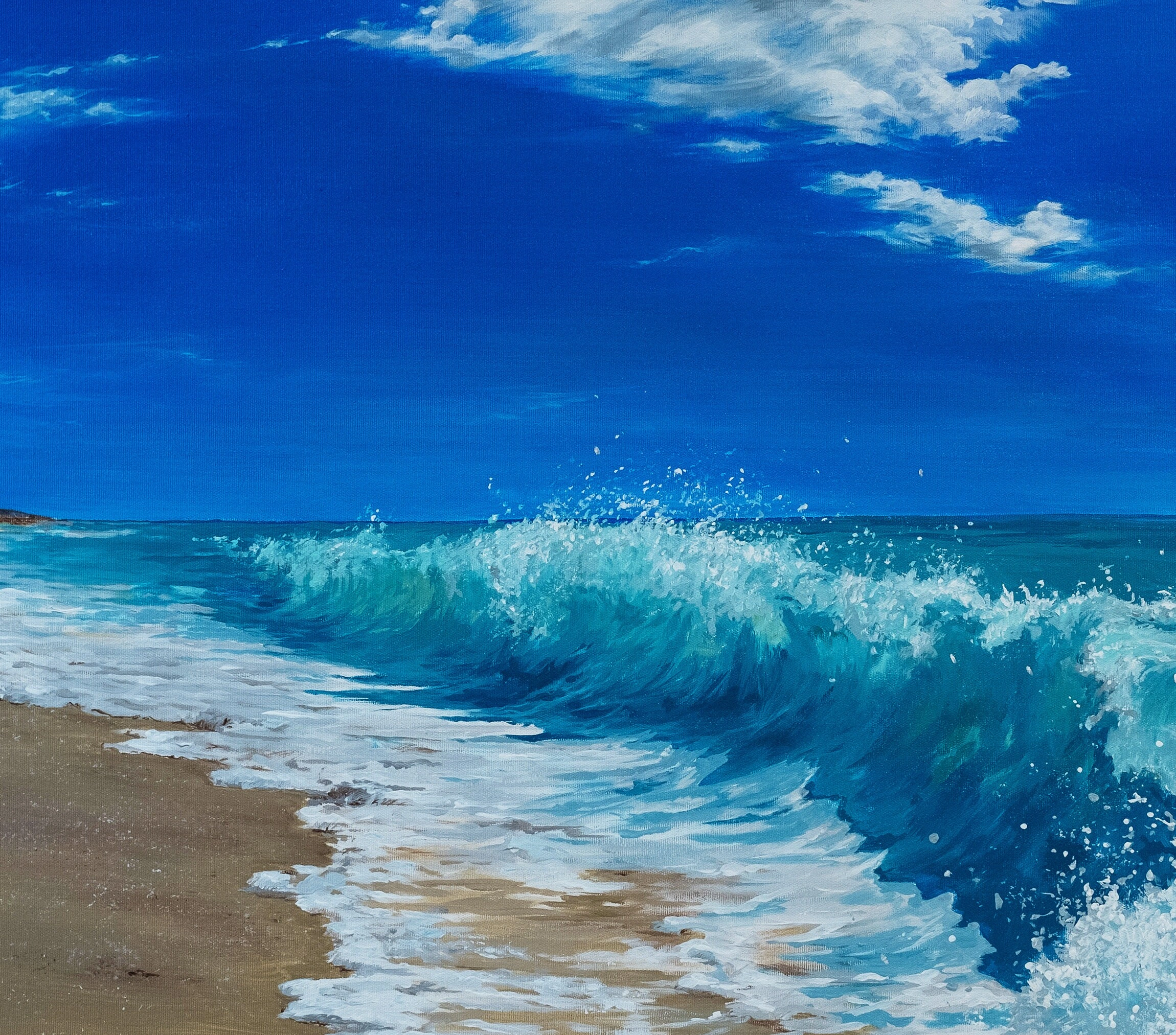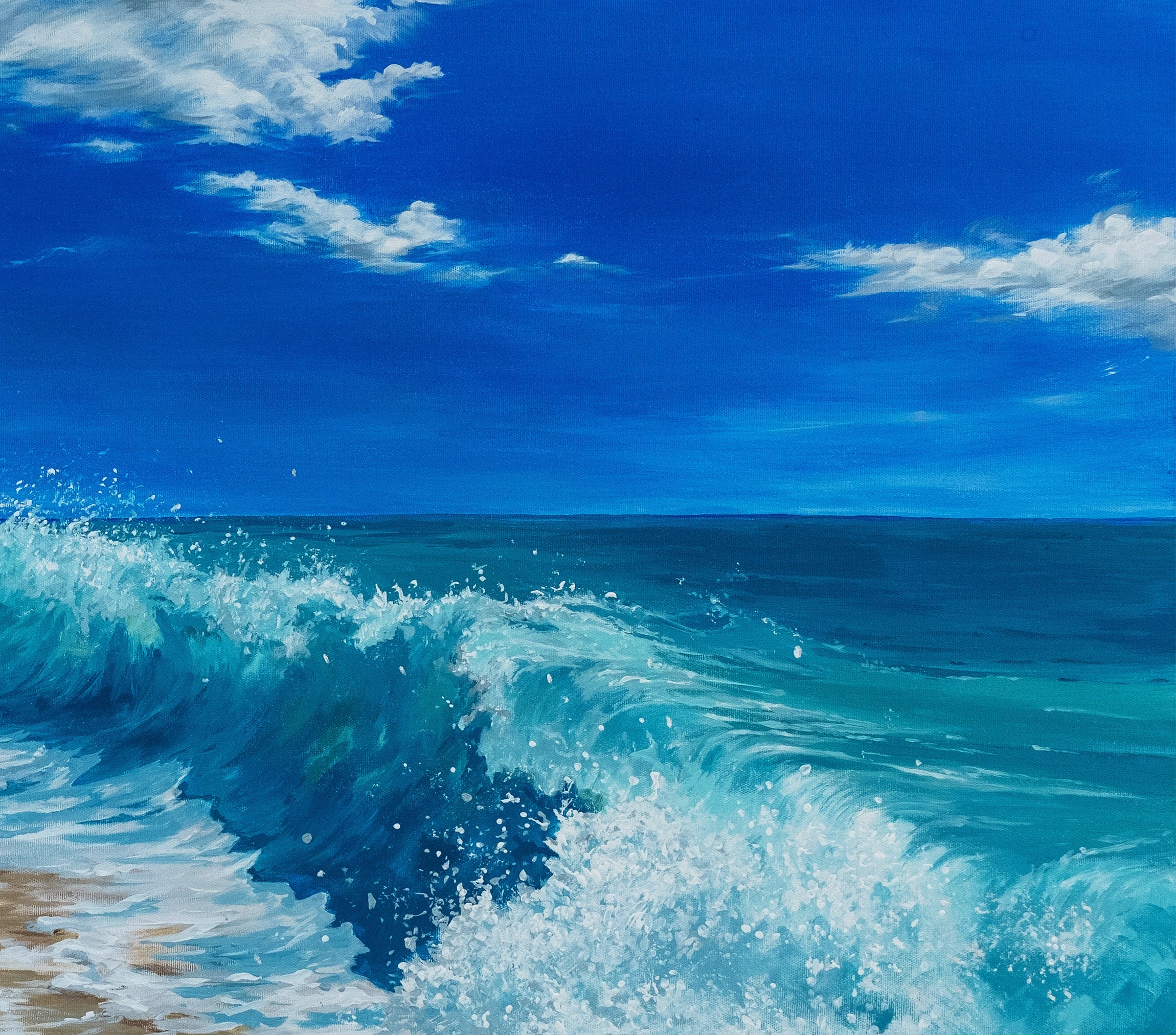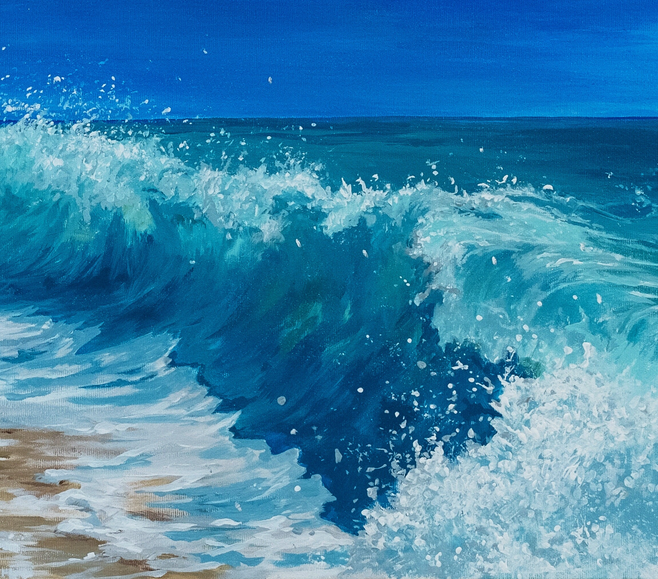 • Okyanus Dalgaları Mavi Yağlı Boya Kanvas Tablo Denize Vuran Dalgalar Tuval Üzeri Yağlı Boya Modern Duvar Dekoru