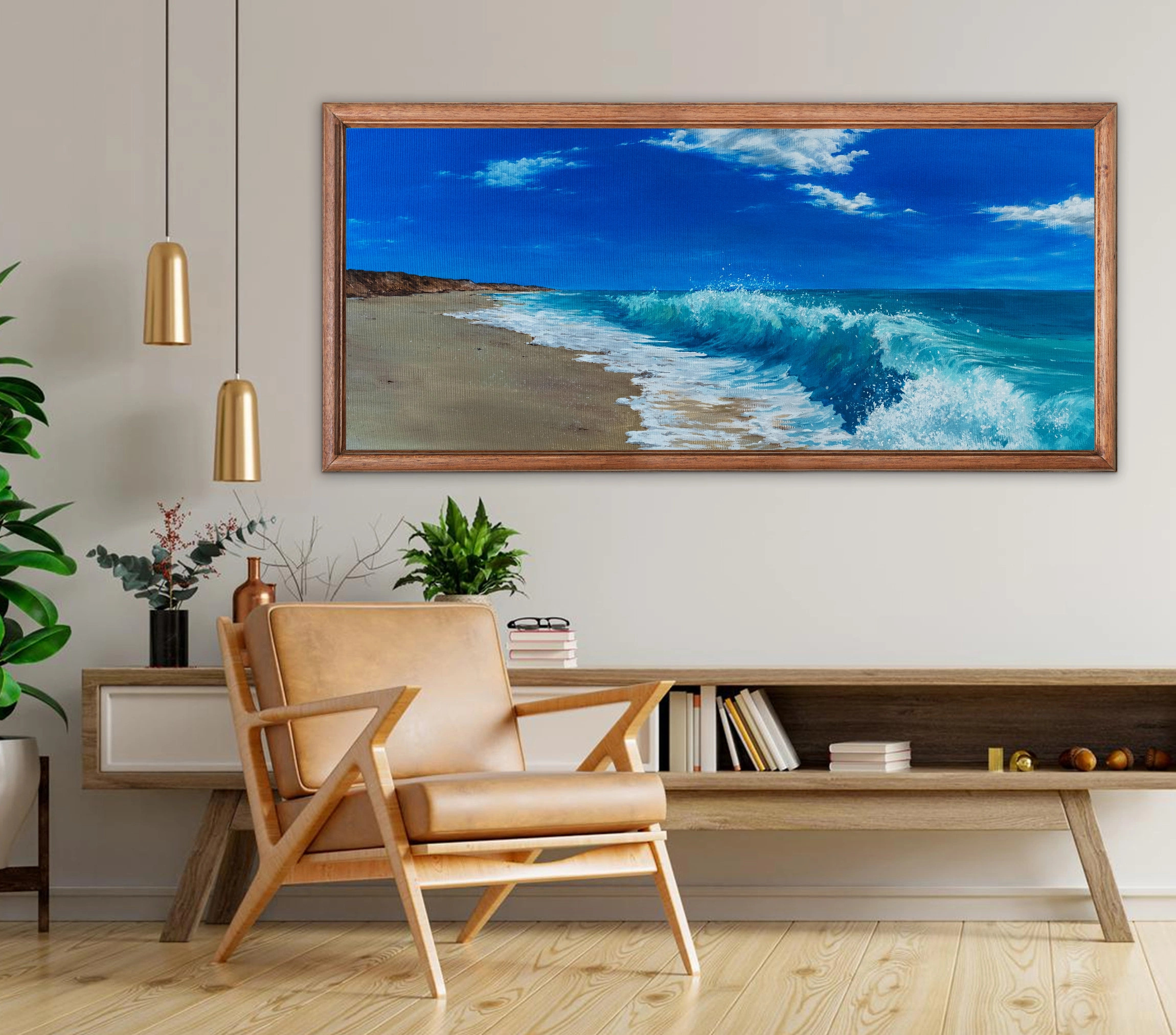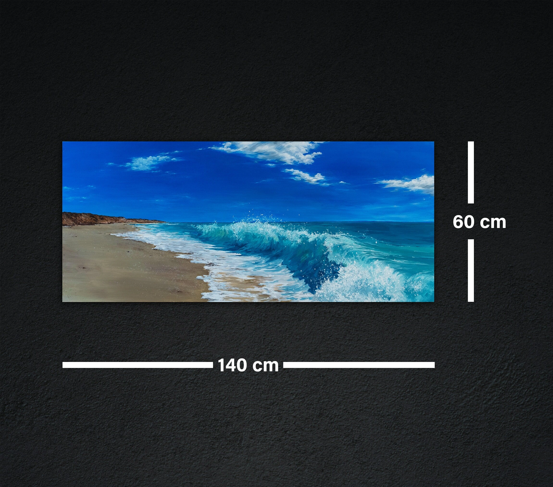Sahile Vuran Dalgalar Kanvas Tablo 60x140 cm