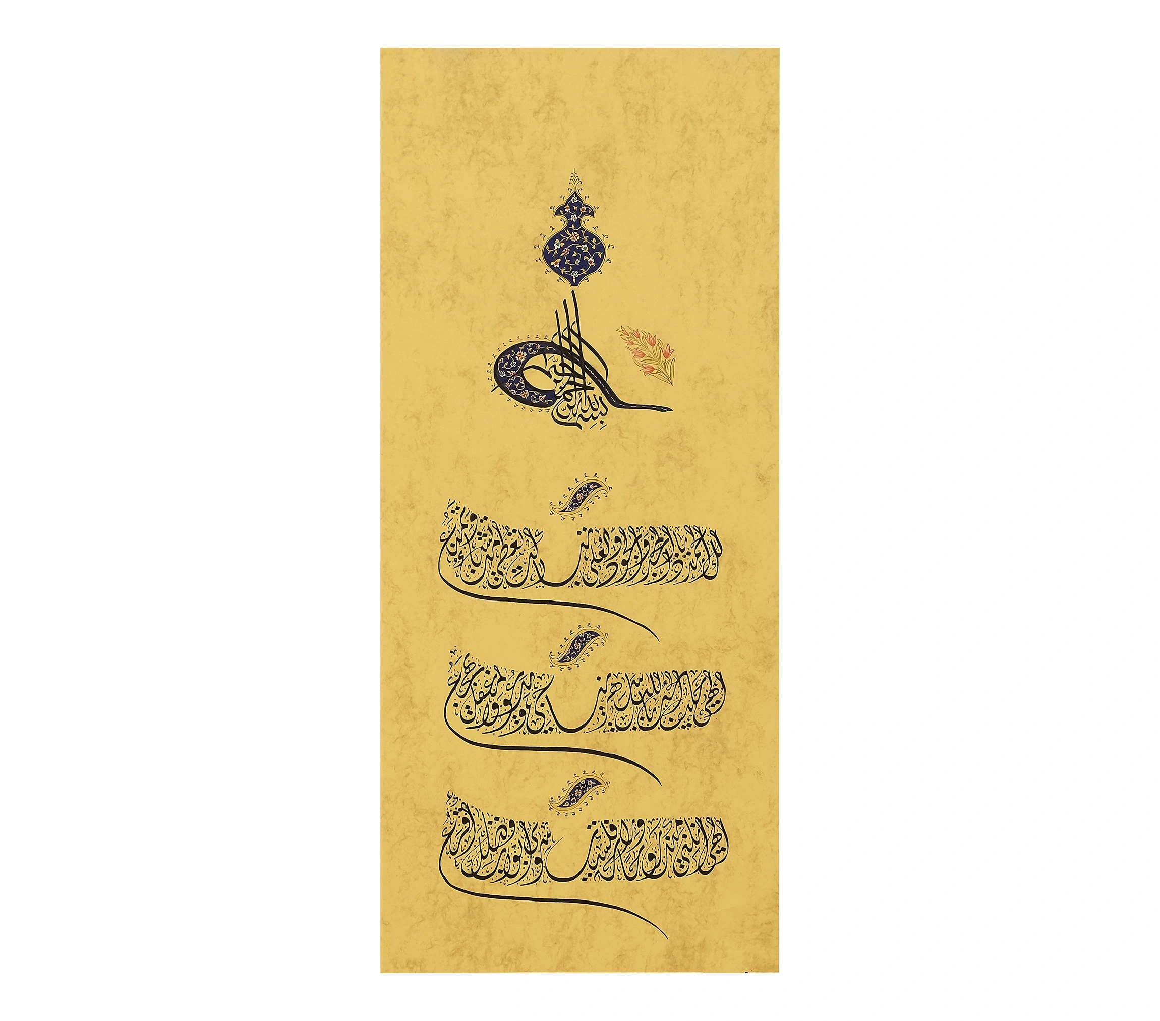 Osmanlı Fermanı Formunda El Yazması Ayet İslami Hat ve Tezhip Sanatı 35x80 cm