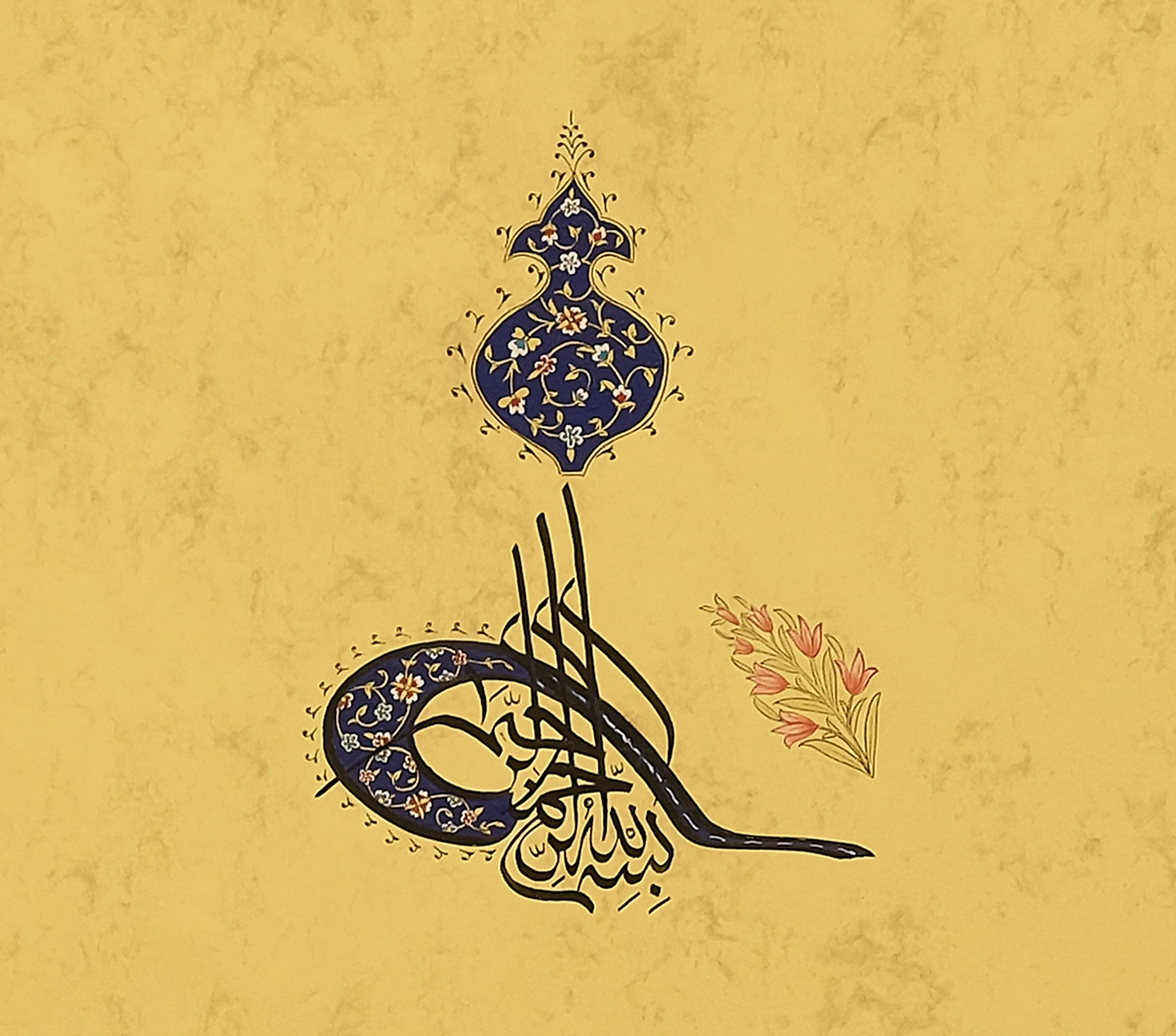 • Ekstra ince aharlı kağıt üzerine is mürekkebi, akrilik mürekkep ve altın varak