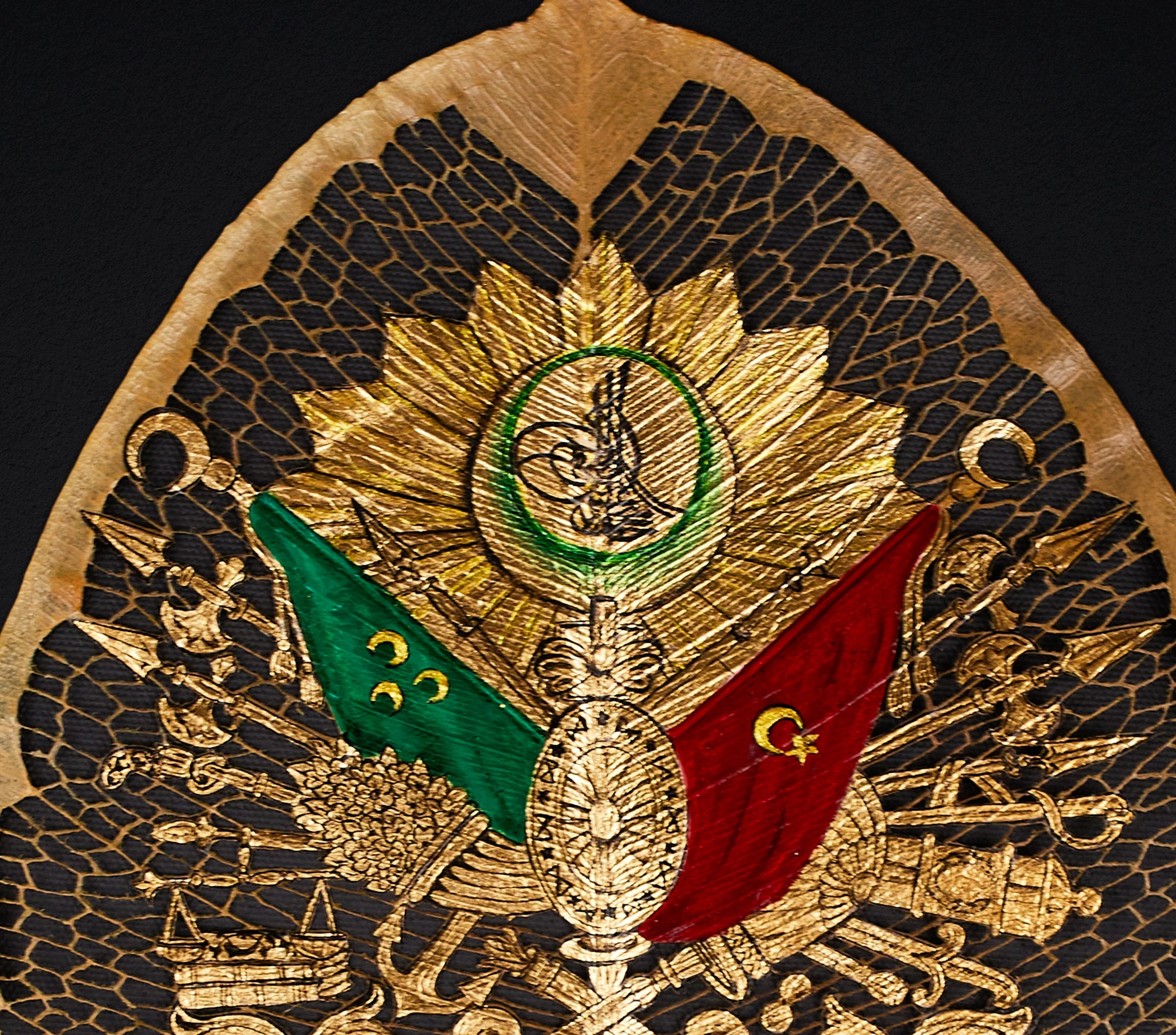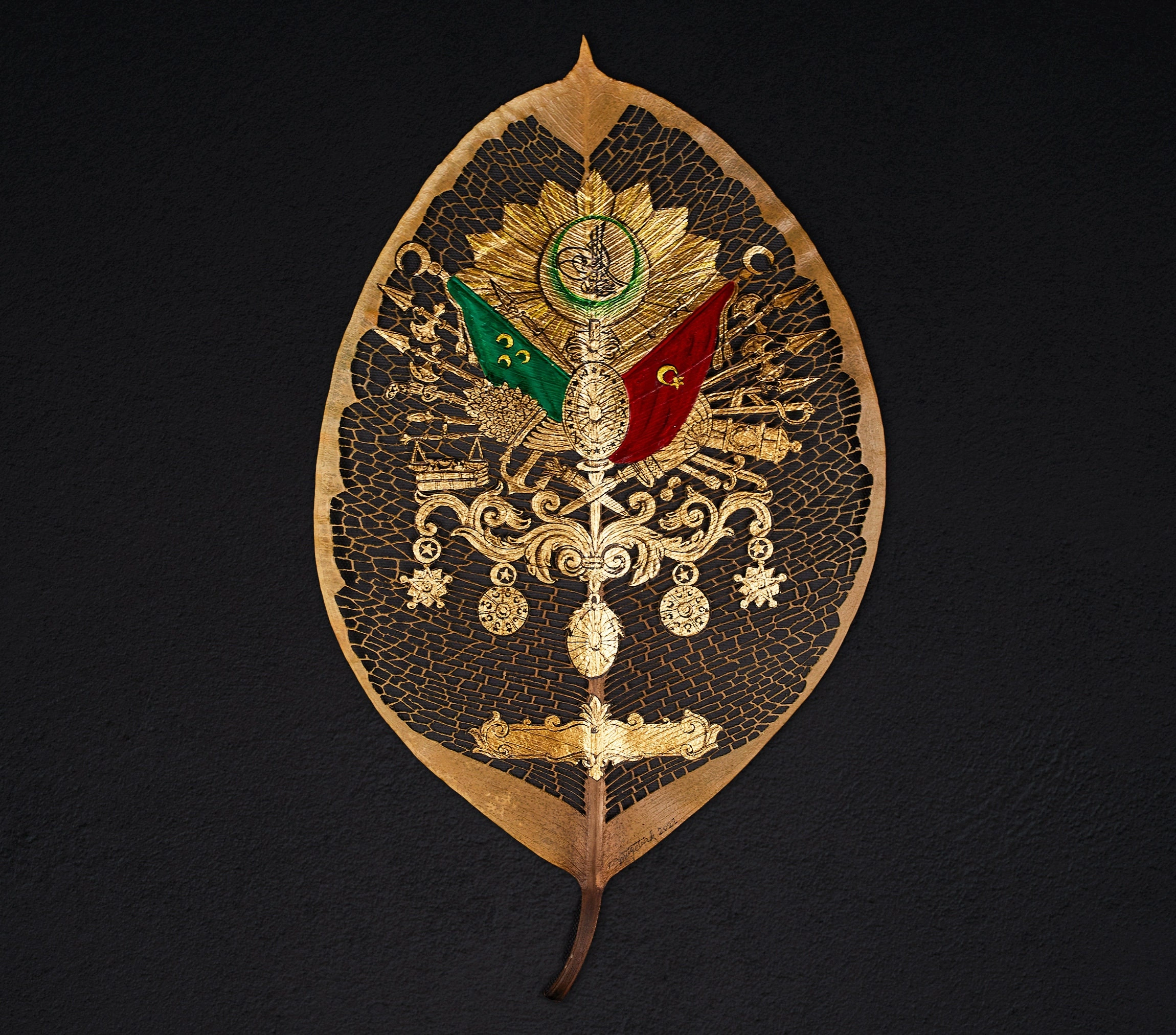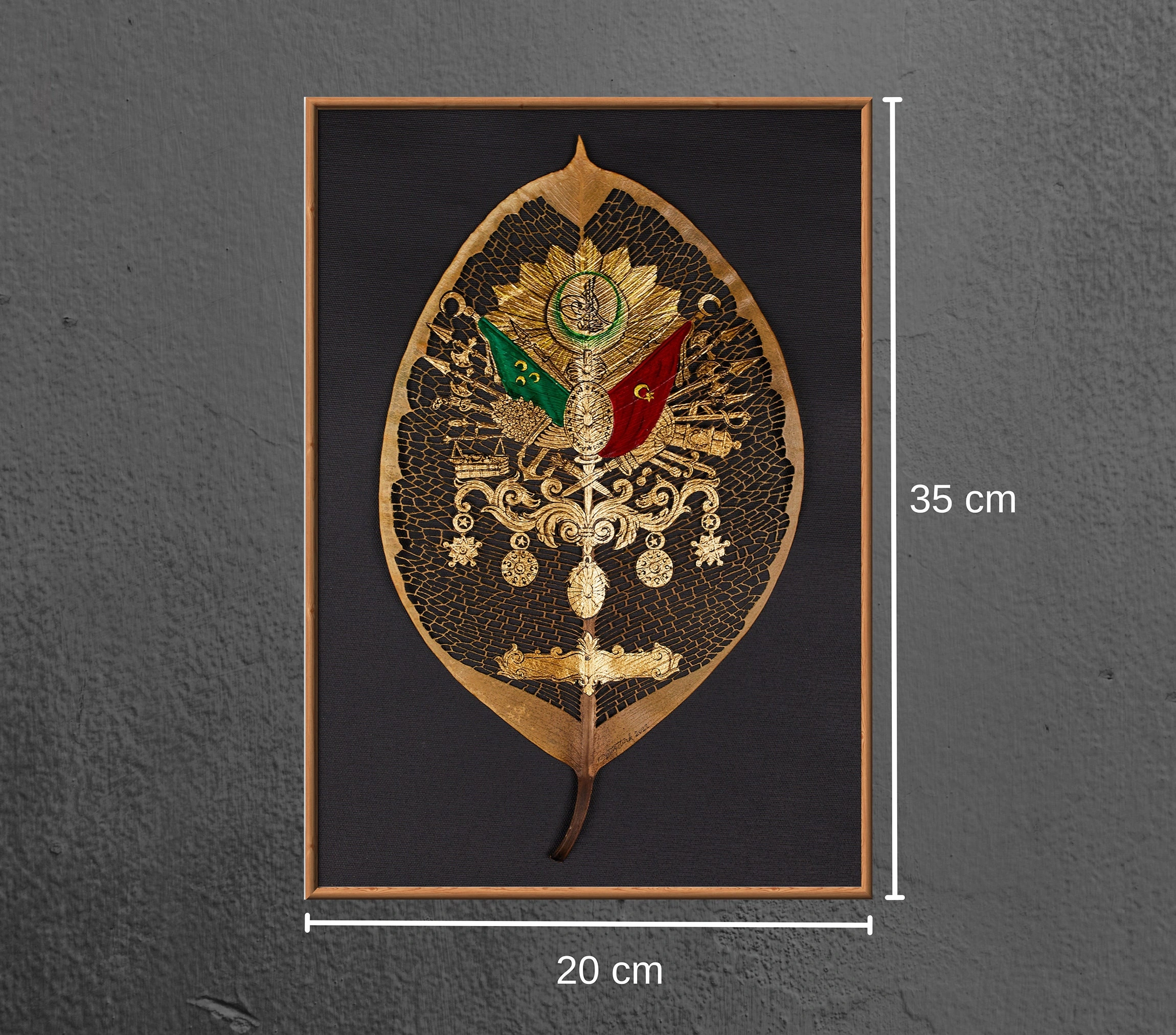 Osmanlı Tuğrası Altın Varaklı Yaprak Sanatı 20x35 cm