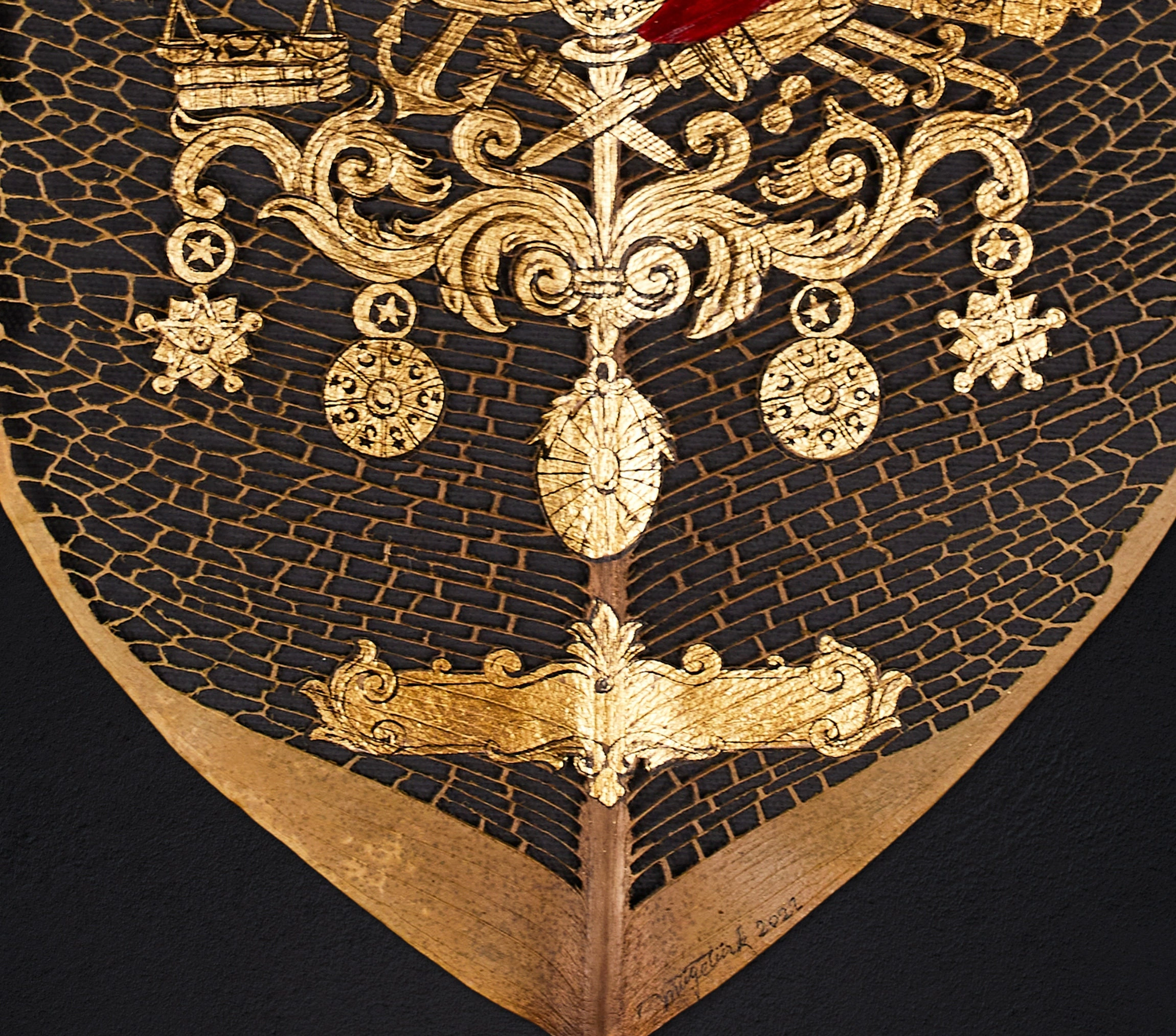 • Organik kauçuk ağacı yaprağı, akrilik boya ve altın varak