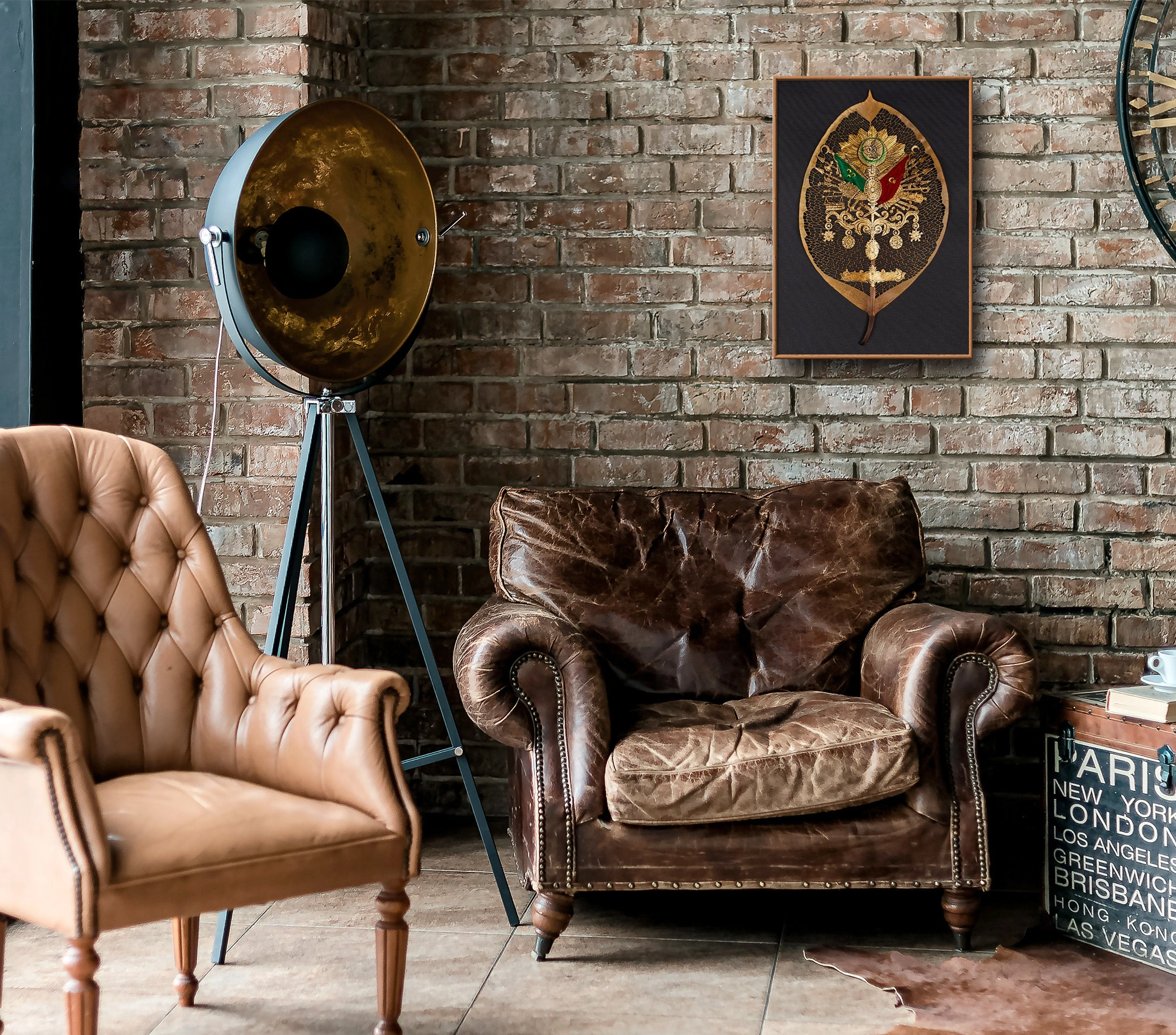 Altın varak süslemeli Osmanlı Tuğrası motifinin ön planda olduğu yaprak sanatı, her eve ilahi ve benzersiz hisler eklemek için mükemmel seçimdir. Özenle ve detaylara dikkat edilerek oluşturulan bu Osmanlı Mührü yaprak sanatı, her tür dekorasyon teması için şık bir seçimdir. Tarih meraklısı bir yakınınıza rahatlıkla hediye edebileceğiniz eser, her alana özel bir dokunuş katacak muhteşem bir tasarıma sahiptir. Göz alıcı tasarımıyla bu modern dekoratif duvar sanatı, oturma odanızın veya mutfağınızın öne çıkan parçası olacak. Canlı ve kişilik dolu bu Osmanlı Tuğrası ev dekorasyonu, kendine özgü tarzı ve tasarımıyla her türlü sanat koleksiyonuna güzel bir eklenti olacak. Dikkat çekici tasarımıyla bu yaprak sanatı kesinlikle bir sohbet başlatıcı olacak. Güçlü bir mesaj taşıyan bu eser ile tarihinize olan bağlılığı gösterin.