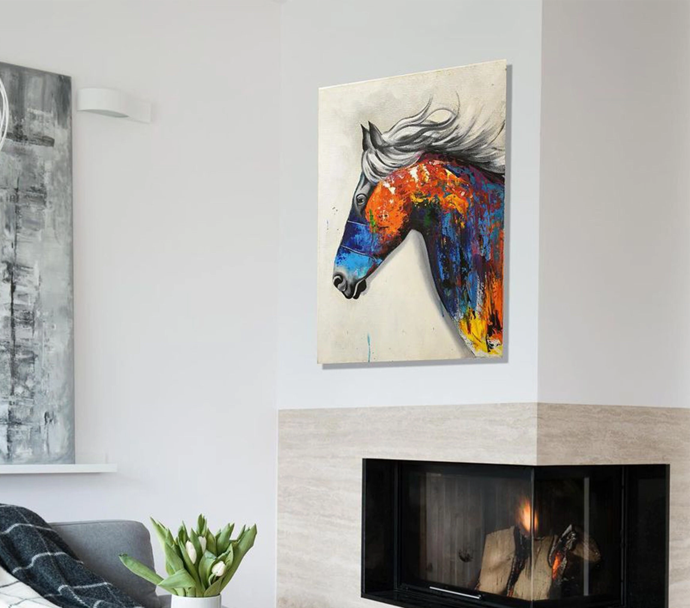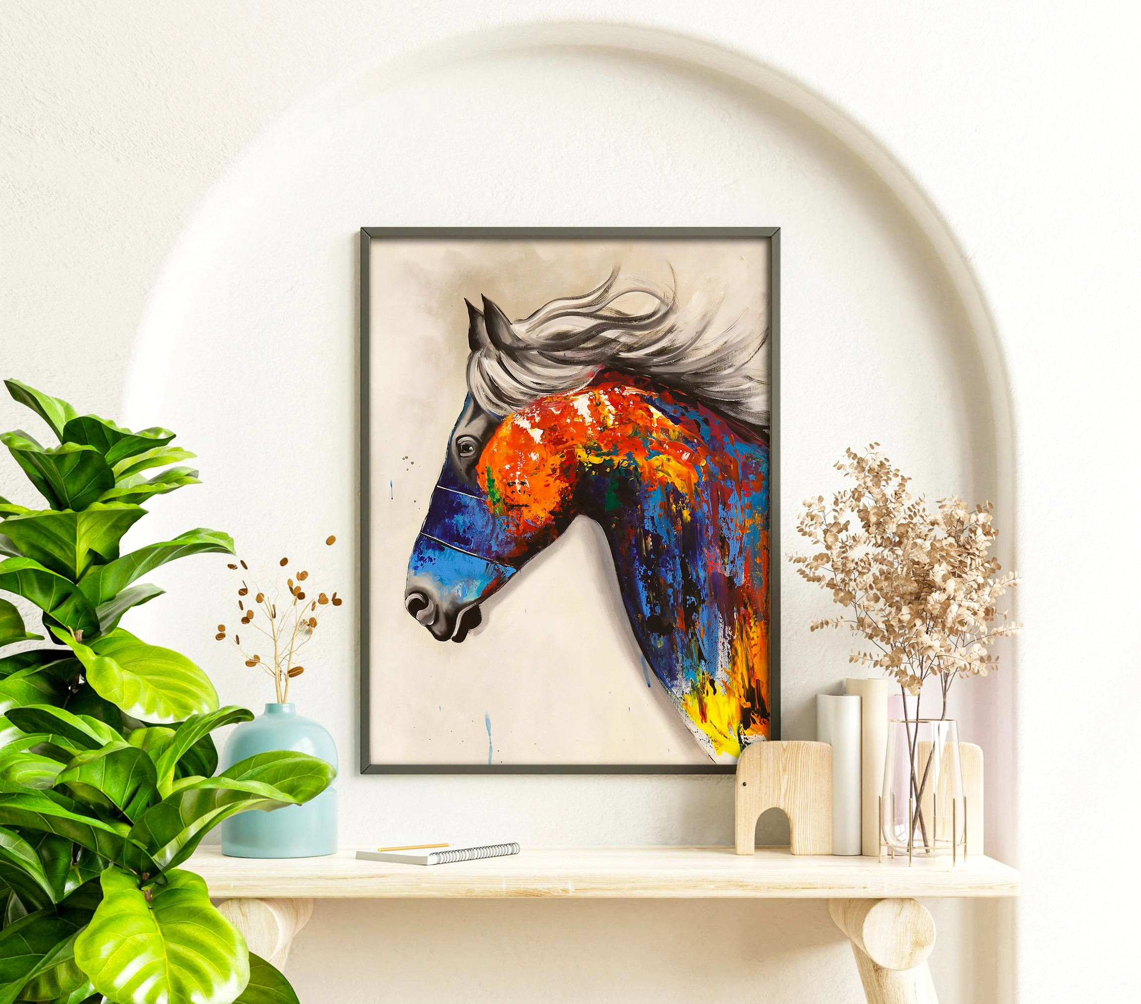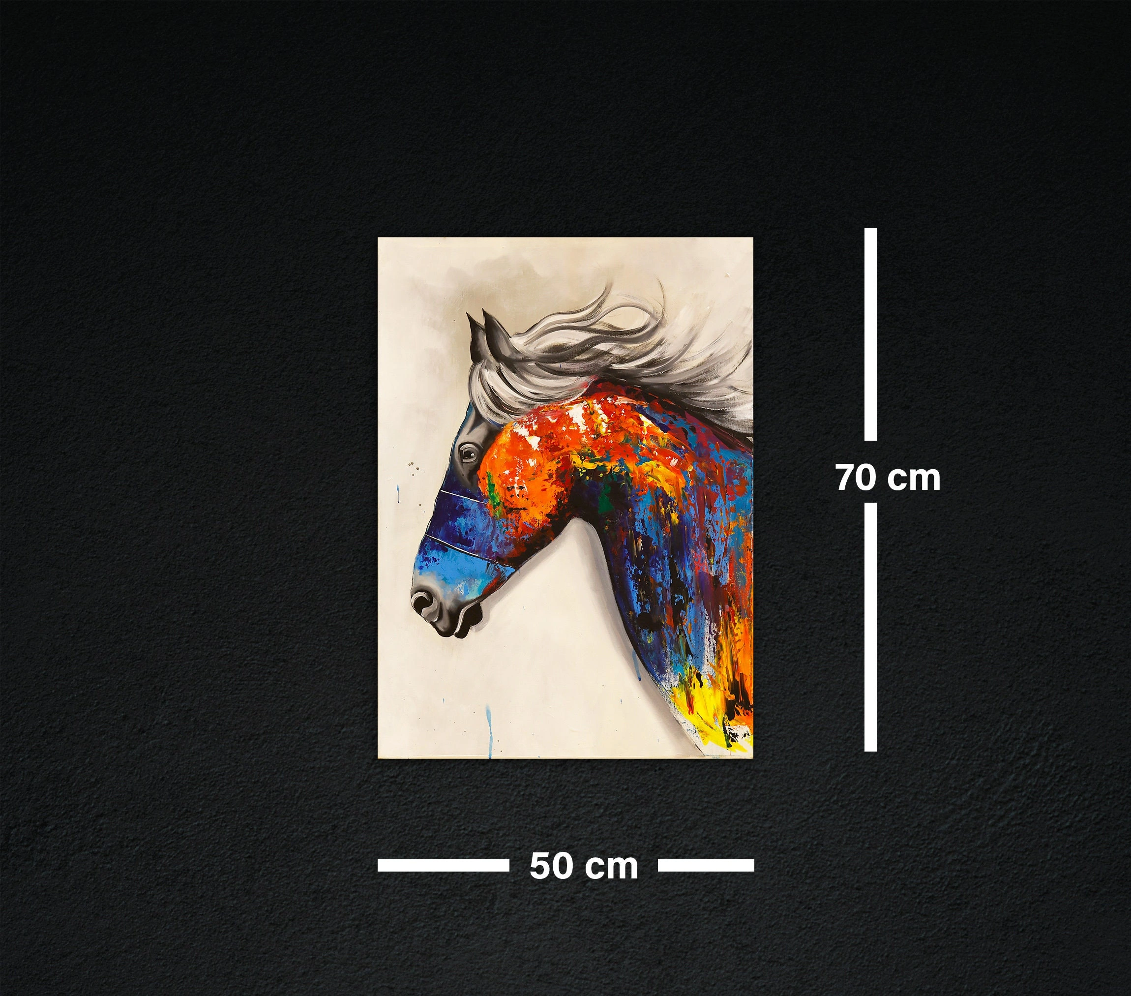 Renkli At Yağlı Boya Kanvas Tablo 50x70 cm