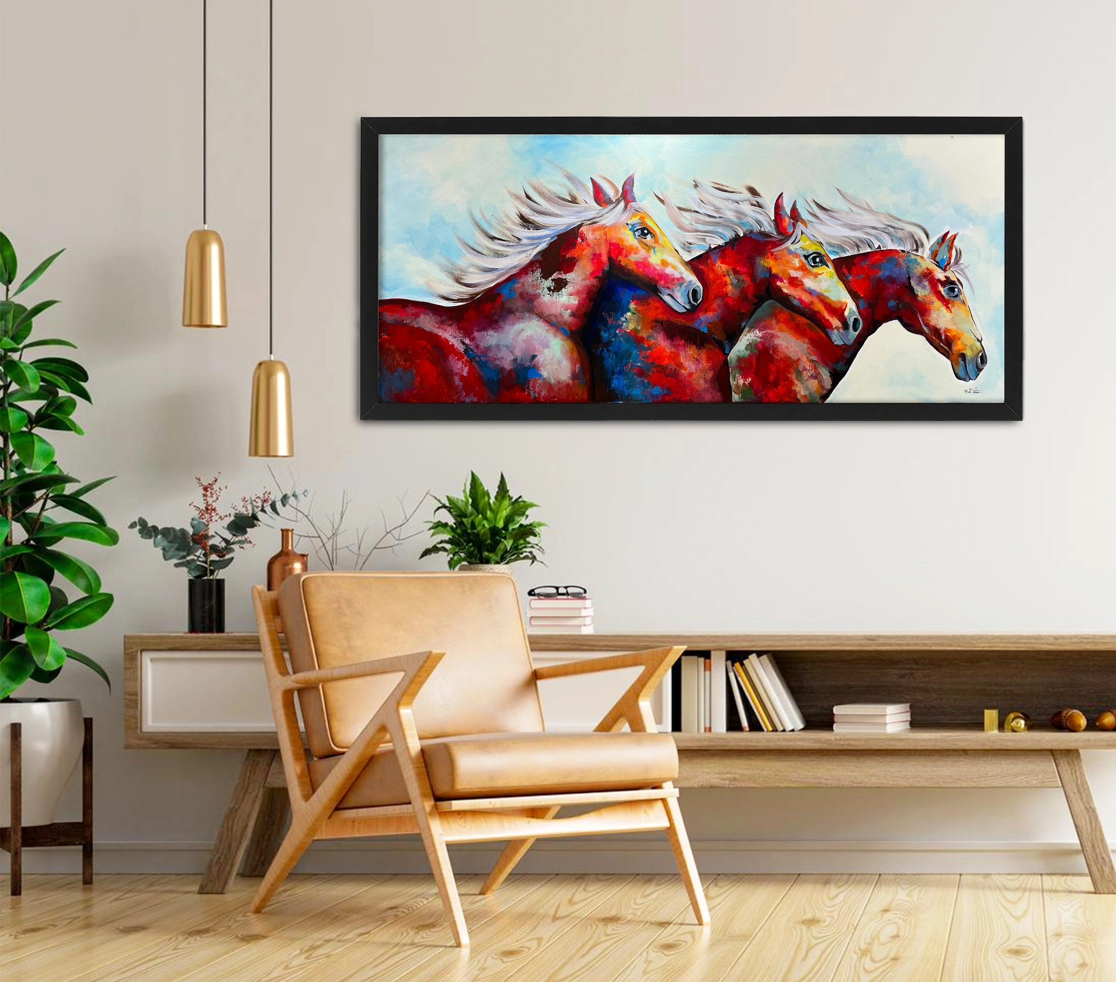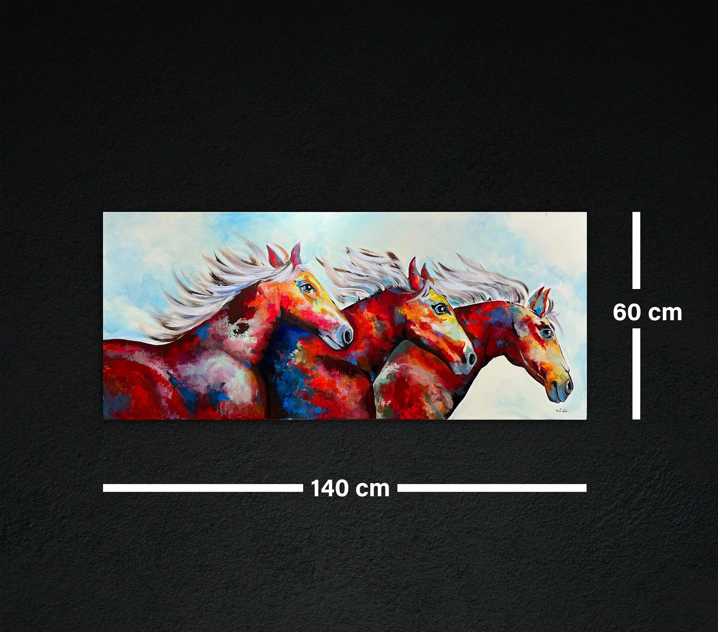 Renkli Atlar Yağlı Boya Tablo 60x140 cm