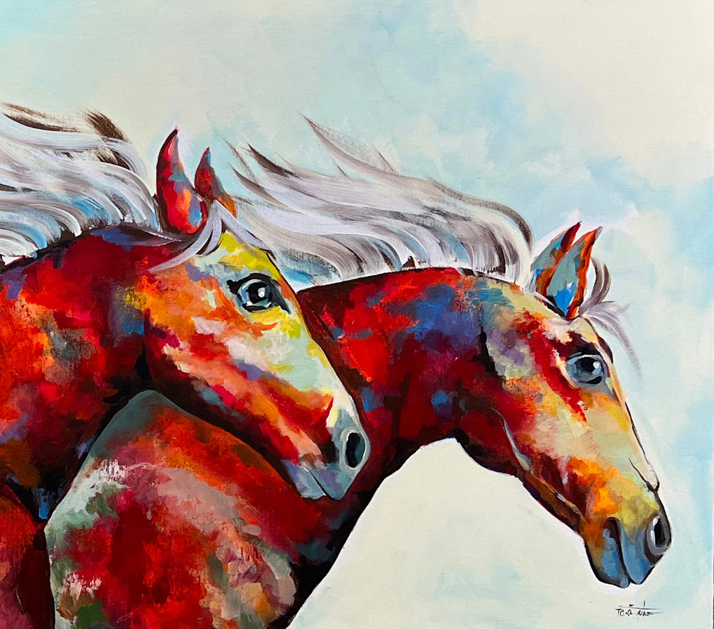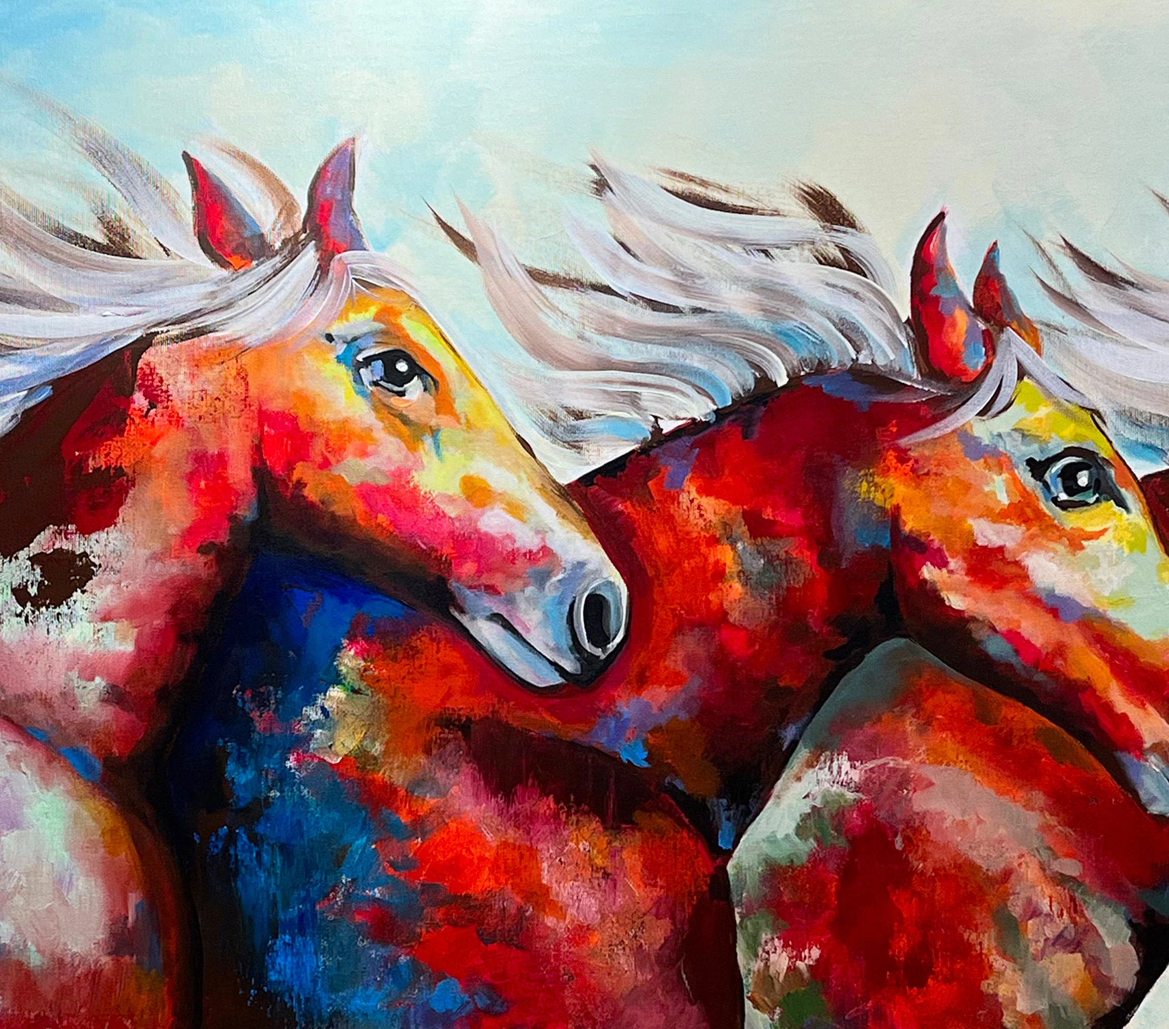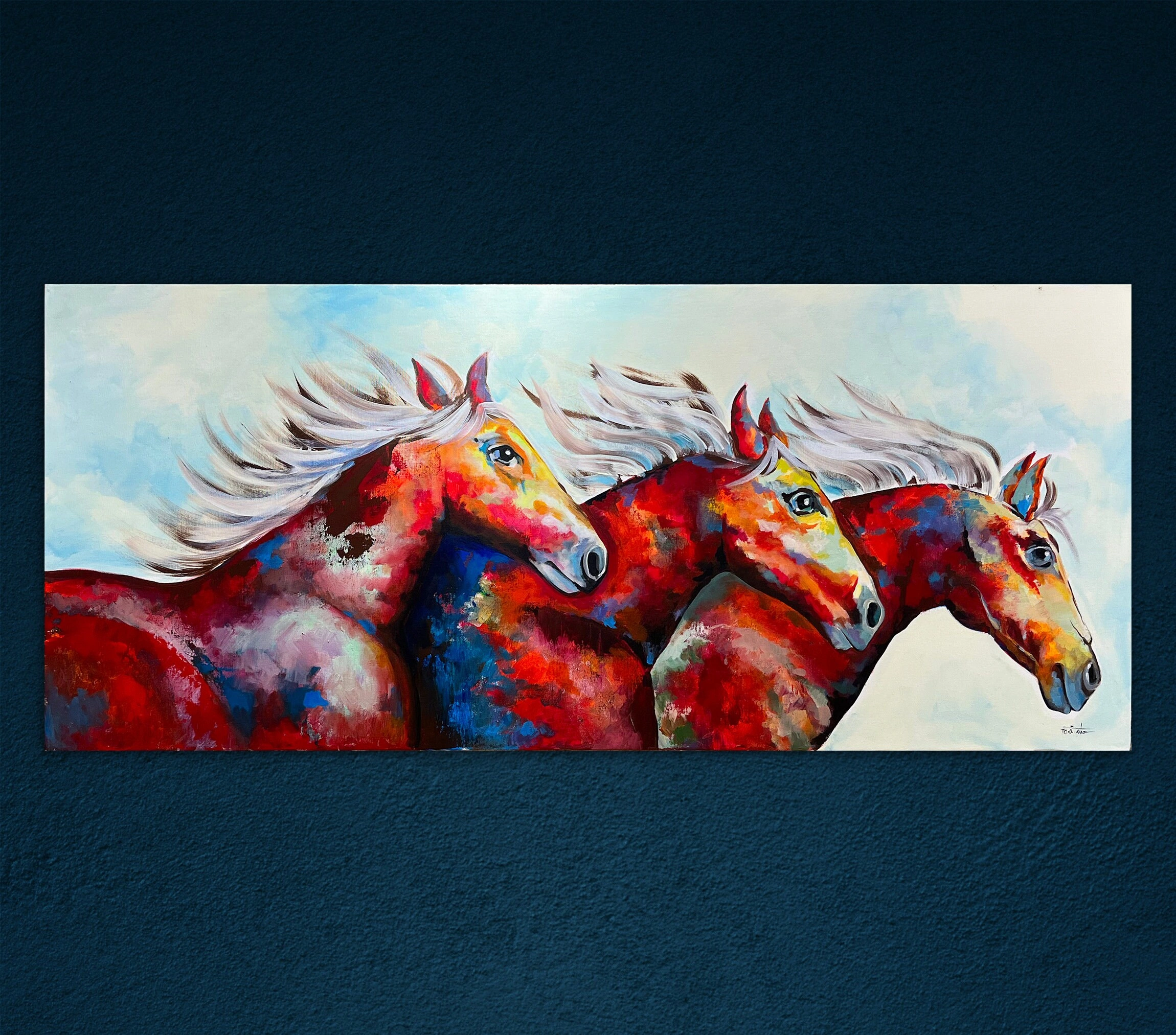 Rengarenk koşan atların resmedildiği bu tuval sanatı, ev ve ofis dekorasyon temalarınızın mükemmel bir tamamlayıcısıdır. Yağlıboya atlı tablosu, beyaz, mavi ve kırmızı renklerde vahşi doğada çılgınca koşan bir at sürüsünü tasvir ederken özgür bir duygu uyandırır. Bu kanvas tabloda yer alan renkli atlar, her duvara göz alıcı bir katkı sağlar. İster oturma odasında, ister yatak odasında veya ofisteki boş bir duvara asın, bu at tablosu enerjiyi yükseltir. Atların koşarken detayları ve dinamiği dört nala koşan üç at gibi bu resme de enerjik bir hareket katıyor. Atların gücünü, özgürlüğünü ve güzelliğini temsil eden mükemmel bir sanat eseridir. Koşan atlar kanvas tablosu, her at sever için en büyük hediyedir. Bu renkli tablo, hayvanların cesaretini ve güzelliğini yansıtırken, canlı renkleri her odaya karakter katacak. Bu el yapımı orjinal at tablosunun, her alanın görünümünü iyileştirmesi garantidir. Bu renkli at resmi kanvas tabloyla maceranın heyecanını ve ruhunu yaşayın.