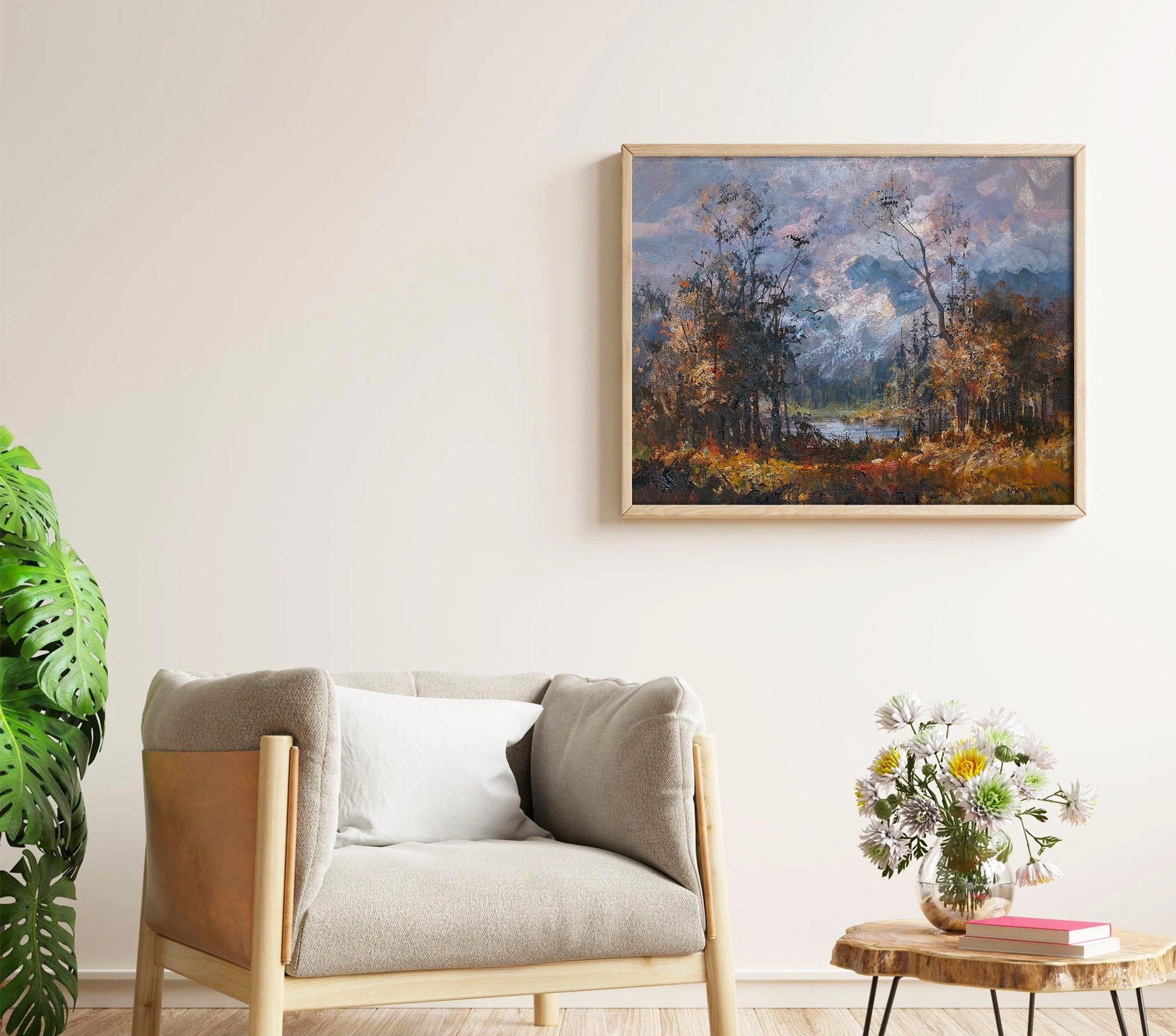 • Sonbahar Orman Manzarası Tuval Üzeri Yağlıboya Pastoral Kanvas Tablo Orman Resmi Peyzaj Tablo Doğa Manzarası Natürmort Tablo Doğaseverler İçin Ev Hediyesi