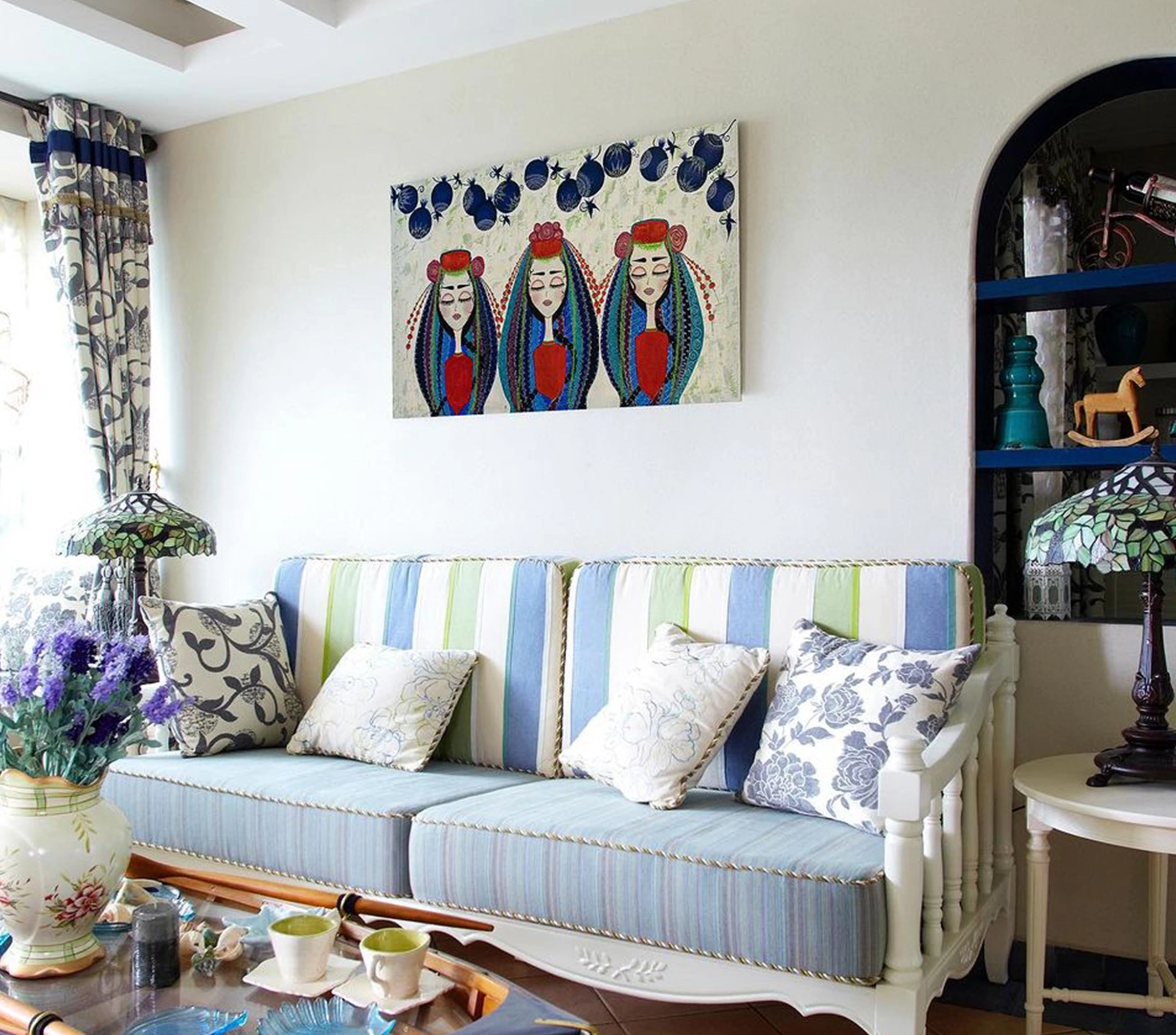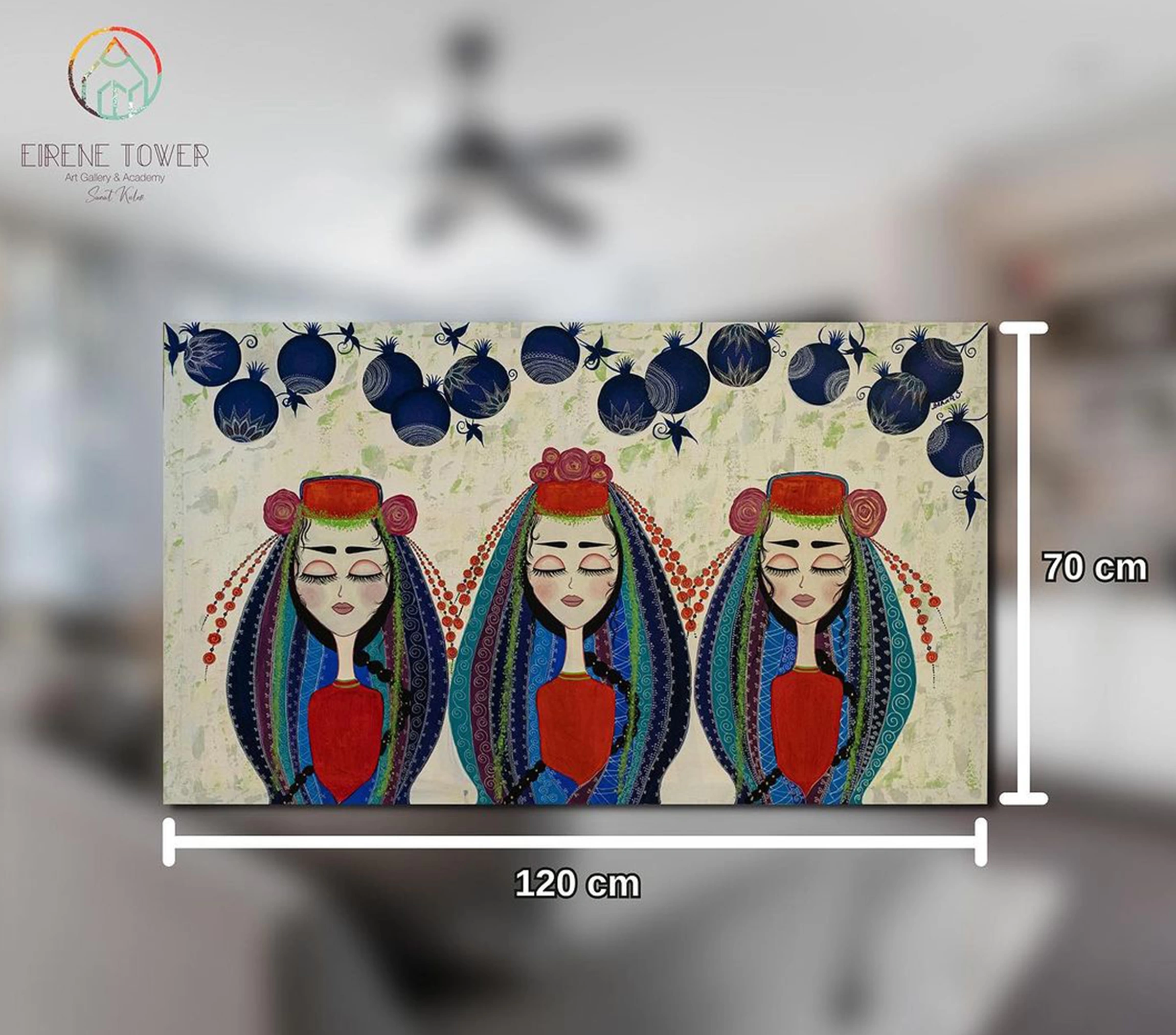 Tuval üzerinde üç yörük kadını figürünün resmedildiği etnik kanvas tablo, alışılmadık tasarımı ve canlı renkleriyle her duvara modern bir dokunuş getirecek. Ev ya da ofis dekorasyonunuzun unsurlarıyla uyumlu olacak bu etnik ev dekoru ambiyansınızda şıklık ararken aynı zamanda da ona biraz heyecan katmanın harika yoludur.