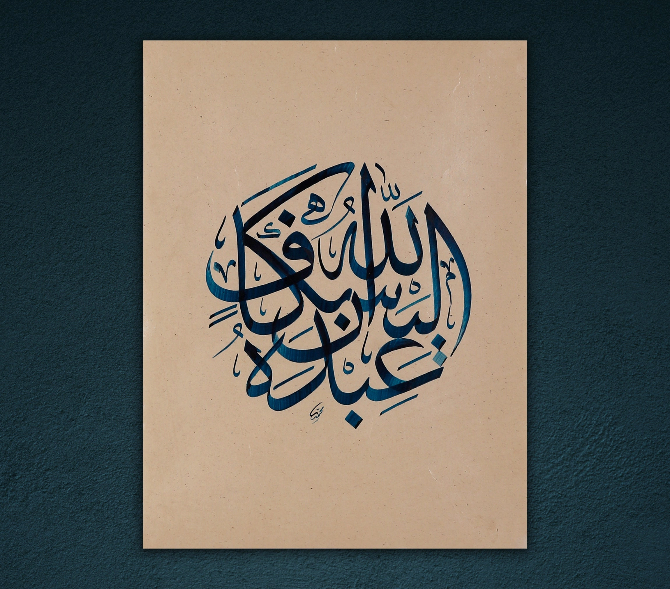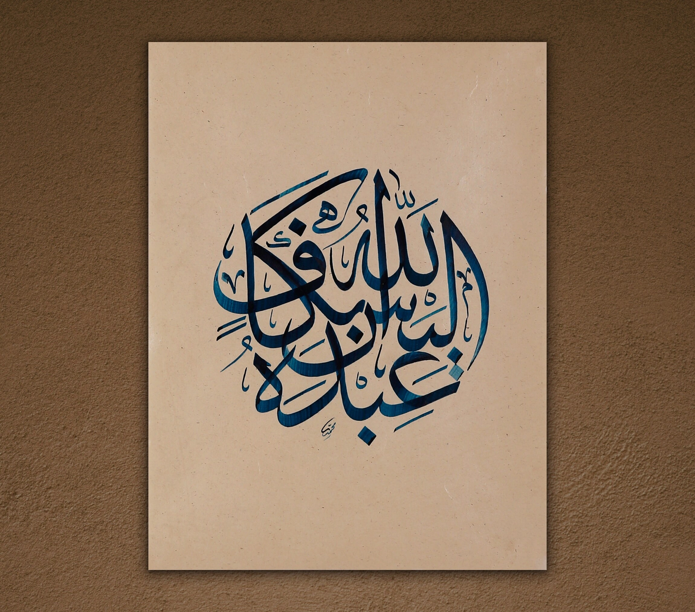 • Zumer Ayeti İslami Kaligrafi Hat Tablo Doğal Kağıt Üzerine Mavi Akrilik El Yazması Zumer Ayeti Arapça Hat Mavi Duvar Dekoru