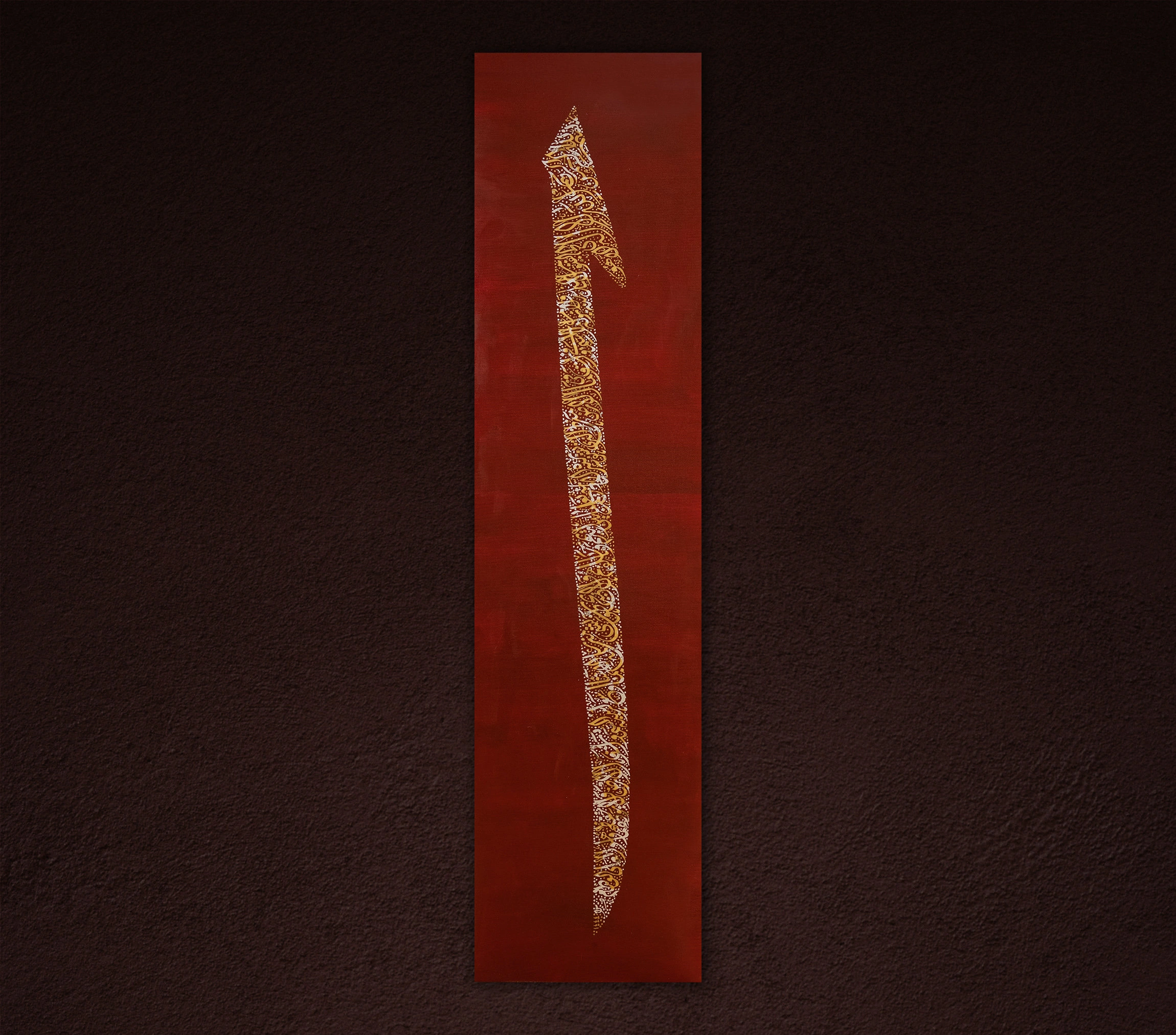 Elif Ayetel Kursi Kırmızı Kanvas Tablo 49x200 cm