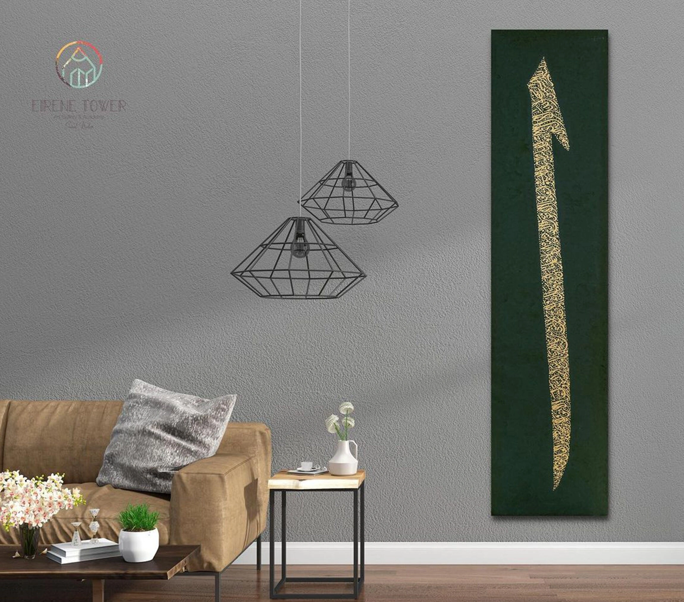 This wall art represents a great source of comfort and strength. Arabic sword calligraphy emphasizes its beautiful shape and adds a modern touch to the classic design, also known as the verse of the throne. It has a great spiritual message that will bring you closer to devotion every day.