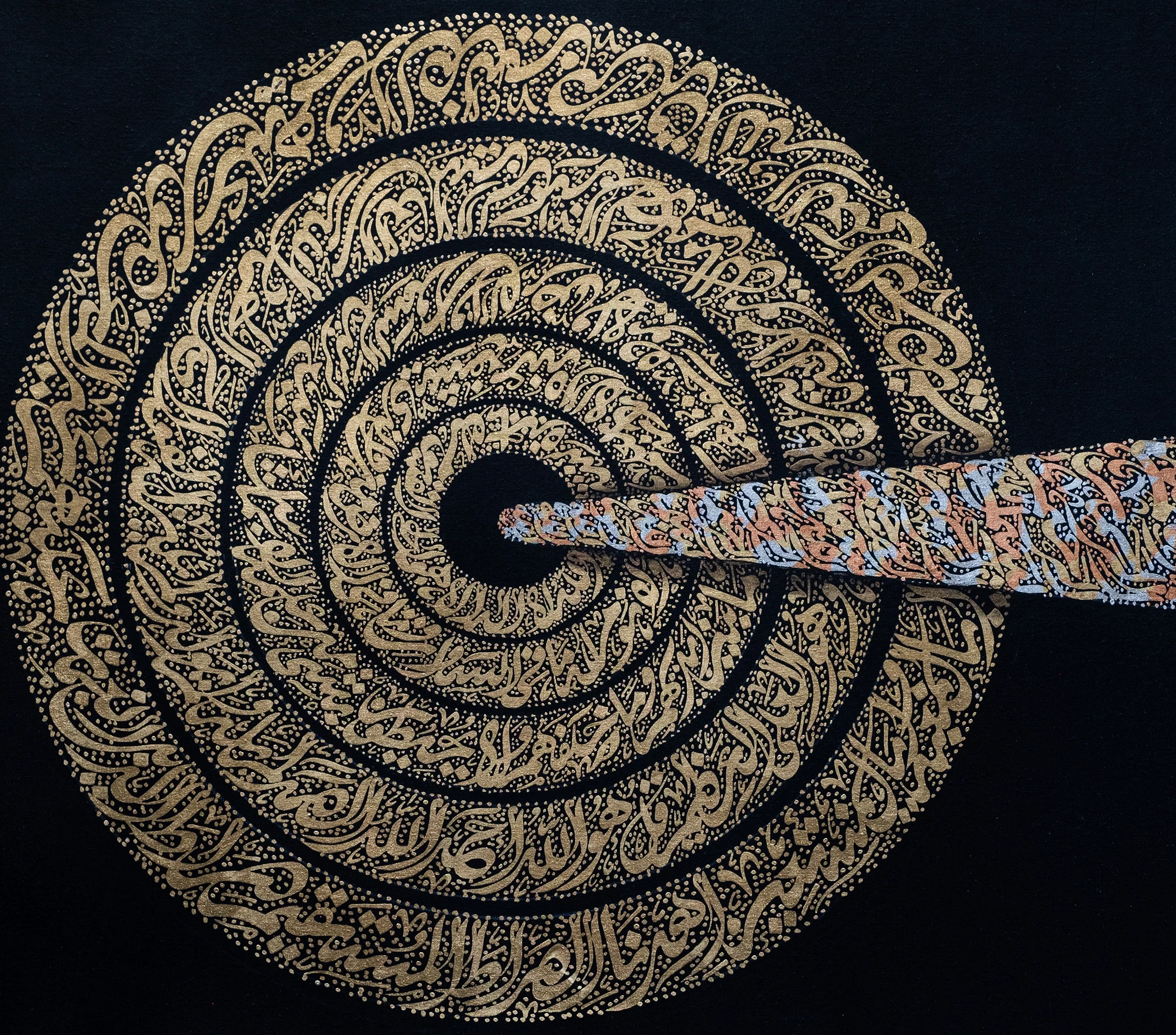 - Acrylics and gold leaf on canvas