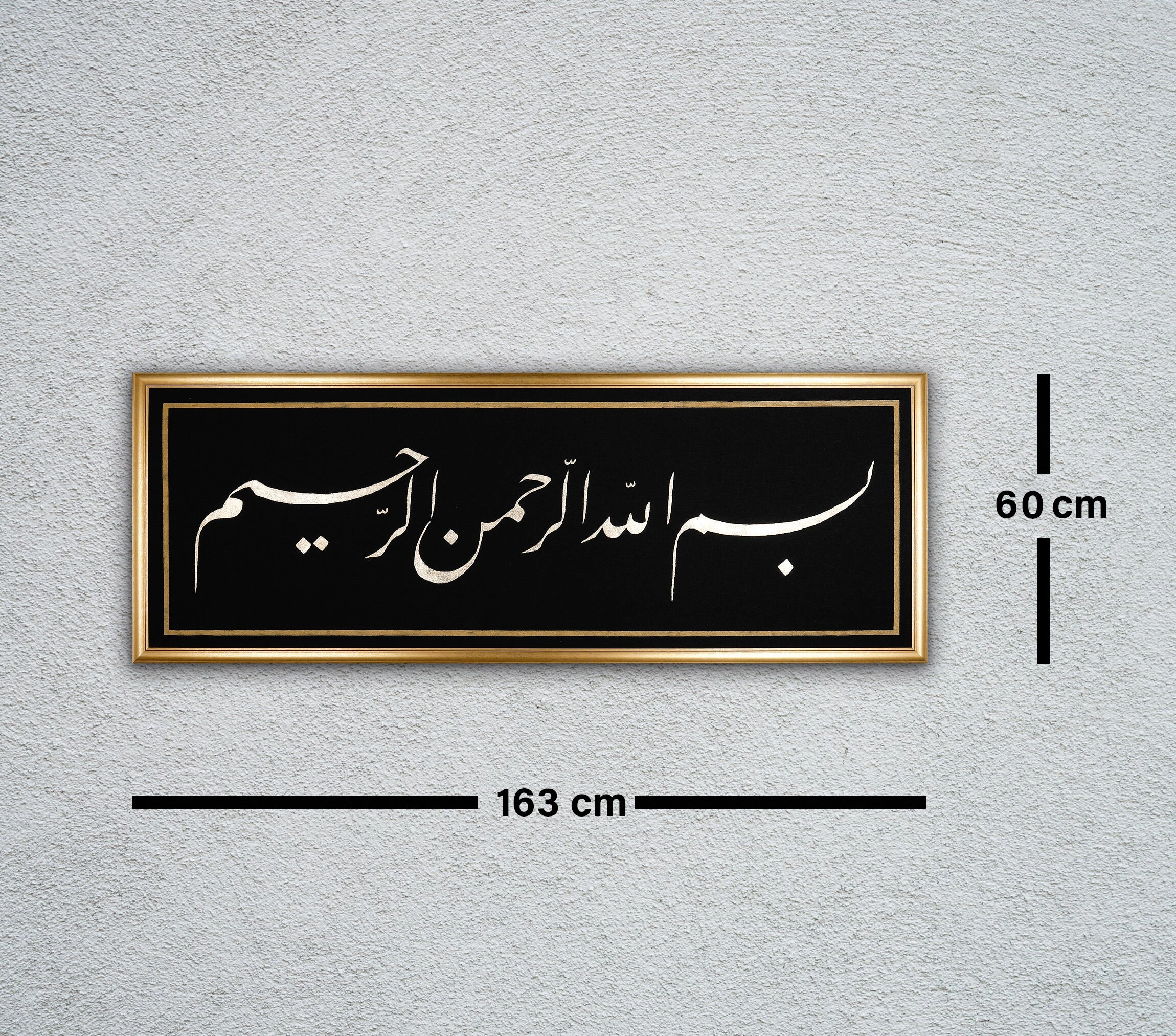 Besmele El Yazması Siyah Kanvas Tablo 60x163 cm