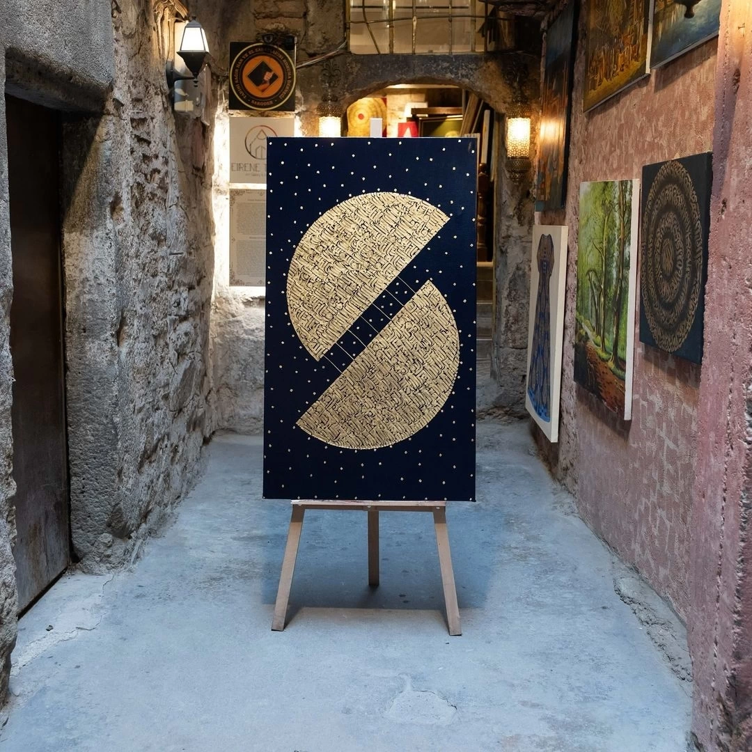 Sanat eserimiz orijinal kaligrafi ve modern sanatın birleşimiyle tuval üzerine akrilik boya ve altın varak ile yazılmıştır. Eserimiz iki yarım dairede yazdığımız Felak ve Nas sureleri ve aradaki bağı zor zamanlarda Allah ile kul arasındaki bağ tasarımıyla çalıştık. Daireler arasındaki boşluk muhtaç olma durumunu, bağlar ise dua ve sığınma yoluyla Allah ile olan bağımızı simgeler.