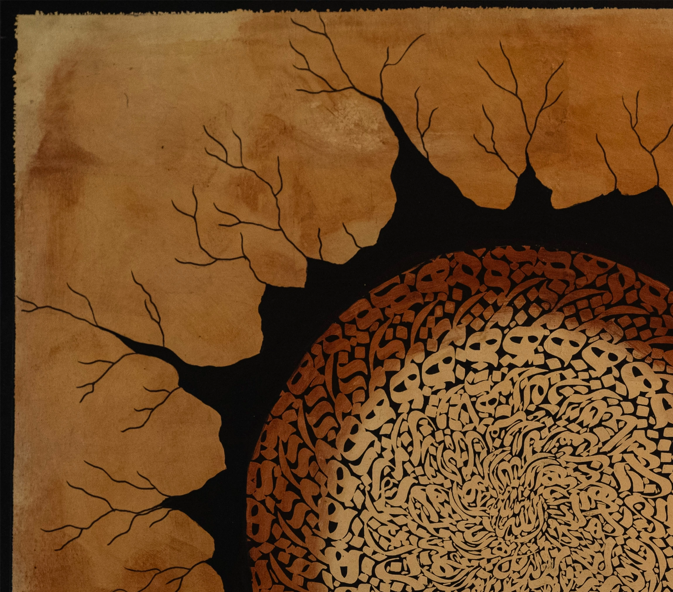 The Hu canvas art will bring a special touch of elegance to your home. Its unique and abstract golden calligraphy evokes a sense of peace and tranquility, making it an ideal choice for any Islamic home decor. The combination of golden hues against the dark background gives this wall art a truly magical feel, allowing it to perfectly blend into any decoration style. Whether you choose to show it off in your living room or hang it in your bedroom, its timeless design will give your home a shining look.