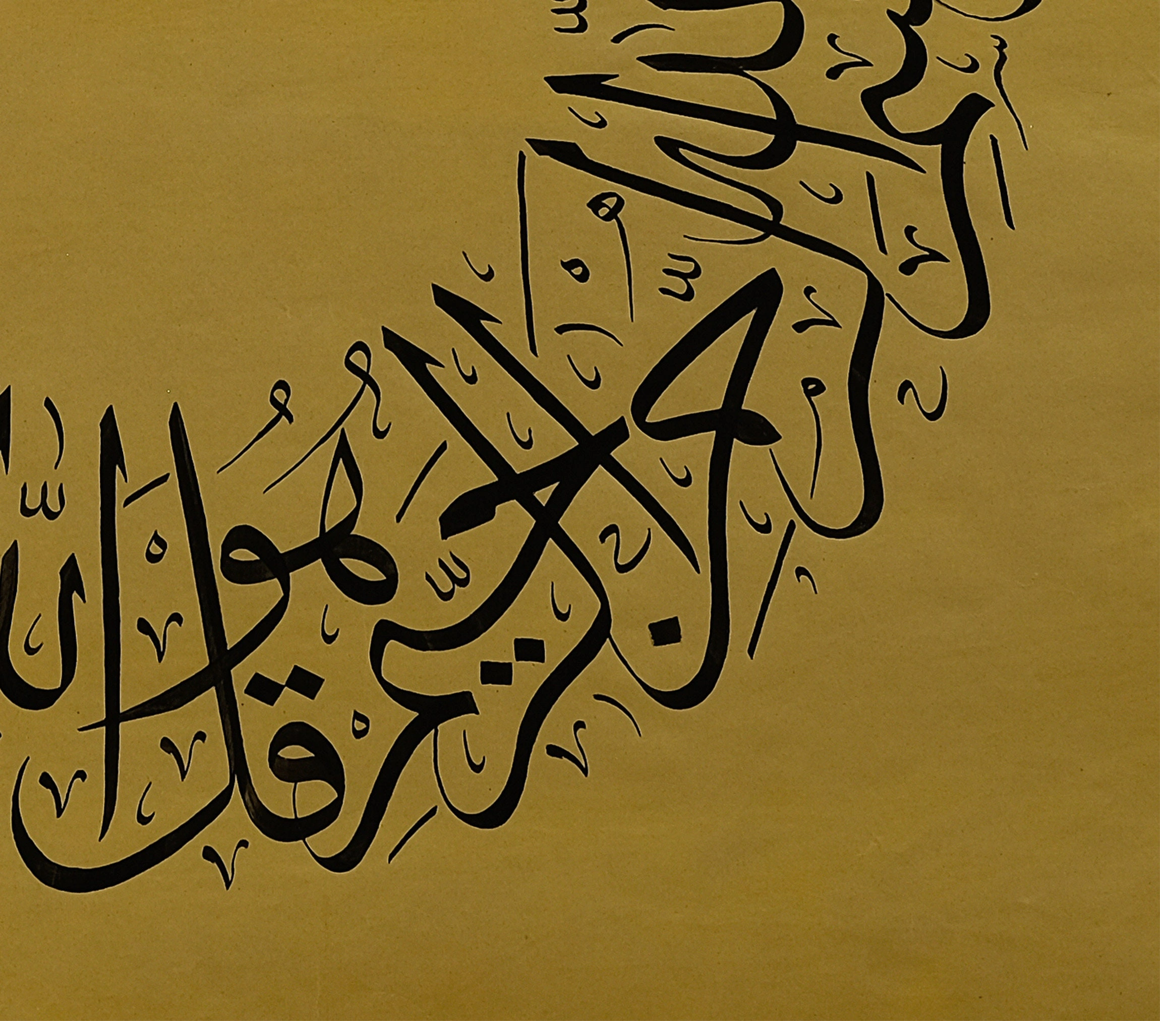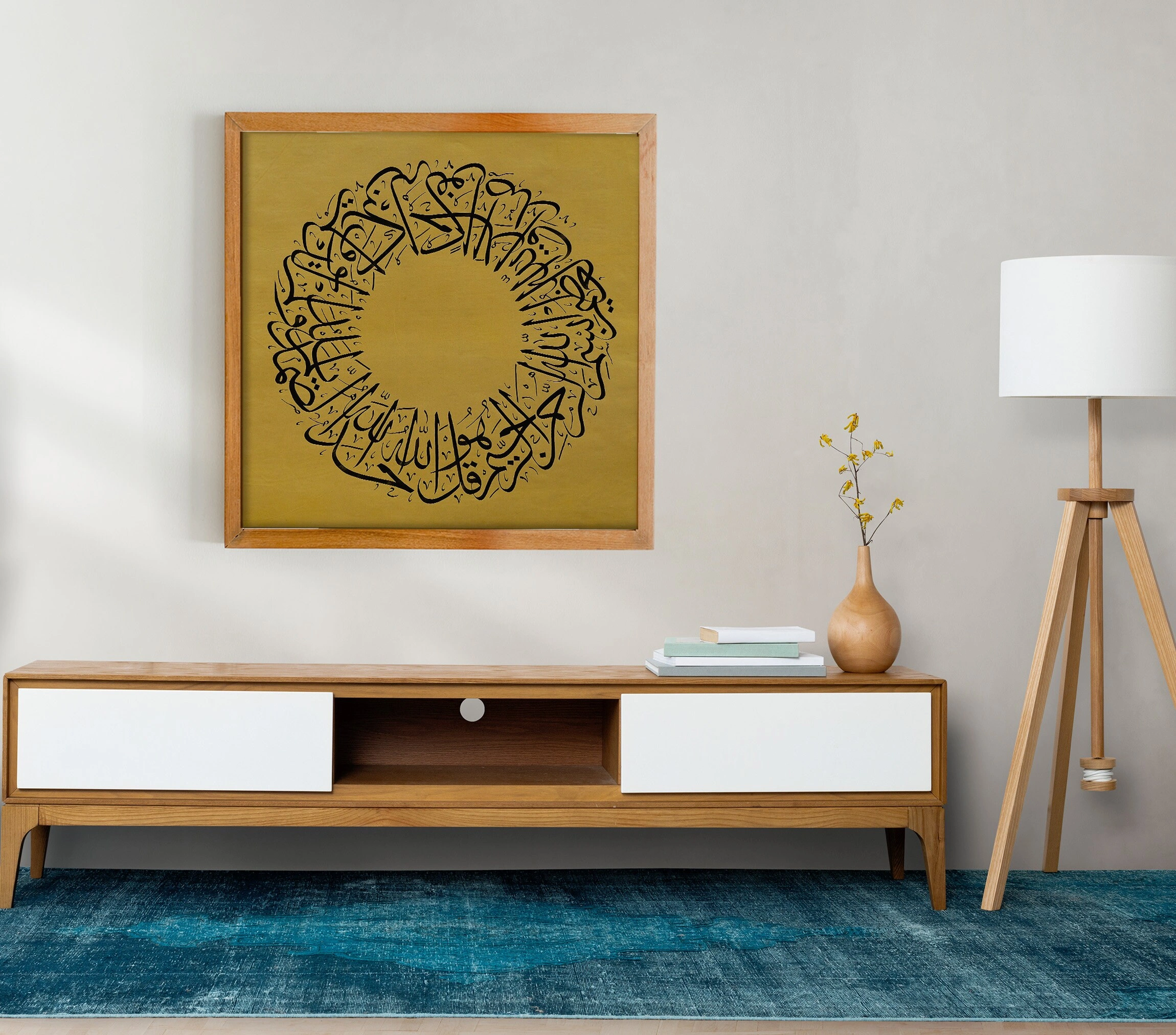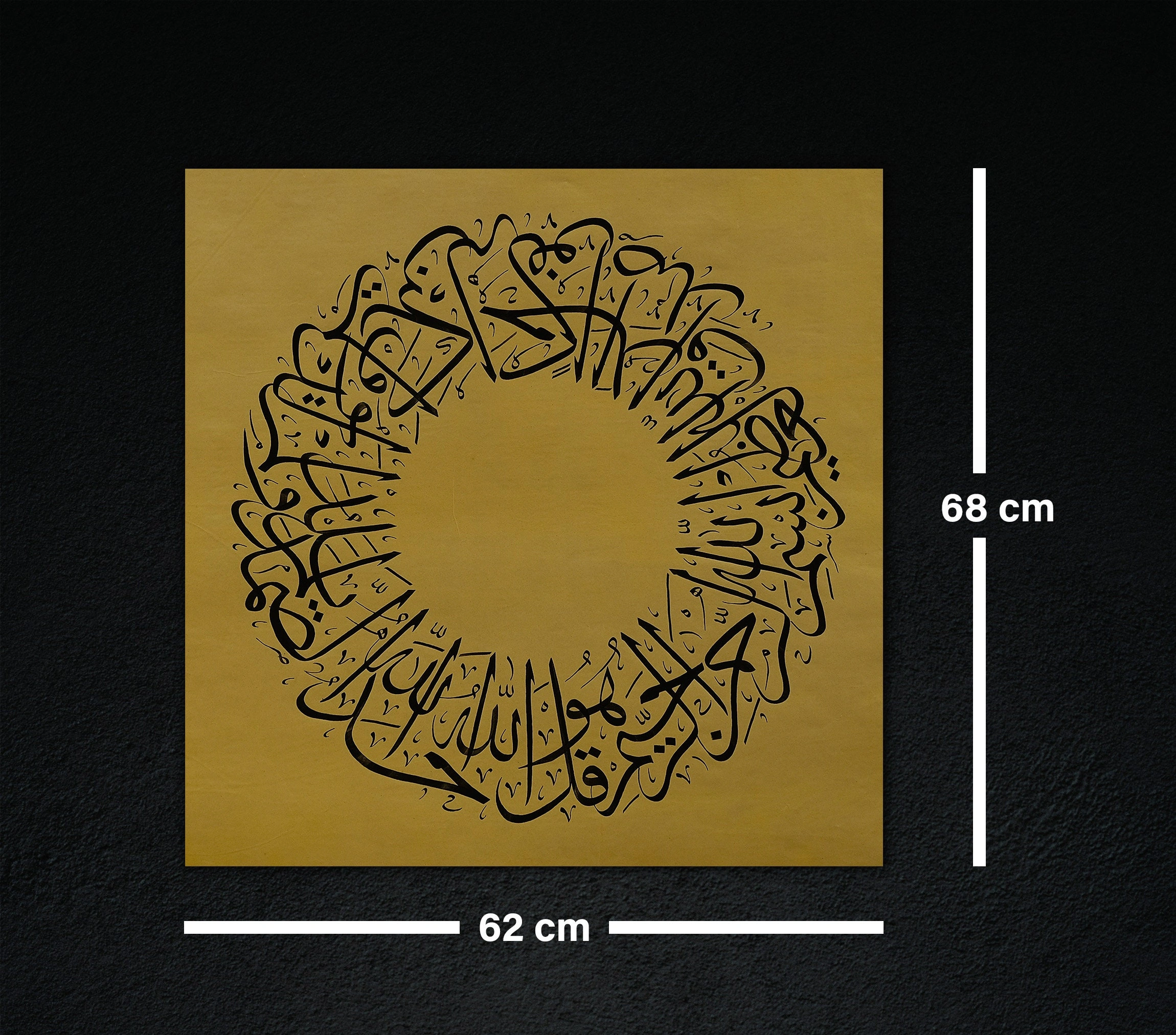 Doğal ince kağıt üzerine is mürekkebiyle yazılmış İhlas Suresi klasik Arapça kaligrafi sanatı, her ev dekorasyonuna inanç ve güzellik dokunuşu getirmenin mükemmel bir yoludur. Bu İslami hat sanatı benzersiz olup her ortamda bir sohbet başlatıcı olacaktır. İnancını ifade etmek isteyen herkes için bu İhlas Suresi Hat Sanatı harika seçim olacaktır. Yumuşak ve çarpıcı renkler, yaşam alanınıza sıcak ve davetkar bir görünüm katmak için tasarlandı. Oturma odasında ya da ofiste sergilenmiş olsun, bu İhlas Suresi klasik kaligrafi, her ortama güzellik, zarafet ve inanç getirecektir. Kendinize verebileceğiniz veya sevdiğiniz birine hediye edebileceğiniz türden bir hediyedir. Zamansız çekiciliği ile İhlas Suresi kaligrafisi, evine huzur ve güzellik getirmek isteyen herkesin sahip olması gereken bir eserdir.