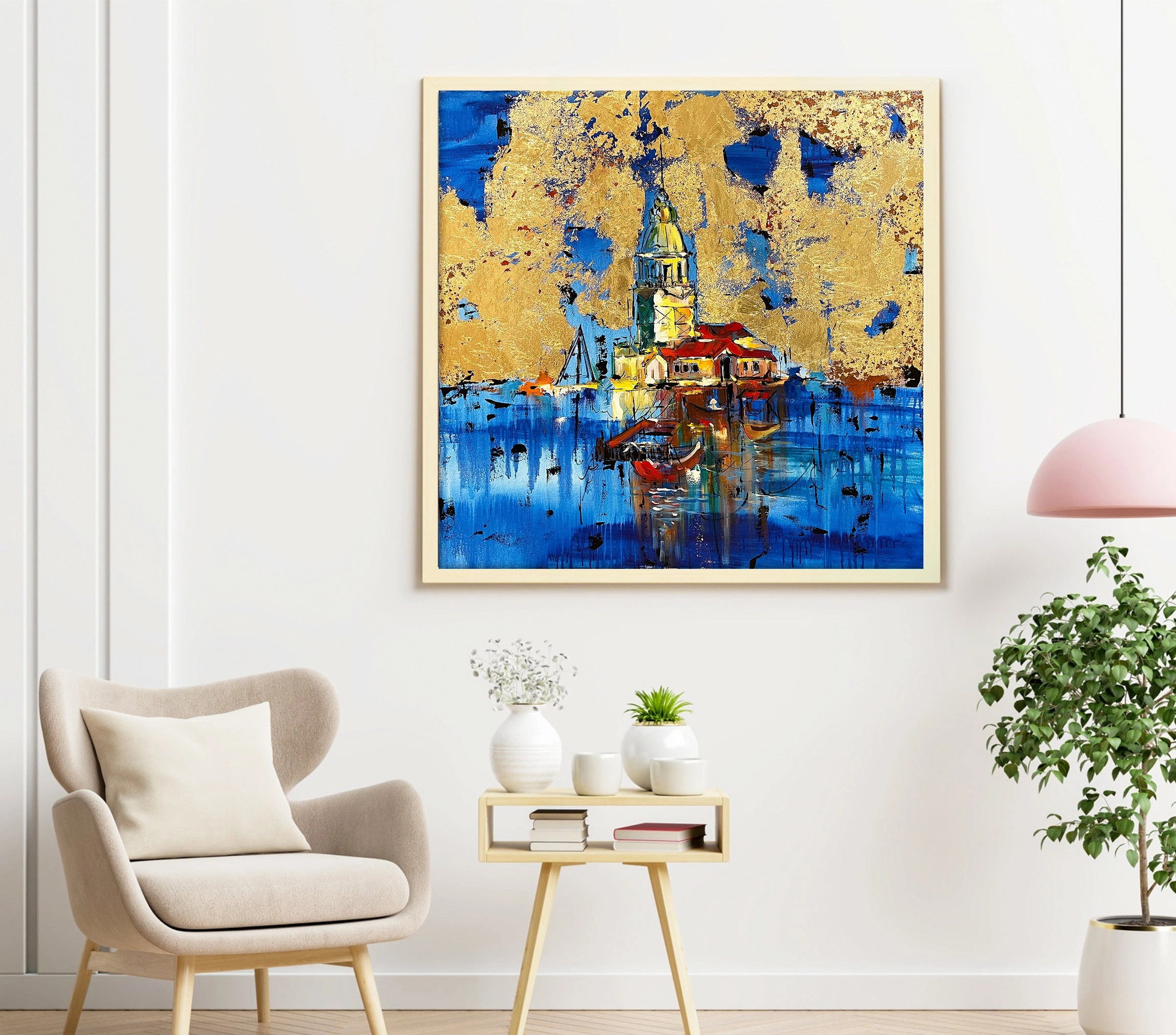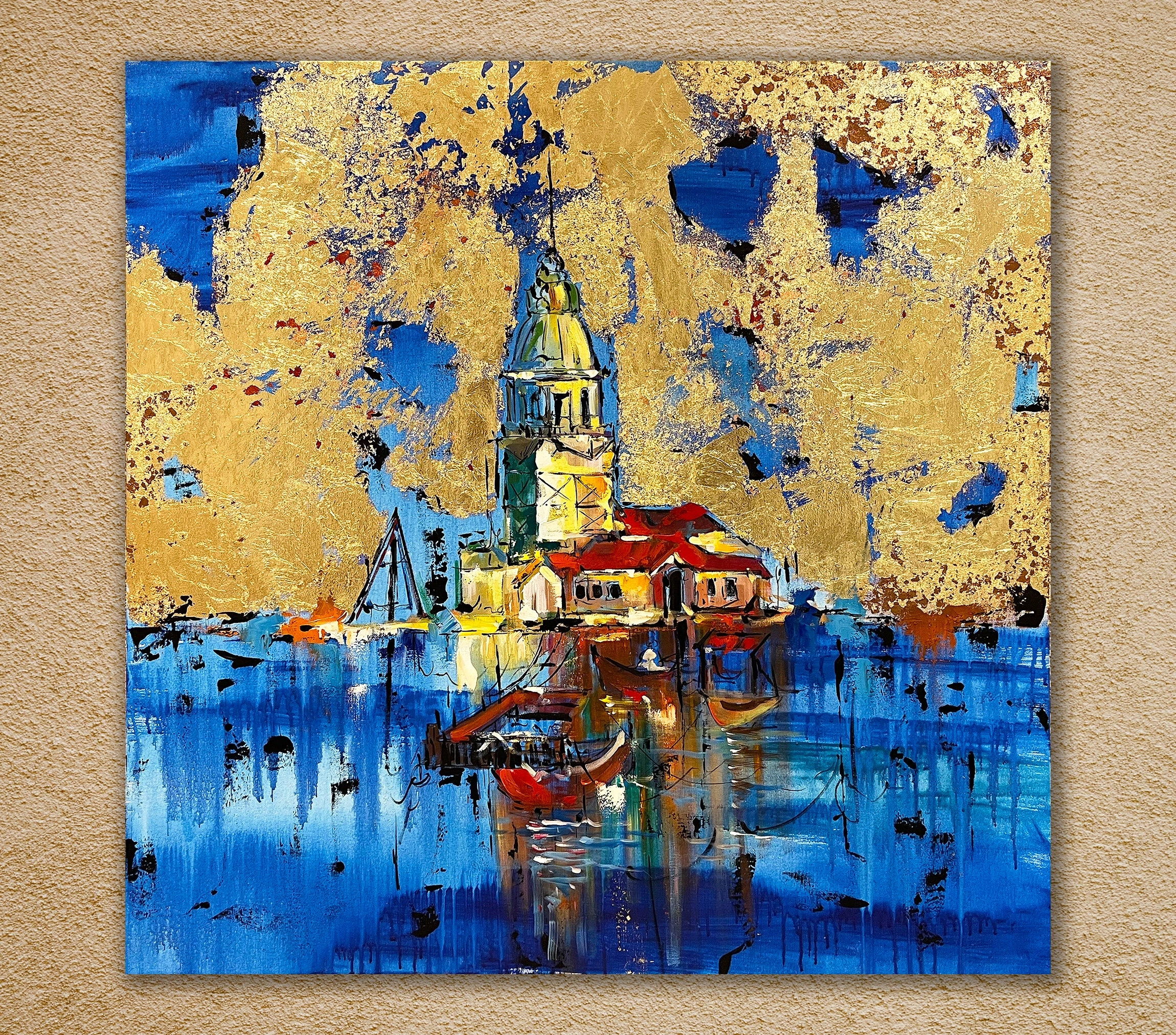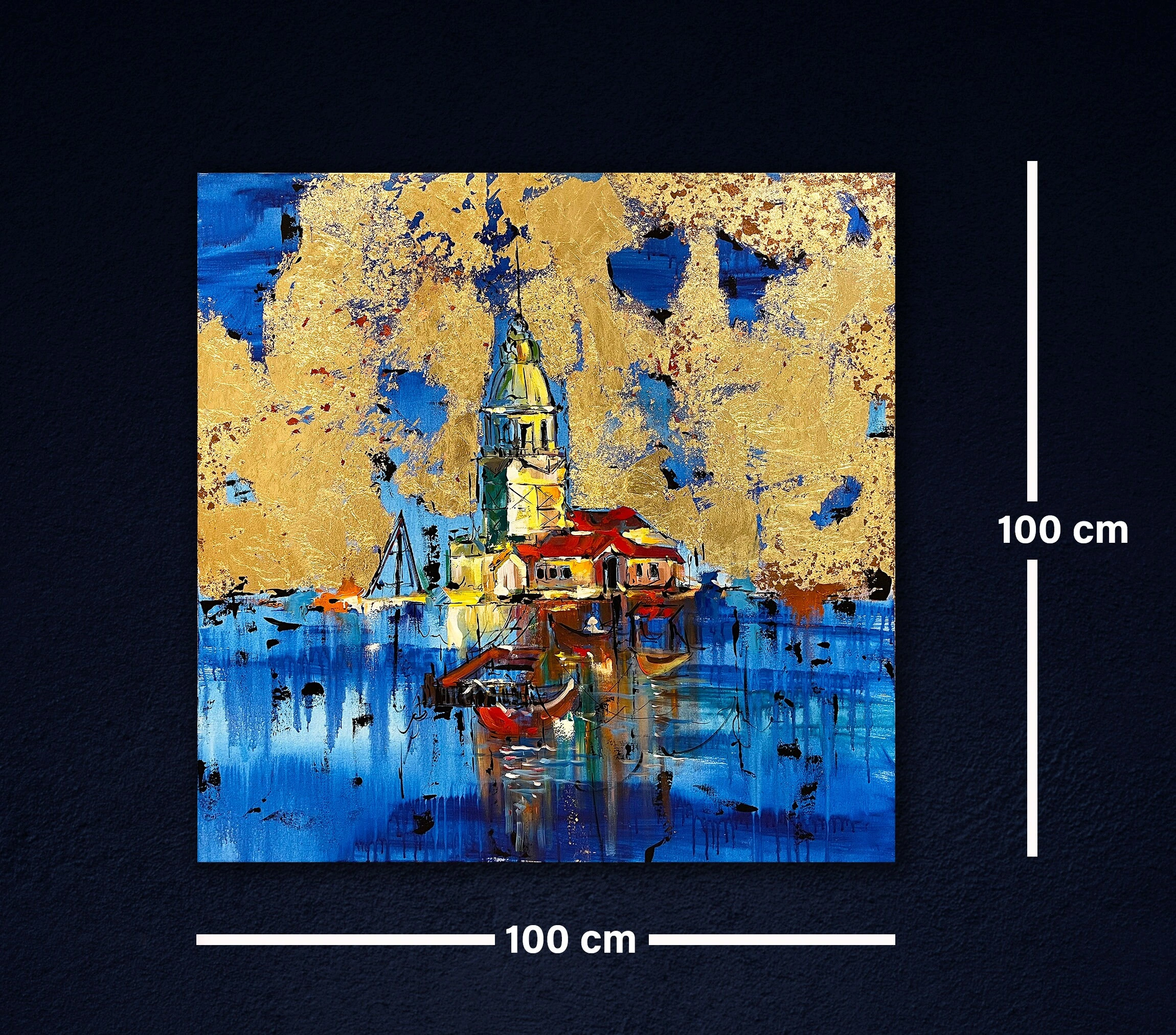 Farklı tasarımı ve göz alan altın varak detaylarıyla tuval üzerine yağlı boya Kız Kulesi İstanbul tablosu, dünyanın en güzel şehirlerinden biri olarak uzun ve zengin bir tarihe sahip İstanbul'un ikonik sembollerinden birinin şık bir tasvirini yapıyor. İstanbul Boğazı'nın kıyısında yer alan Kız Kulesi, Bizans döneminden beri şehrin simgesi olmuştur. İstanbul Kız Kulesi manzaralı kanvas tablo, yapının ve şehrin dinamizmini yakalayan canlı renklerle bu görkemli anıta bir bakış sunuyor. İstanbul Boğazı manzaralı kanvas tablo, bulunduğu her ortamı aydınlatacaktır. Cesur maviler ve zıtlık yaratan altın tonlar, bu şık parçayı dekorunuzun geri kalanından farklı kılacaktır. Oturma odanıza, mutfağınıza ya da koridorunuza asmayı seçin, her odanın odak noktası haline gelecektir. Bu eşsiz dekorun evinizde değerli bir hazine olacağından emin olabilirsiniz. Kız Kulesi duvar süsleme sanatı ile güzel İstanbul şehrinden bir parçayı evinize getirebileceksiniz.