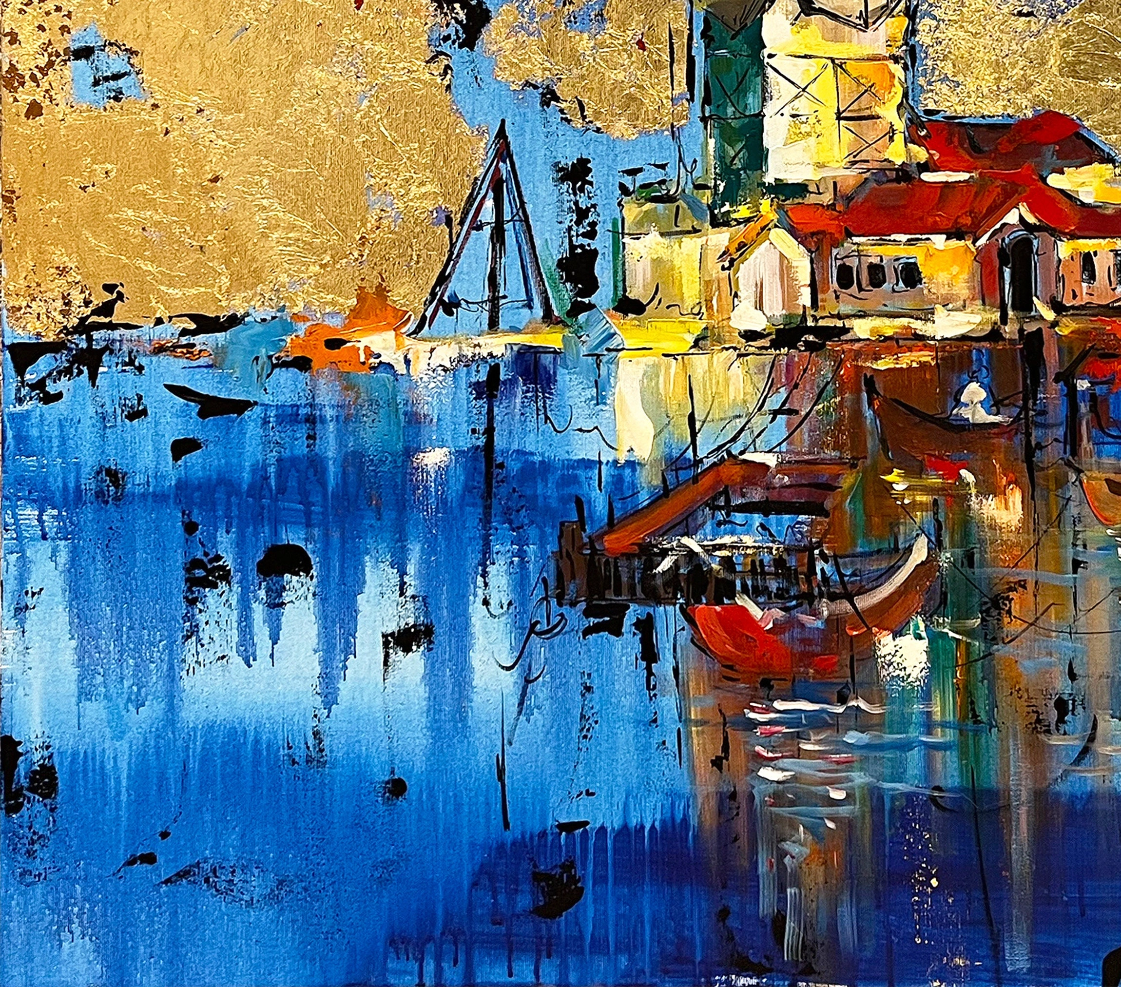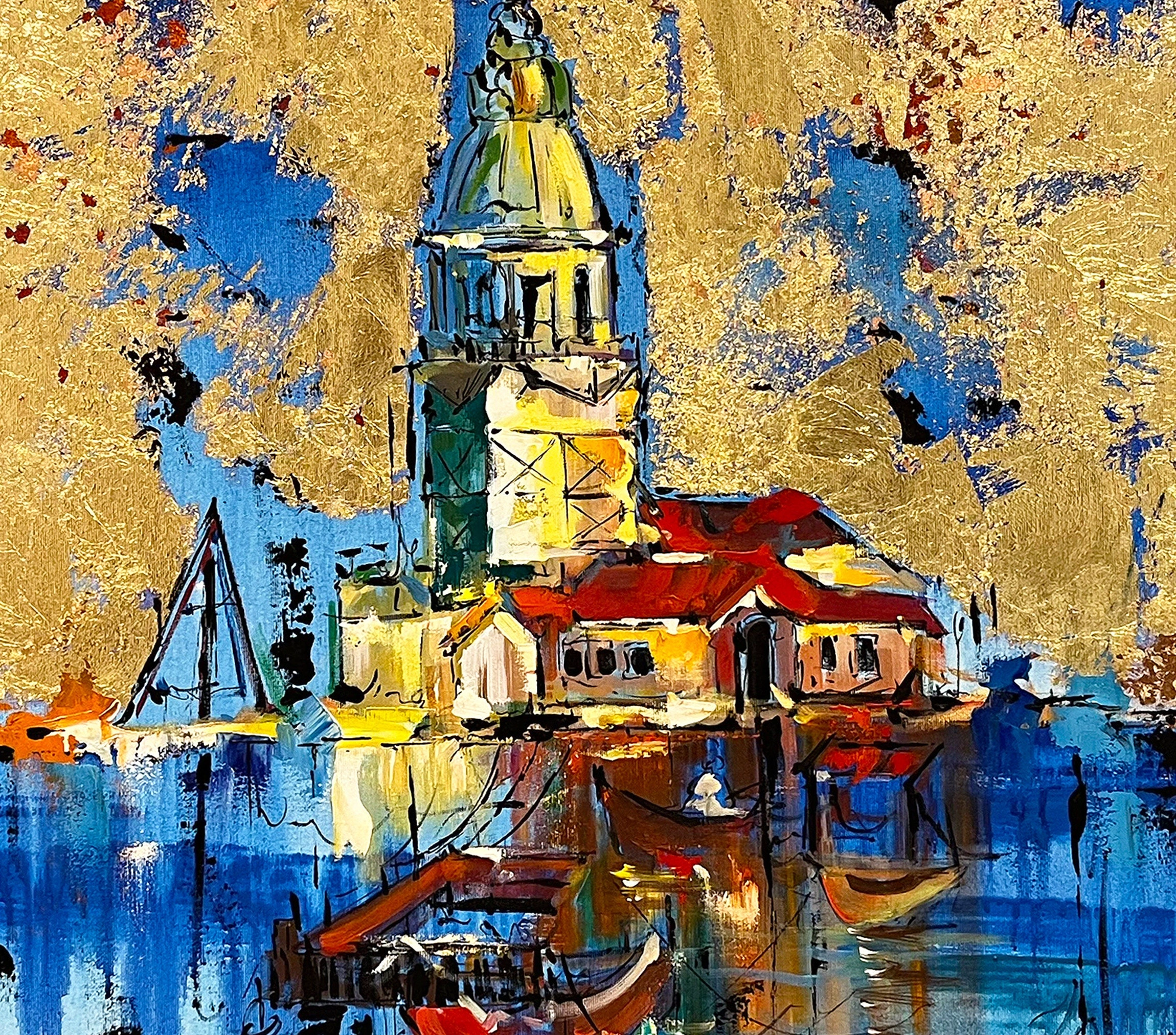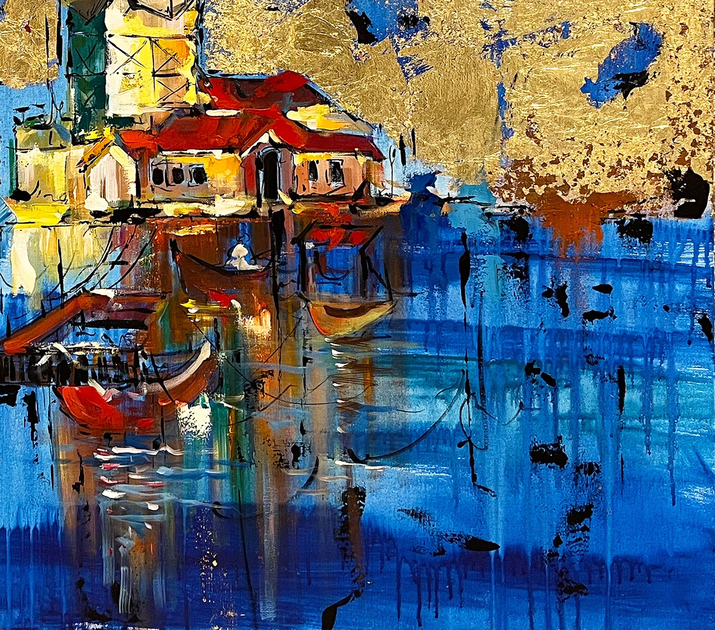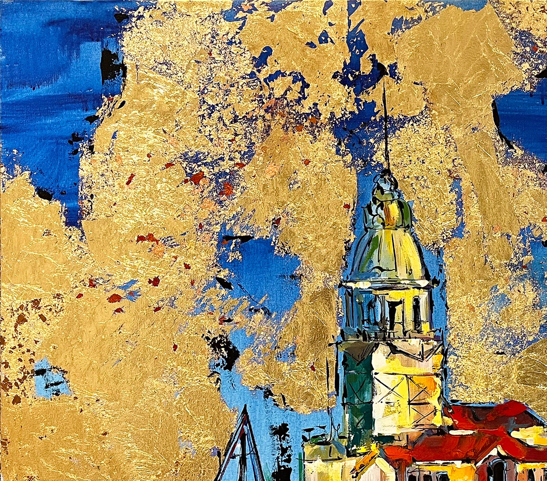 - Kaliteli tuval üzerine yağlı boya ve altın varak