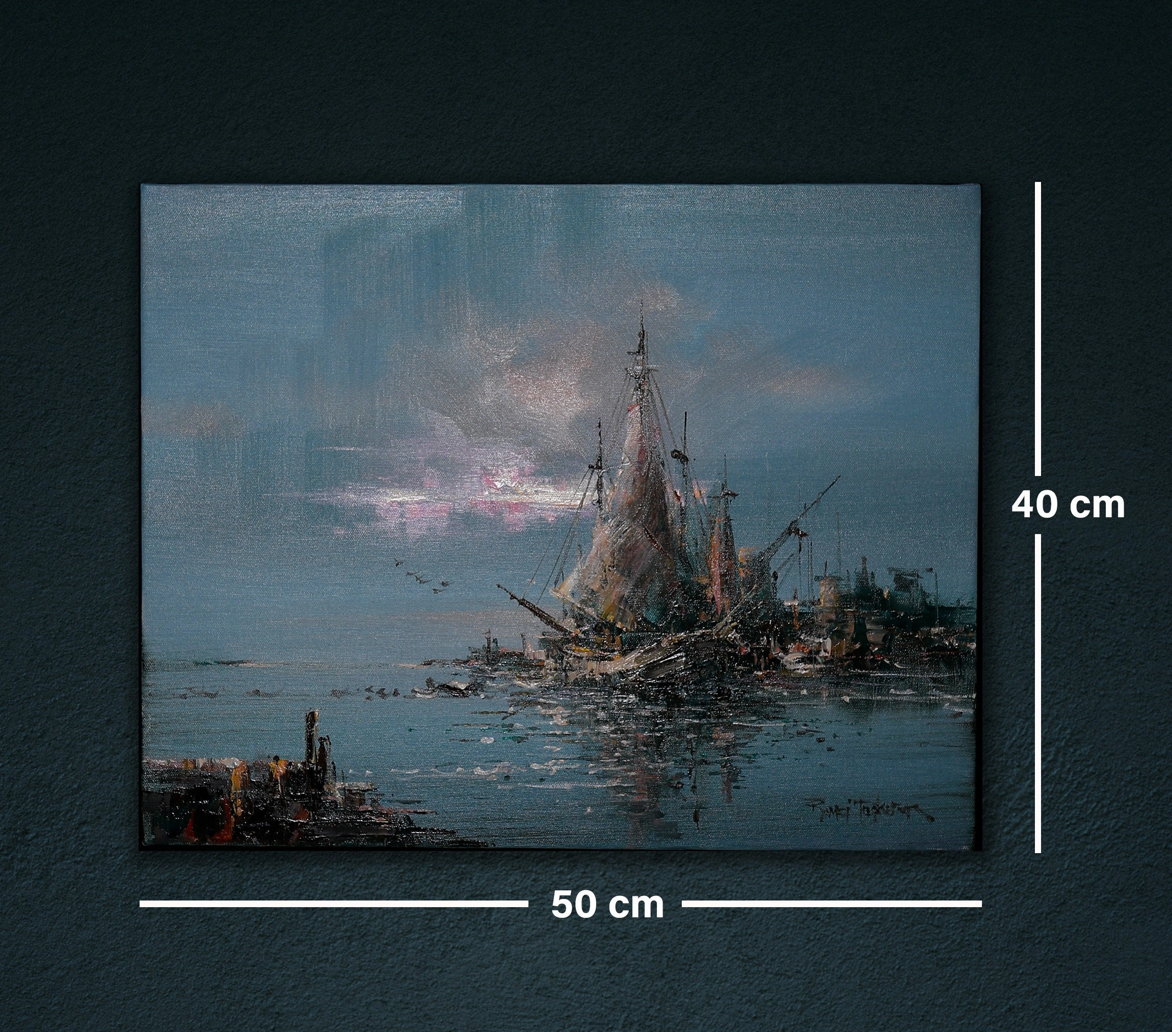 Günbatımında denizdeki teknelerin resmedildiği yağlıboya kanvas tablo, evinizi adeta bir vahaya dönüştürecek. Bu çarpıcı İstanbul tablosu, antik İstanbul kentinin güzelliğini ve duvarlarınıza taşıyor. İstanbul deniz temalı bu tablo, hareketli şehrin güzel bir kıyı manzarasına sahiptir. Etkileyici mavi tonlar, İstanbul'un büyüsünü yakalayan diğer unsurlarla tamamlanıyor. Bu muhteşem İstanbul manzarası tablo ile İstanbul'un güzelliğini yaşayın. İster anlamlı bir ev hediyesi olarak, isterseniz kendi koleksiyonunuz için çarpıcı bir parça arıyor olun, bu İstanbul resminin sizi etkileyeceğinden emin olabilirsiniz.